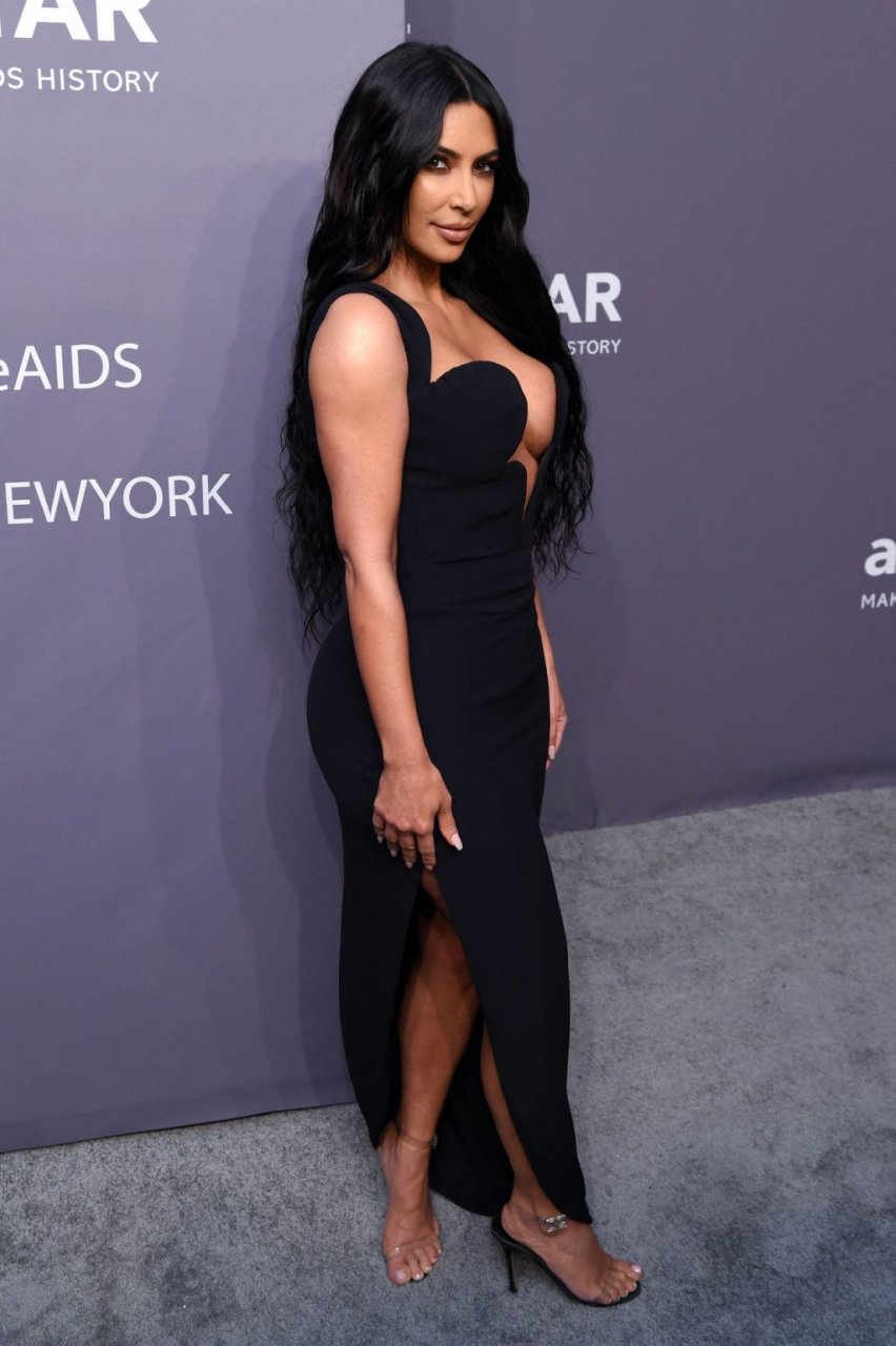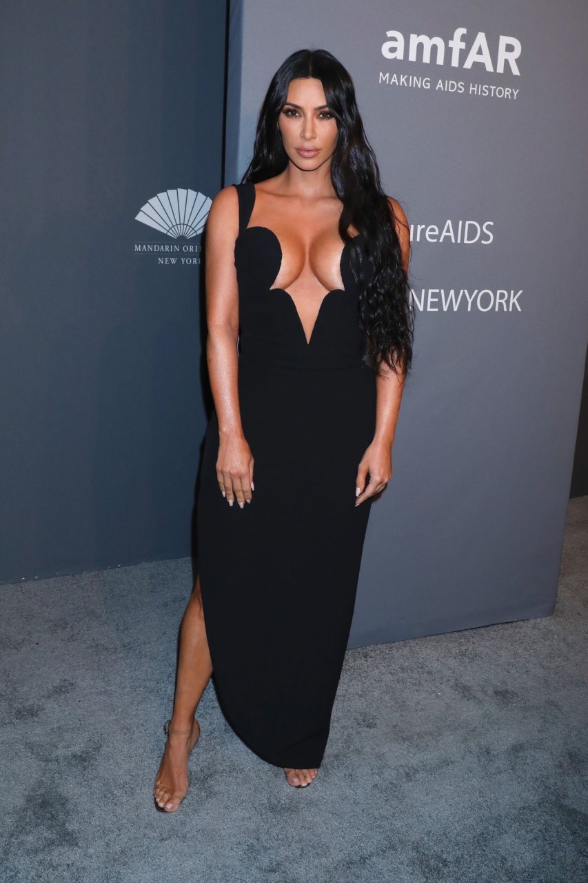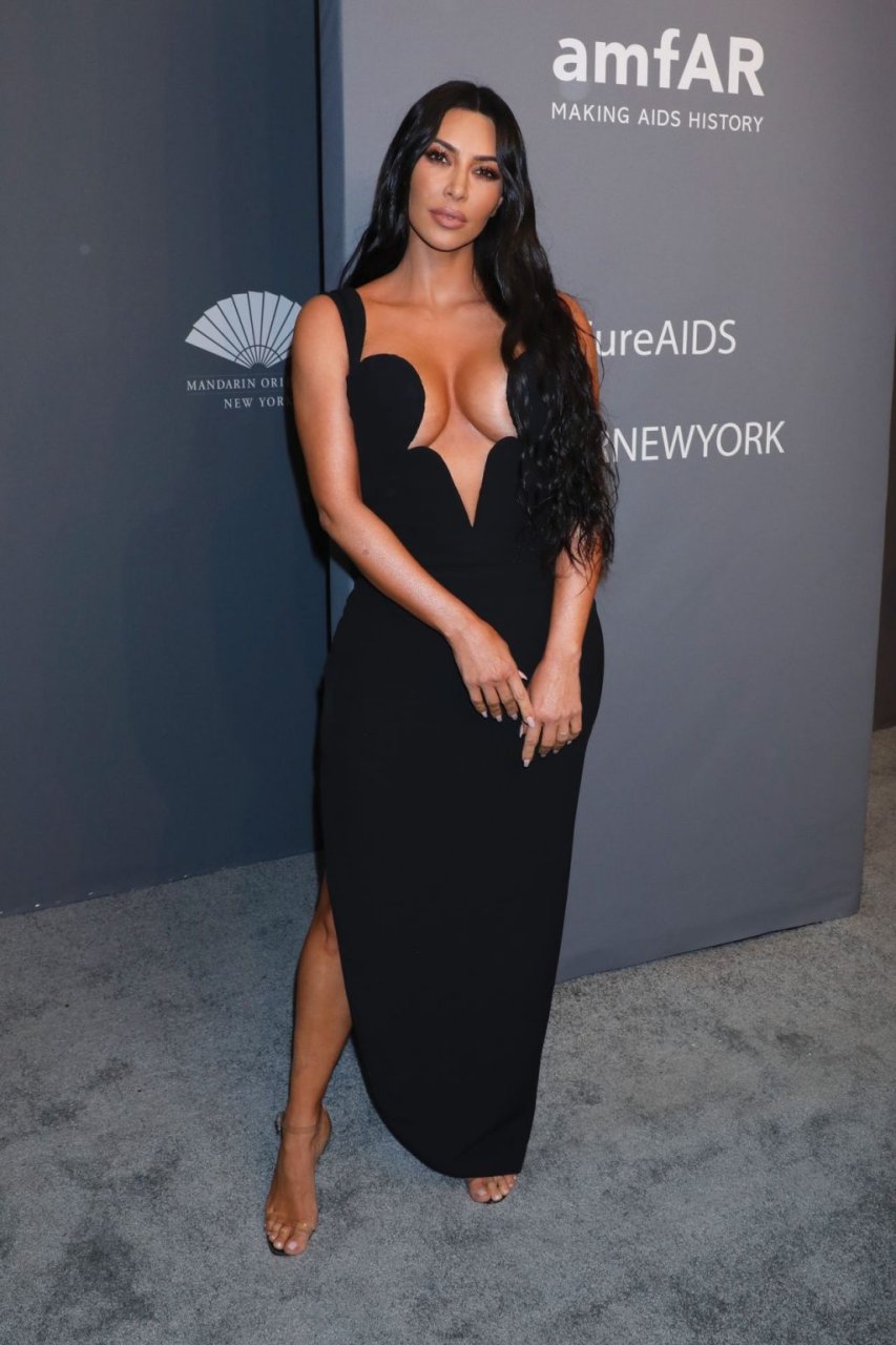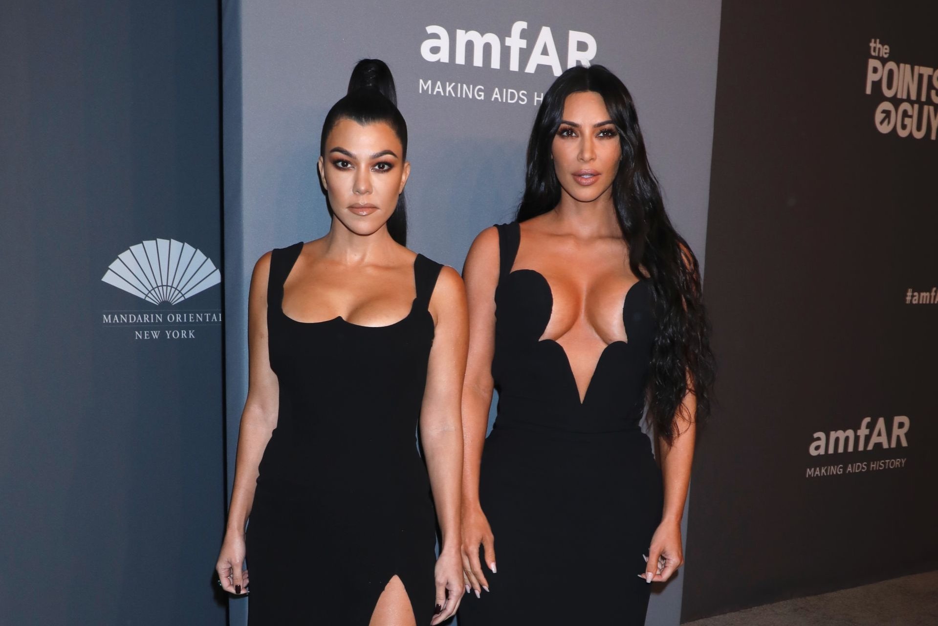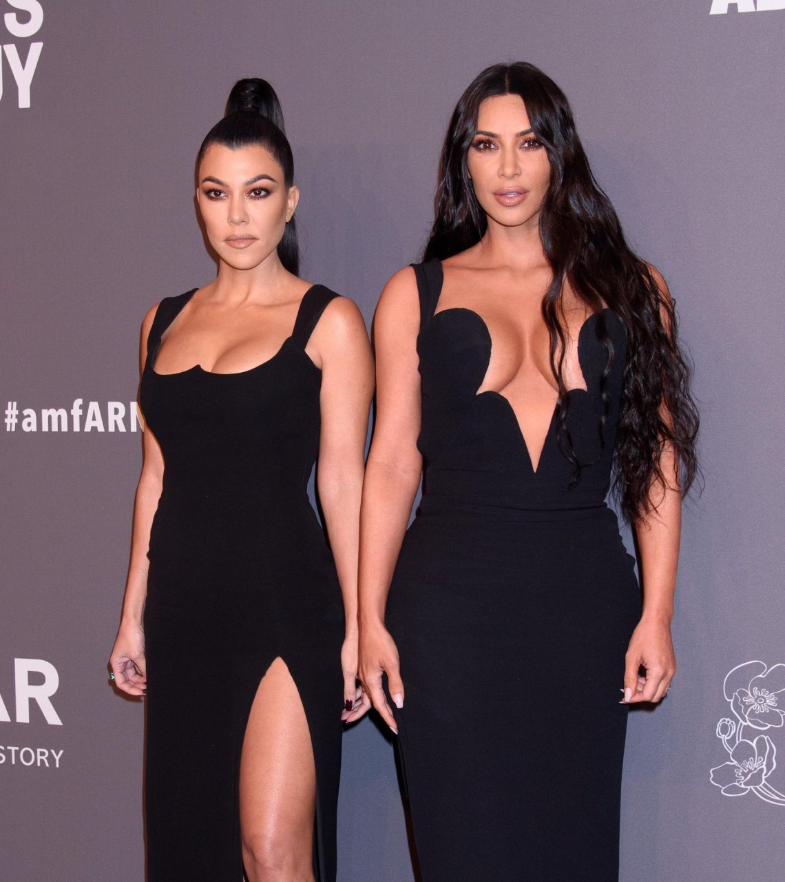 Kim Kardashian West e sua irmã mais velha Kourtney Kardashian compareceram juntas ao amFAR Gala Fall/Winter 2019 em Nova York, 02/06/2019. As irmãs usaram vestidos longos pretos, mas o estilo de Kim foi muito mais ousado.