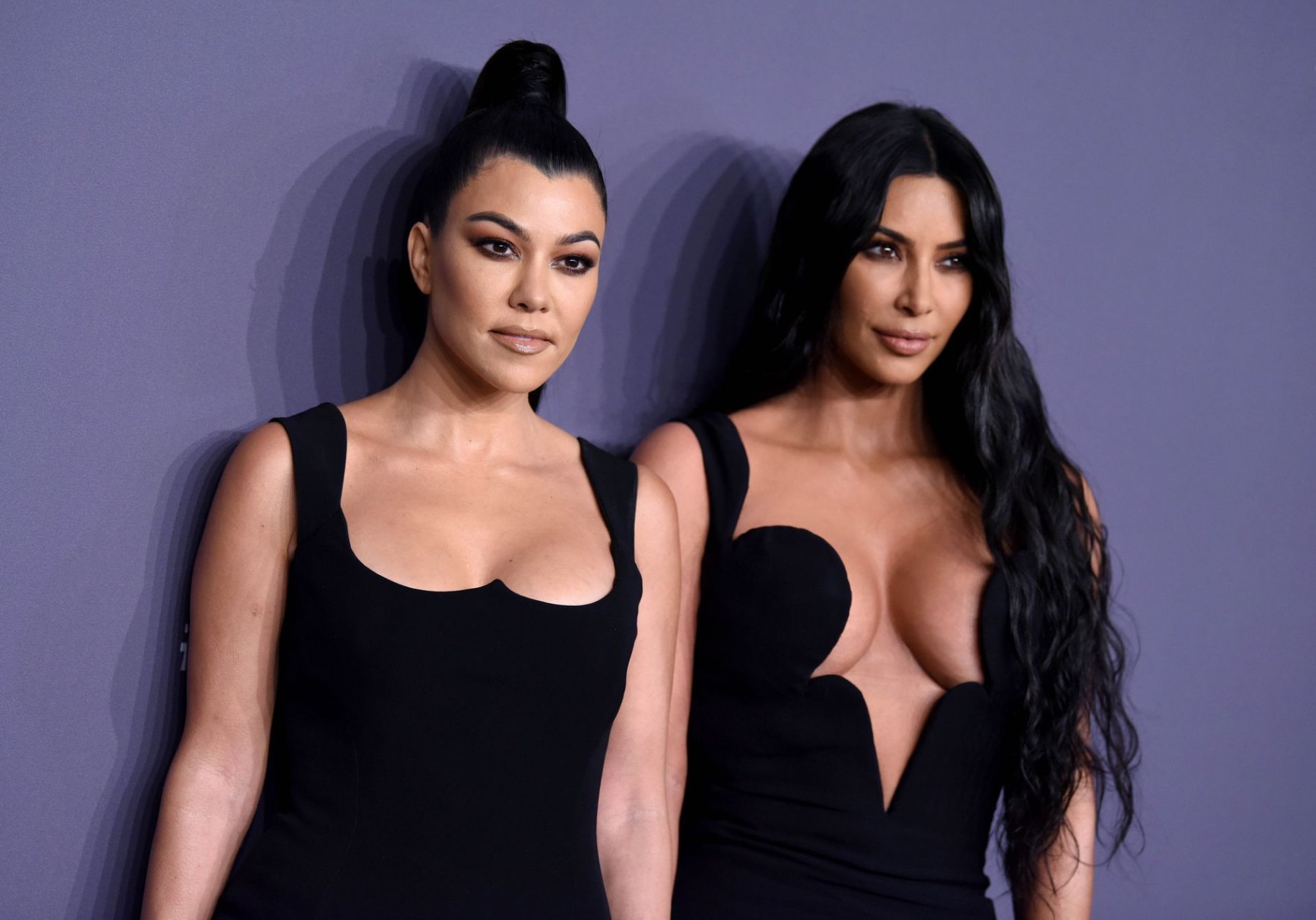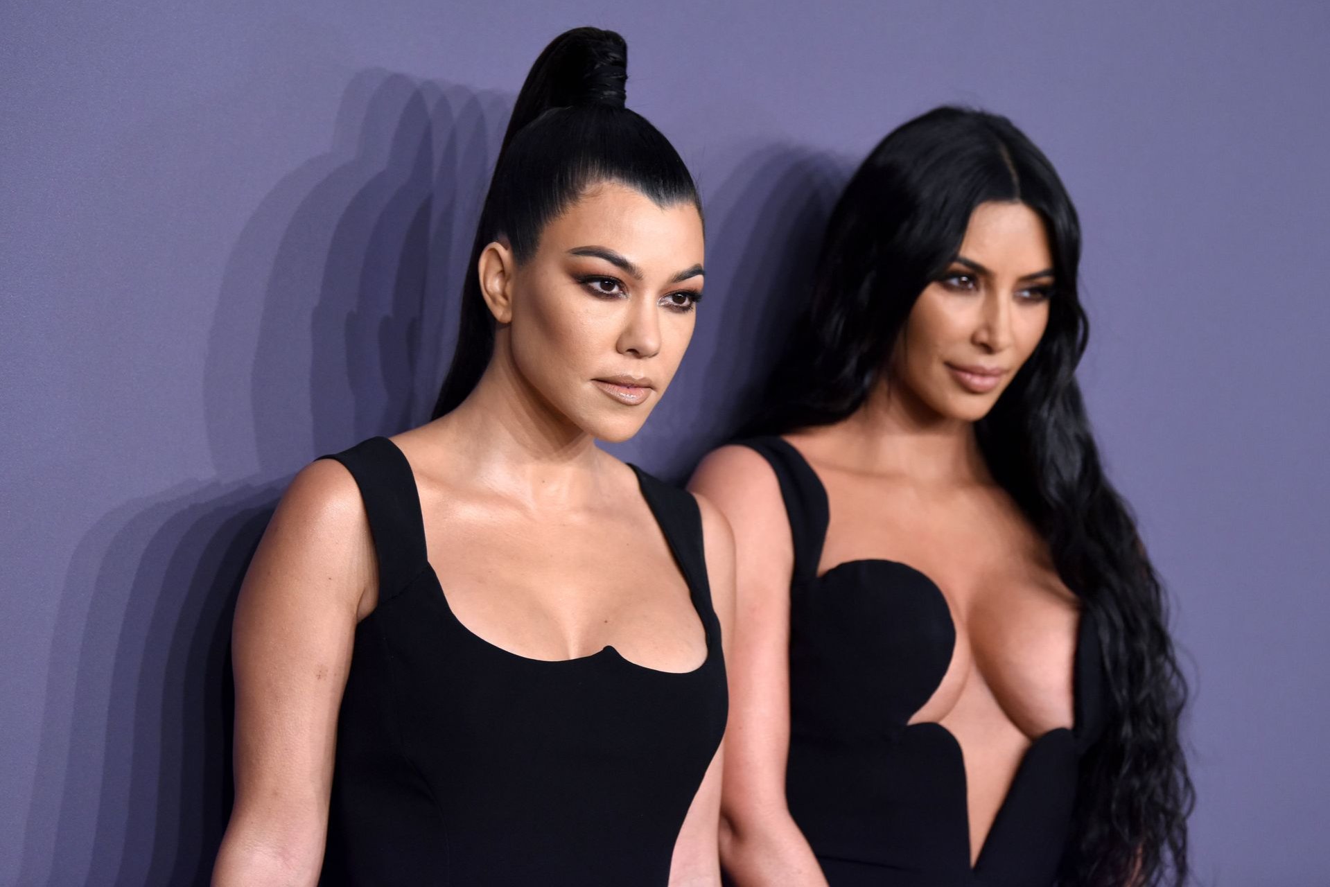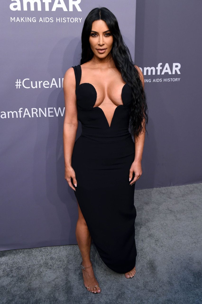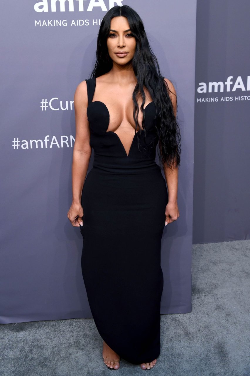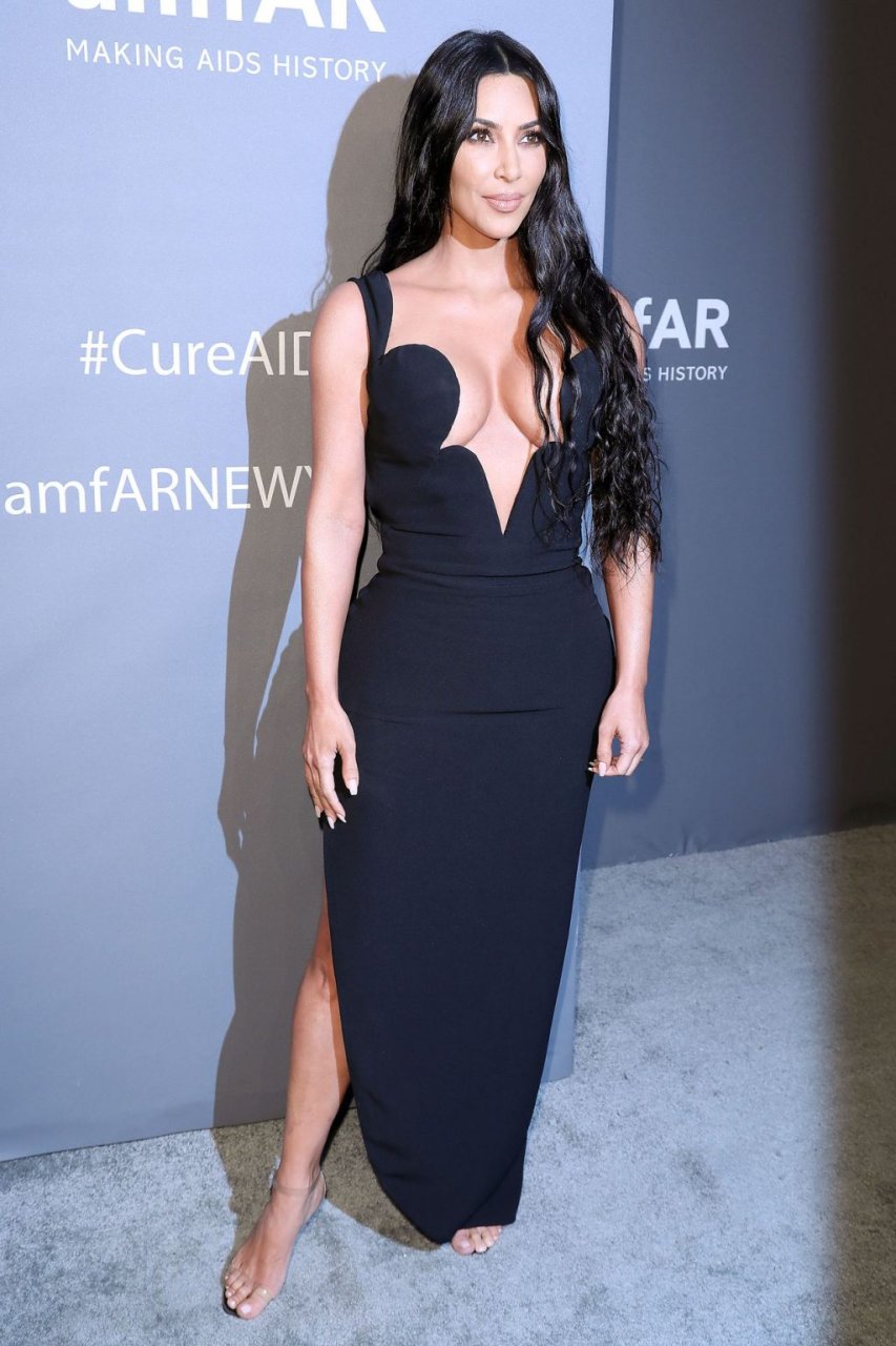 Kim Kardashian West e sua irmã mais velha Kourtney Kardashian compareceram juntas ao amFAR Gala Fall/Winter 2019 em Nova York, 02/06/2019. As irmãs usaram vestidos longos pretos, mas o estilo de Kim foi muito mais ousado.
