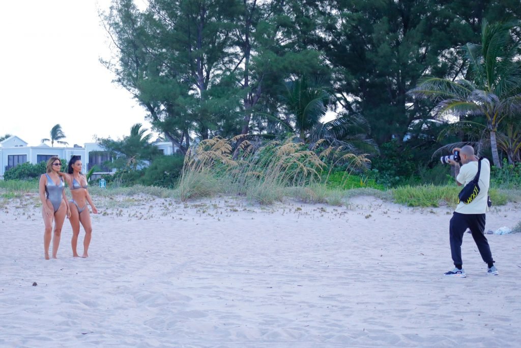 Gostei muito mais da mulher com o maiô completo do que da roupa dessa aspirante a BALEIA Kim K. em seu biquíni minúsculo. E sua figura também é mais do meu gosto.