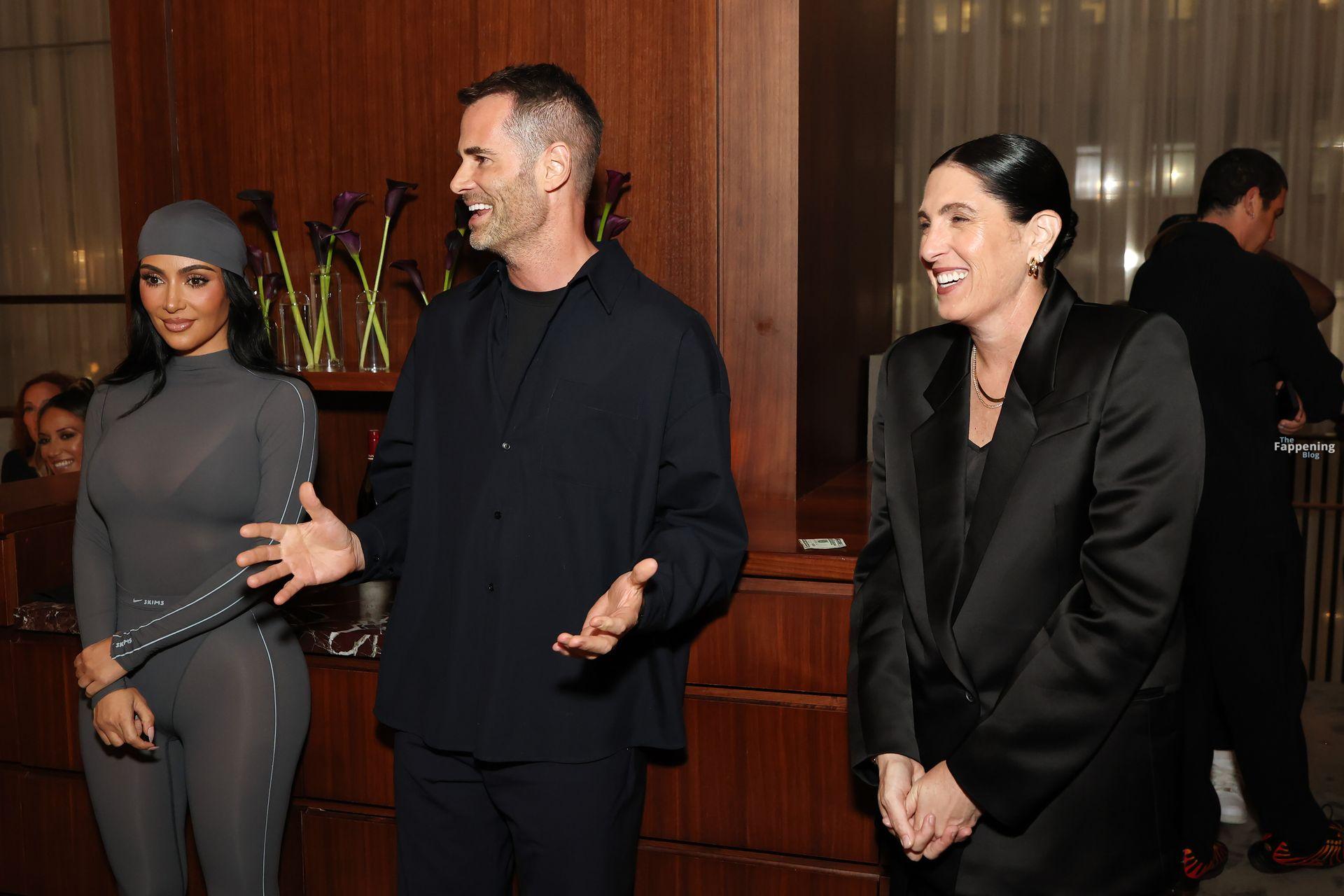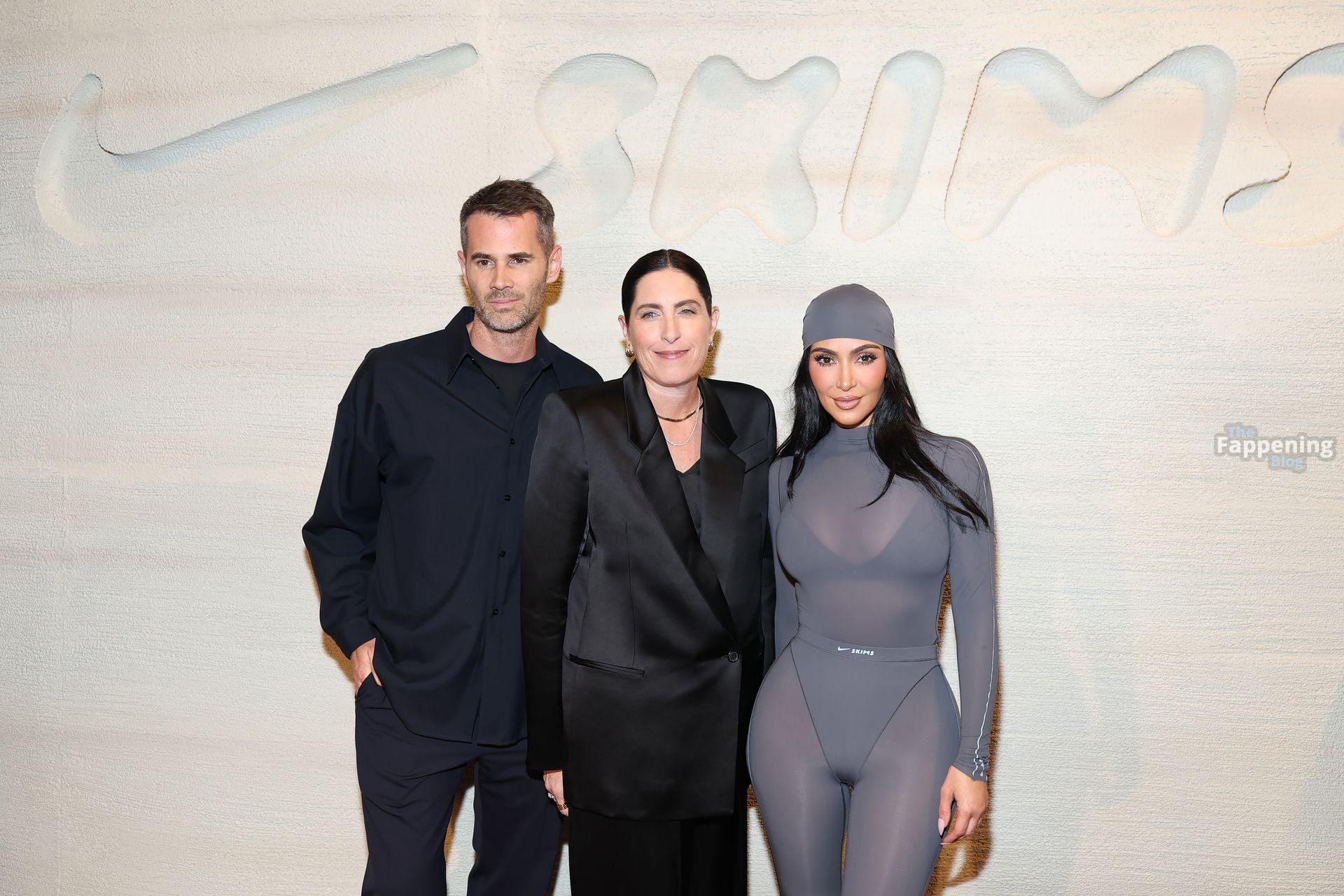 Kim Kardashian exibiu suas curvas com um catsuit cinza transparente no lançamento do Nike x SKIMS Bodies At Work em NYC. Ela participou do evento de lançamento na Nike House of Innovation em Nova York.