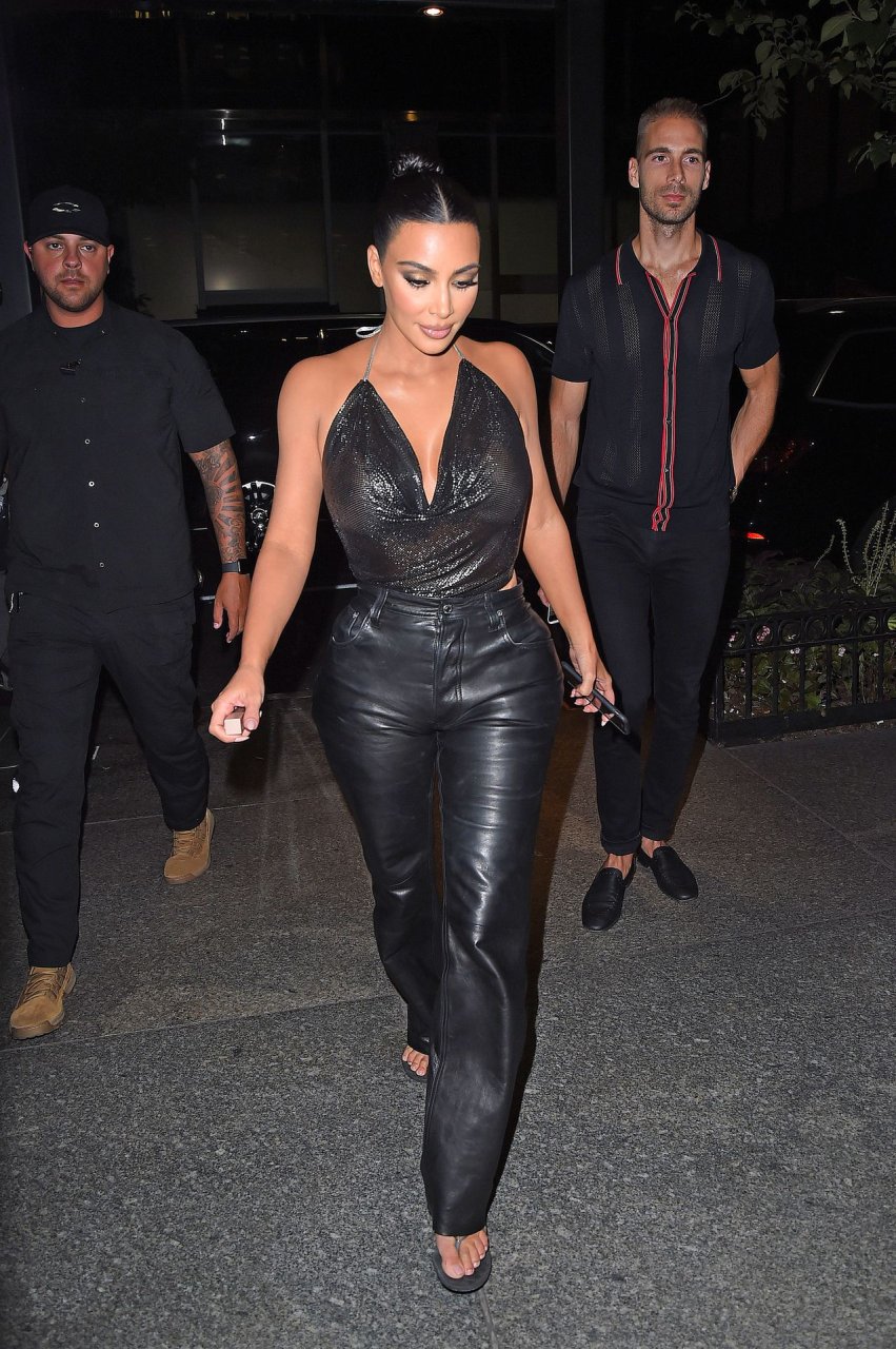 Kim Kardashian encontra-se com o bom amigo Simon Huck para jantar no Milos em Manhattan, Nova York, 11/09/2019. Ela também usa uma blusa transparente enquanto faz compras em SoHo.