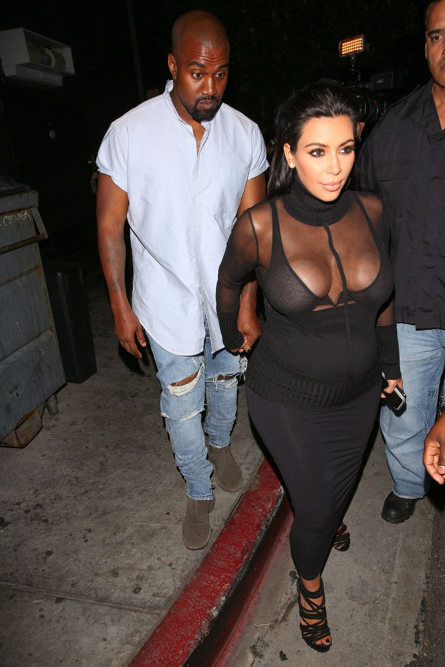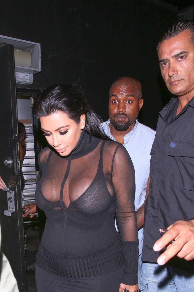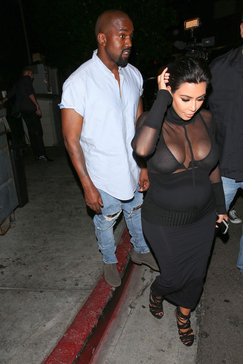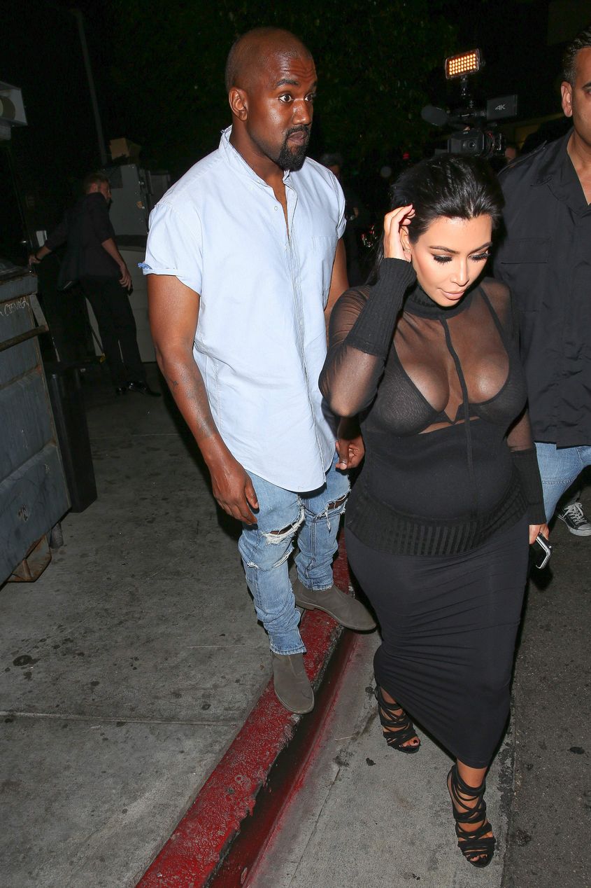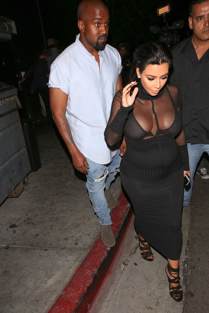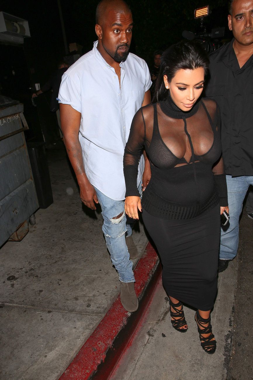 Novas fotos de paparazzi da grávida Kim Kardashian deixando a festa de 18 anos de Kylie Jenner em West Hollywood, CA (9 de agosto de 2015). Kim Kardashian é uma personalidade americana de televisão e redes sociais, socialite e modelo. Idade: 34