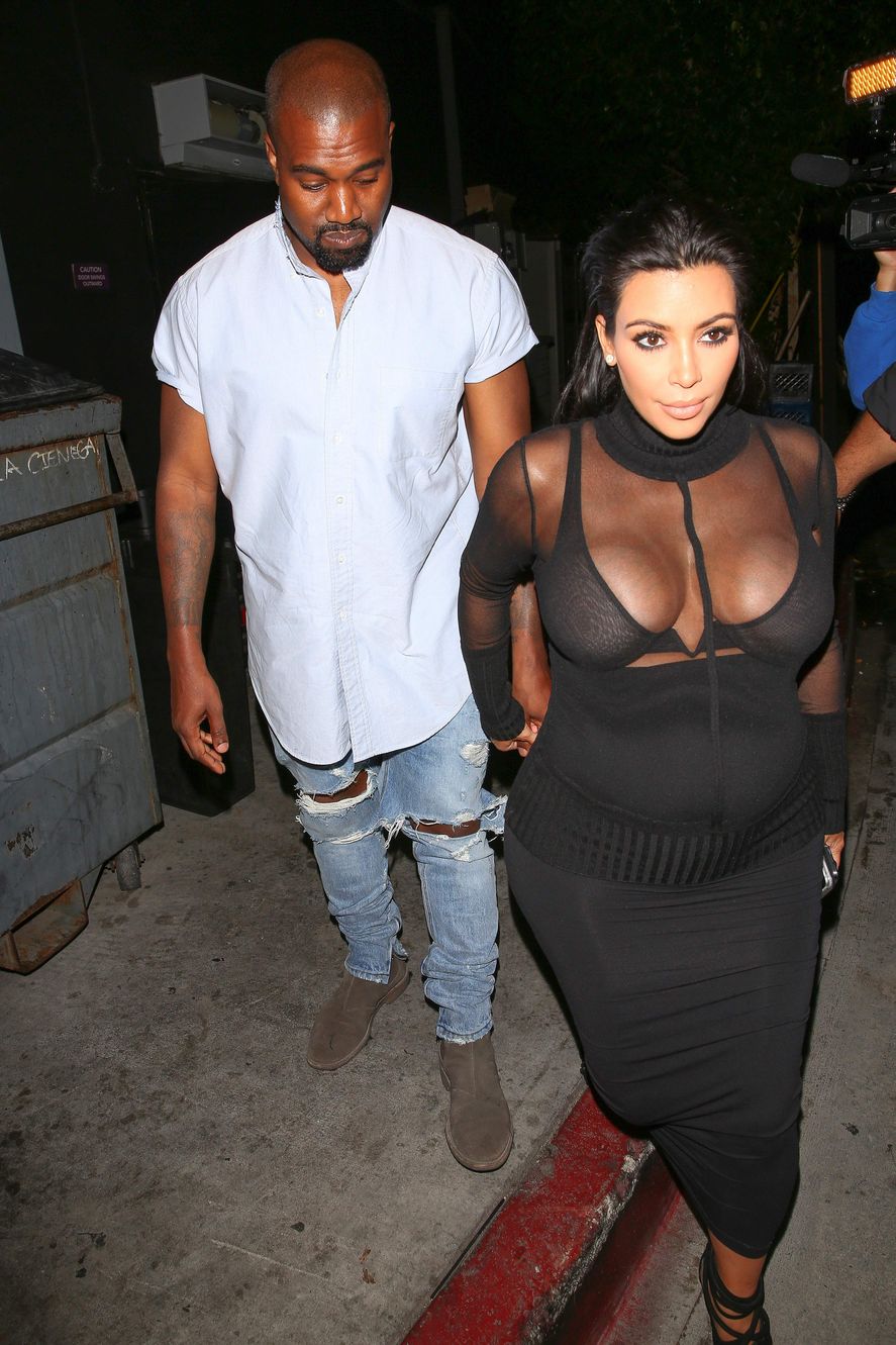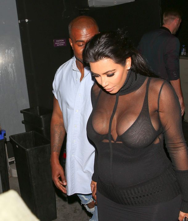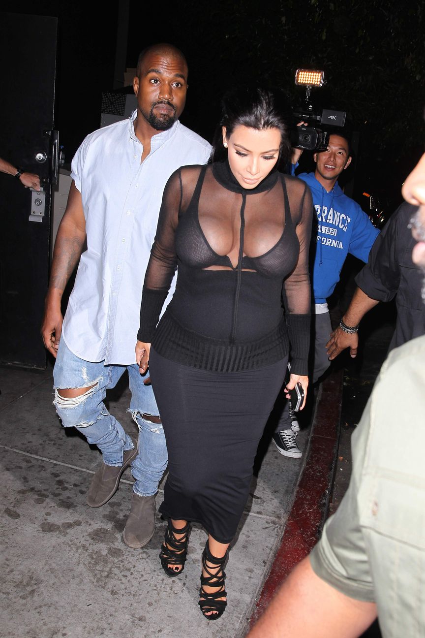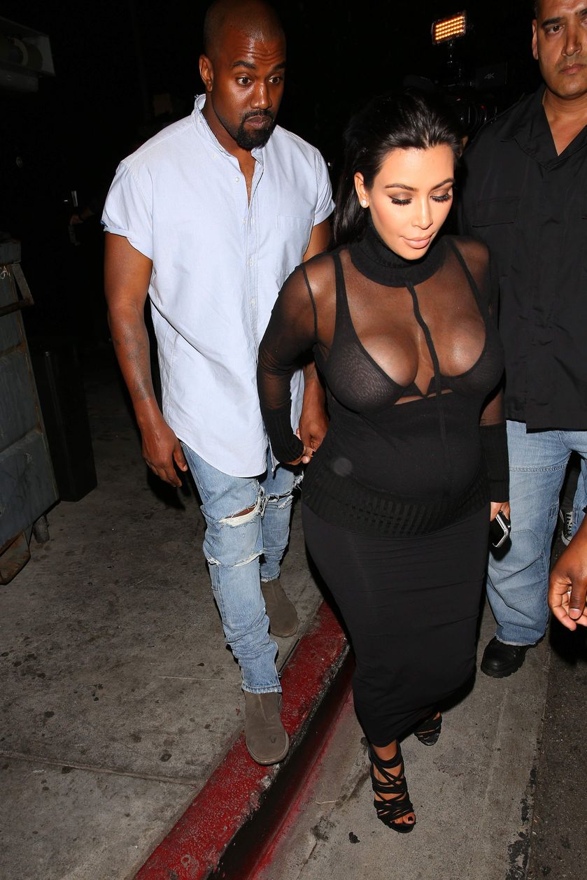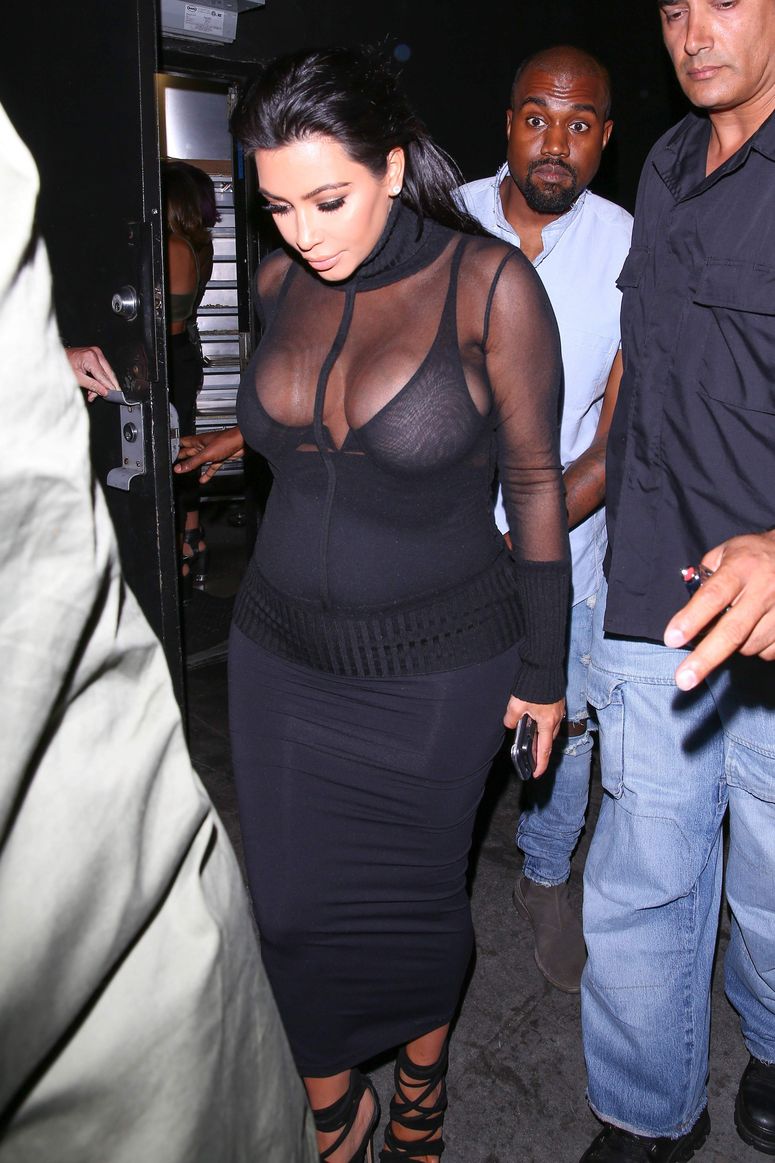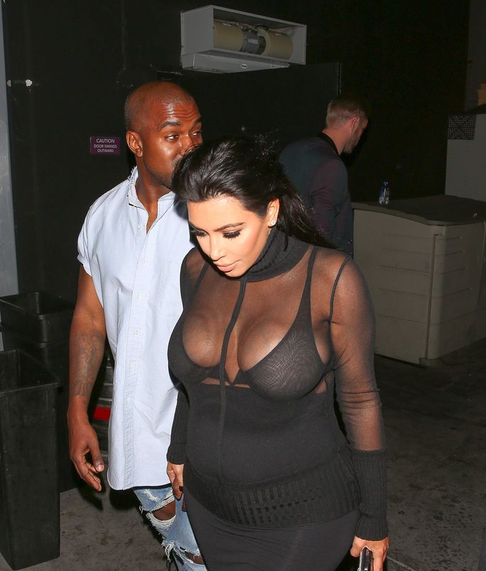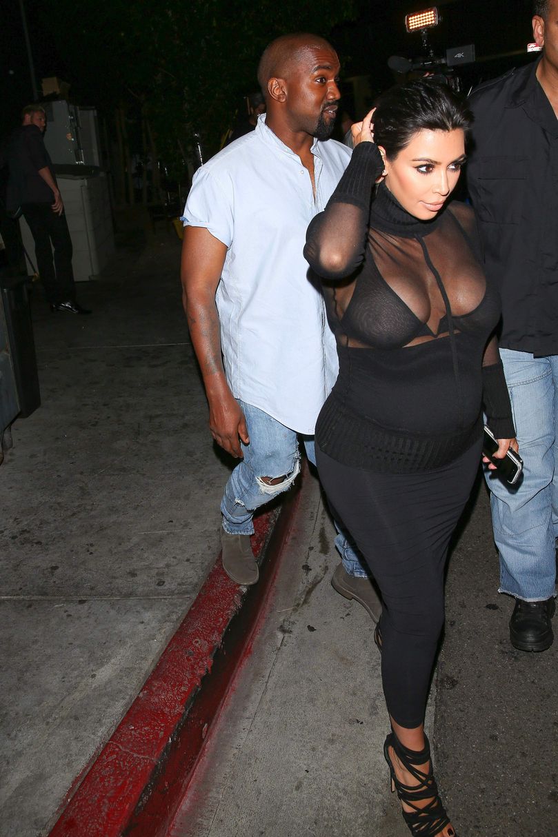 Novas fotos de paparazzi da grávida Kim Kardashian deixando a festa de 18 anos de Kylie Jenner em West Hollywood, CA (9 de agosto de 2015). Kim Kardashian é uma personalidade americana de televisão e redes sociais, socialite e modelo. Idade: 34