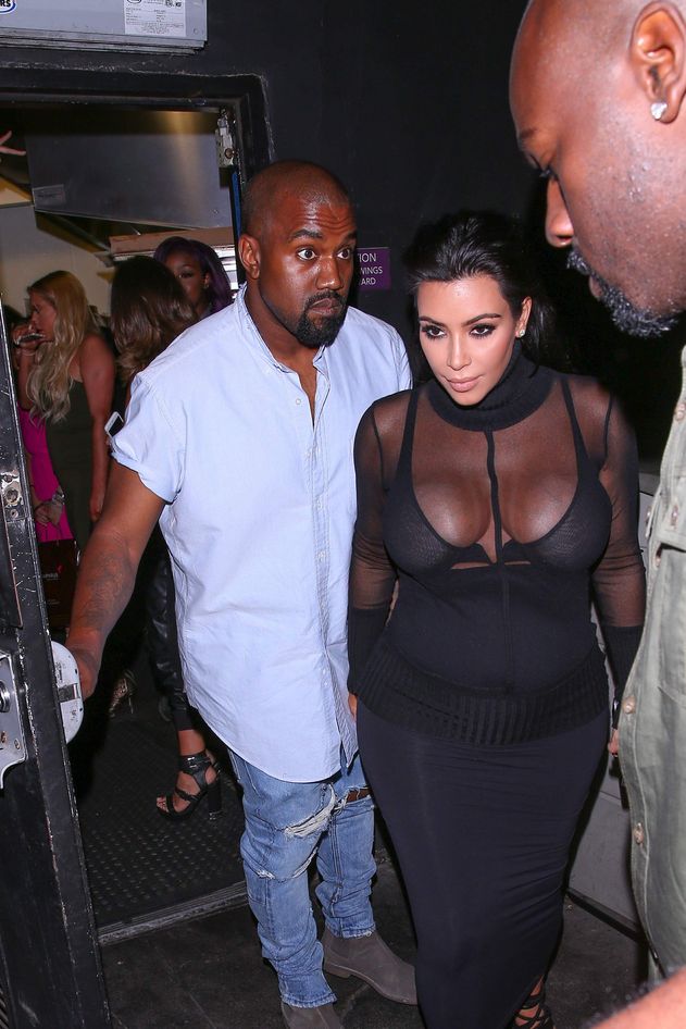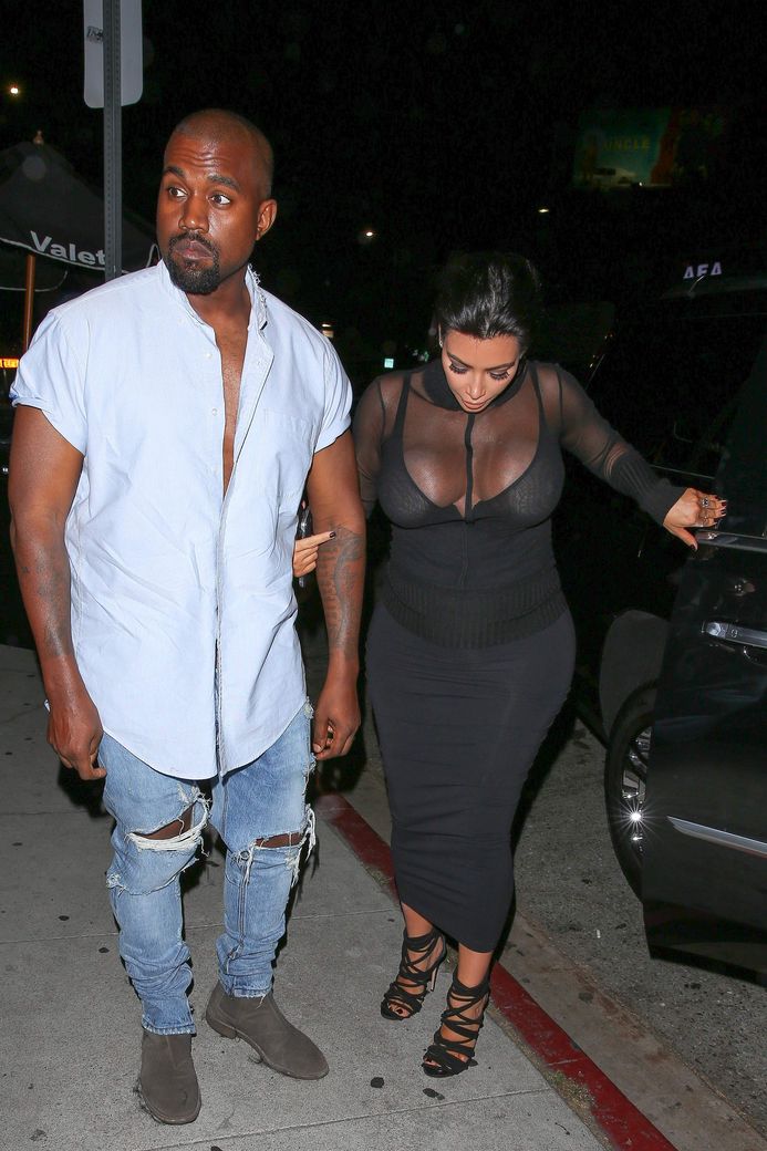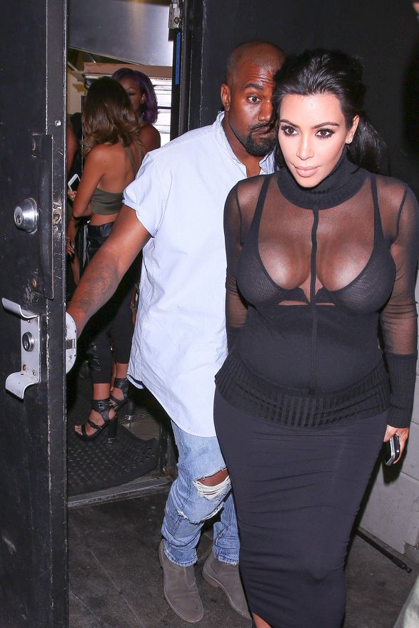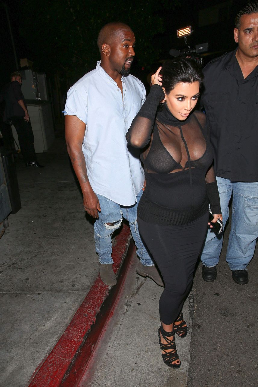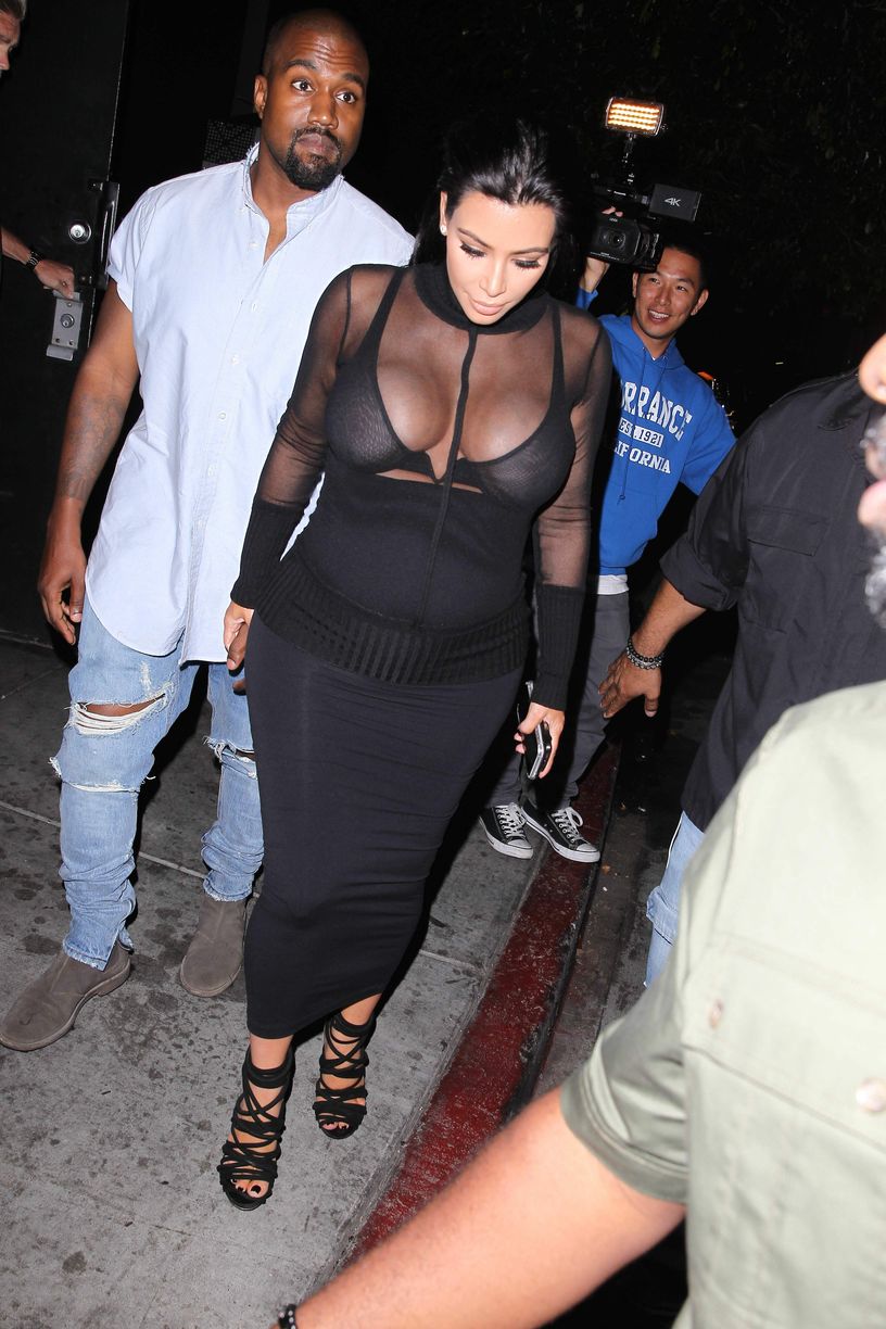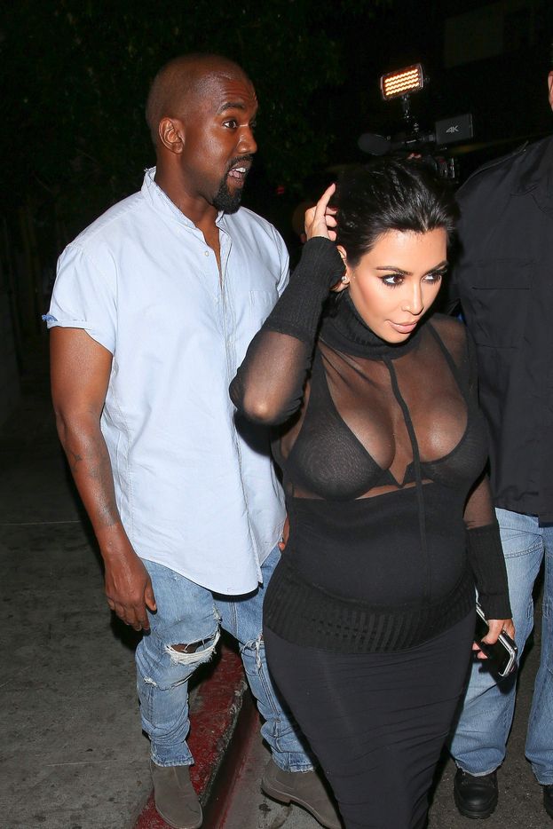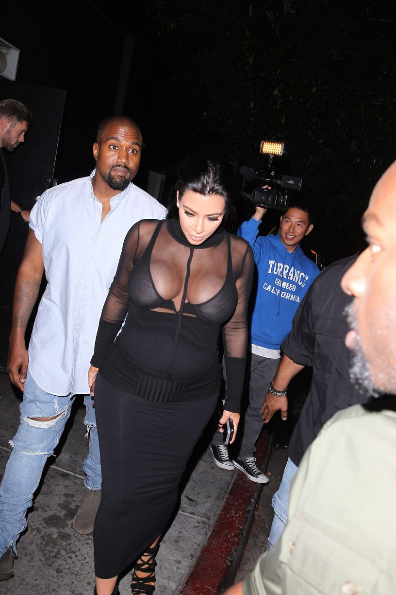 Novas fotos de paparazzi da grávida Kim Kardashian deixando a festa de 18 anos de Kylie Jenner em West Hollywood, CA (9 de agosto de 2015). Kim Kardashian é uma personalidade americana de televisão e redes sociais, socialite e modelo. Idade: 34