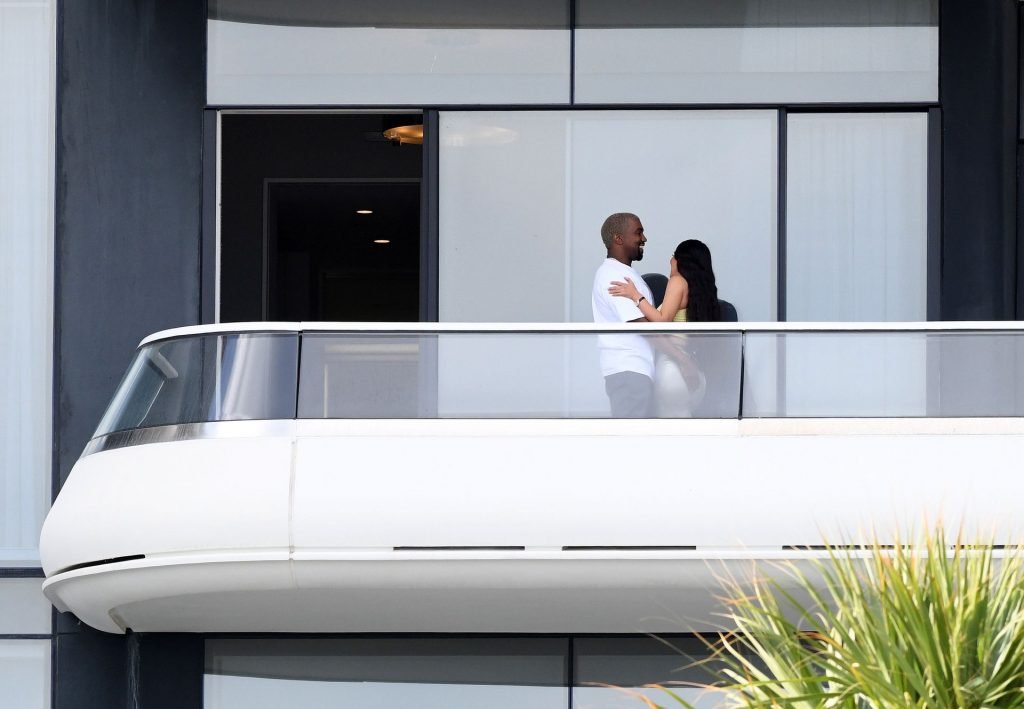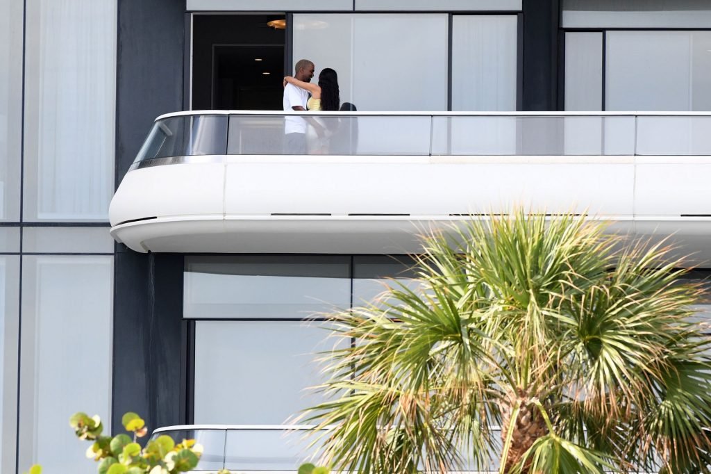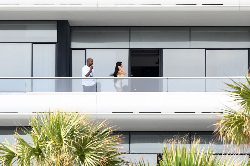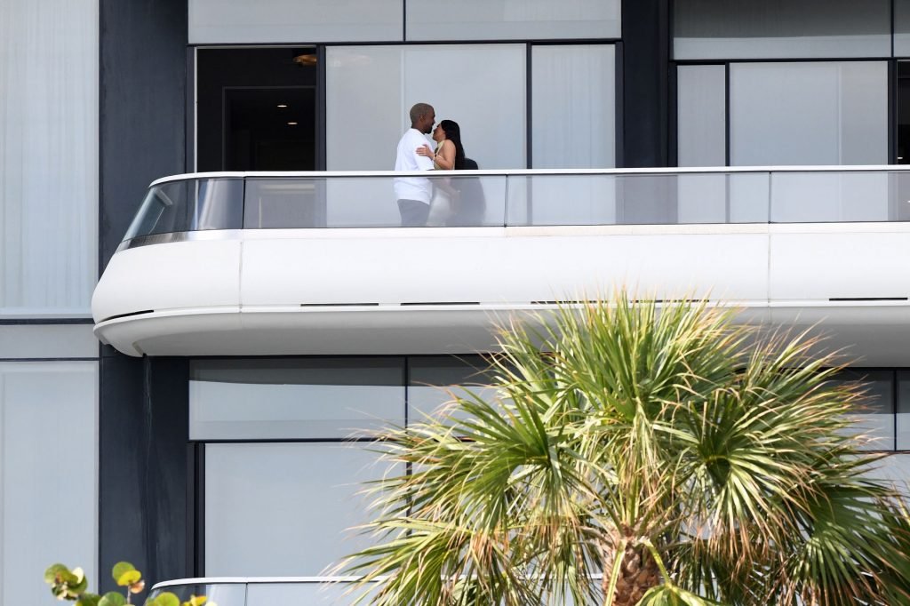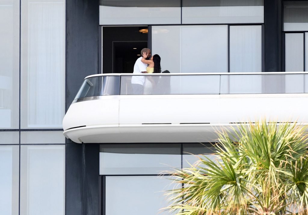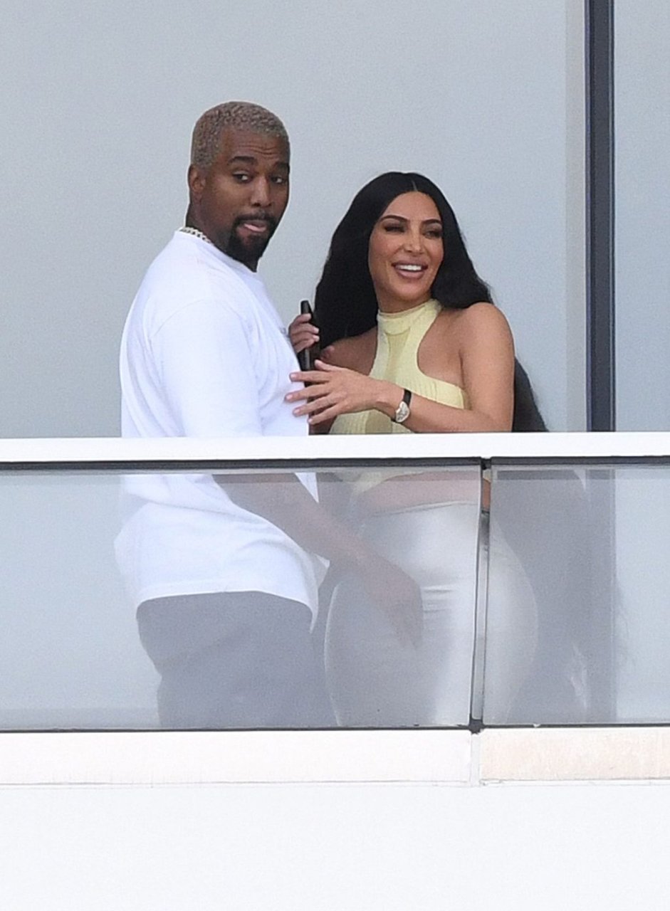 Kim Kardashian e Kanye West saem após a notícia de que esperam o bebê nº 4 por meio de barriga de aluguel ter sido divulgada. A dupla está em Miami aproveitando seu novo condomínio de $14 milhões que Kanye comprou como surpresa para Kim no Natal, 01/04/2019.