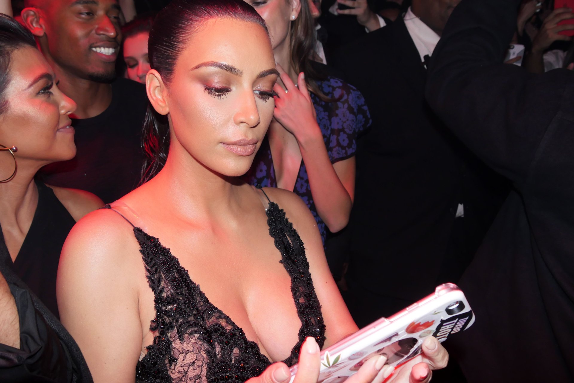 Kim Kardashian usa um vestido preto de renda transparente na festa da Harper’s Bazaar em Nova York, 09/09/2016. Kim Kardashian é uma personalidade americana de televisão e mídias sociais, socialite e modelo. Idade: 35 (21 de outubro de 1980).