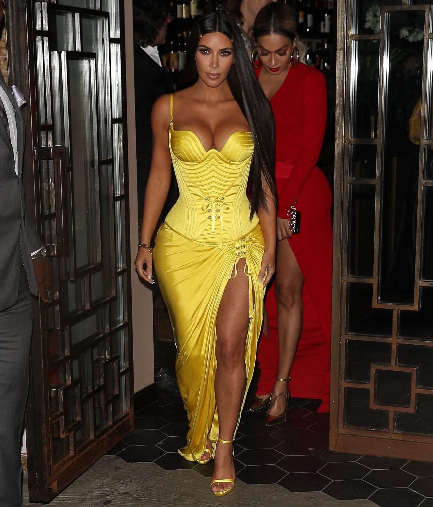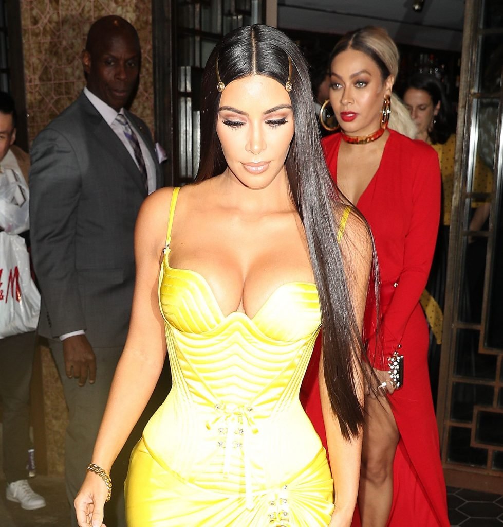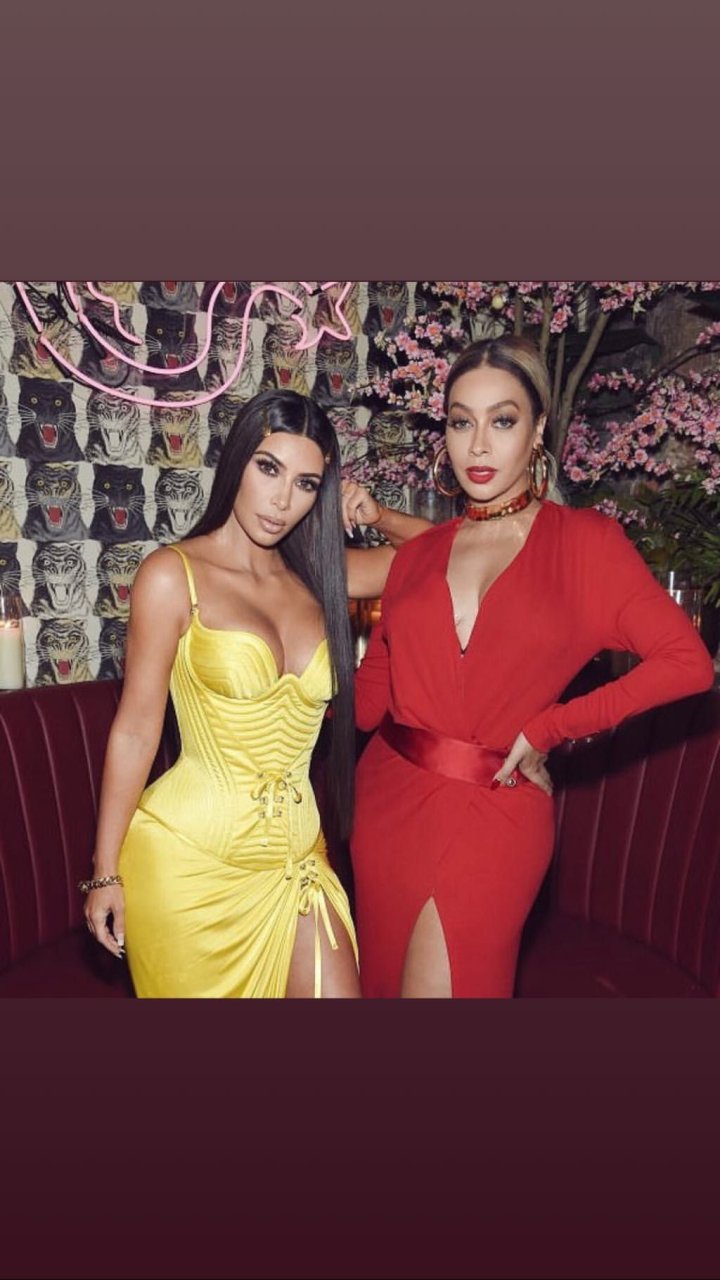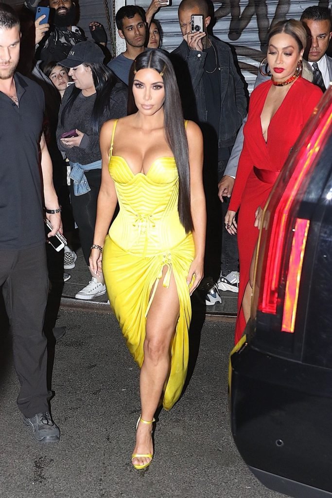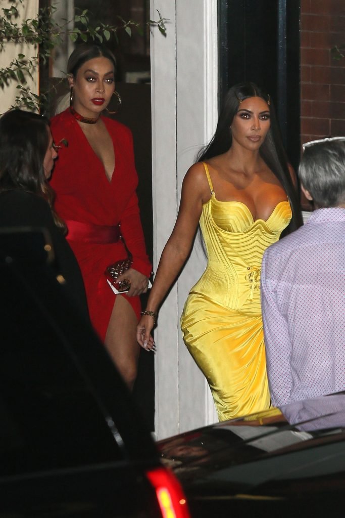 Kim Kardashian, 37, convida Kylie Jenner, La La Anthony e Jordyn Woods para jantar em Nova York, 08/05/2018. As garotas estavam todas estilosas em vestidos justos e coloridos para o encontro do jantar.