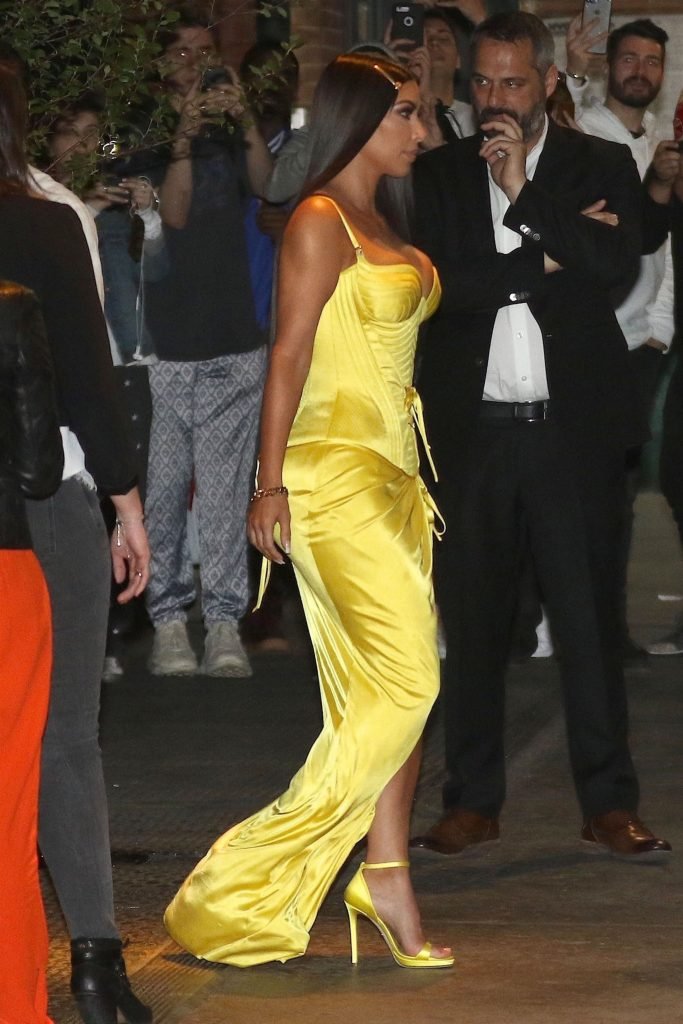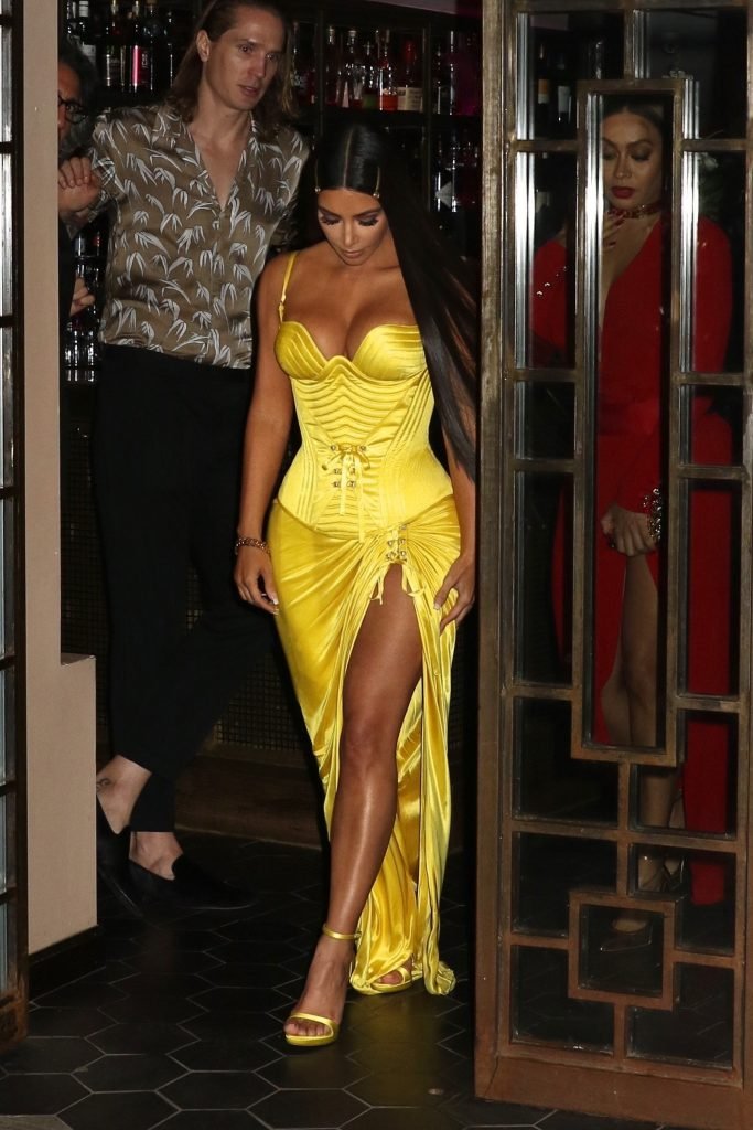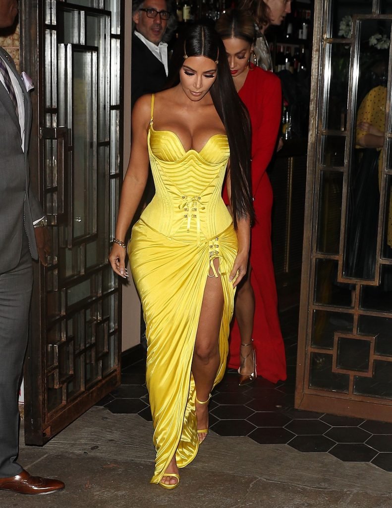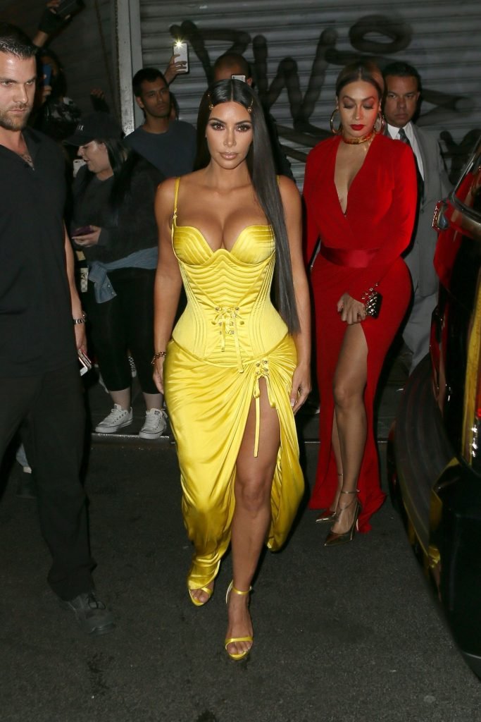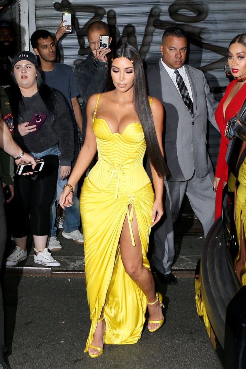 Kim Kardashian, 37, convida Kylie Jenner, La La Anthony e Jordyn Woods para jantar em Nova York, 08/05/2018. As garotas estavam todas estilosas em vestidos justos e coloridos para o encontro do jantar.