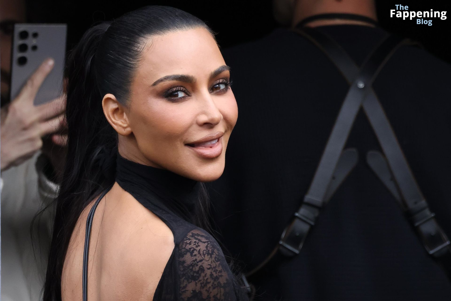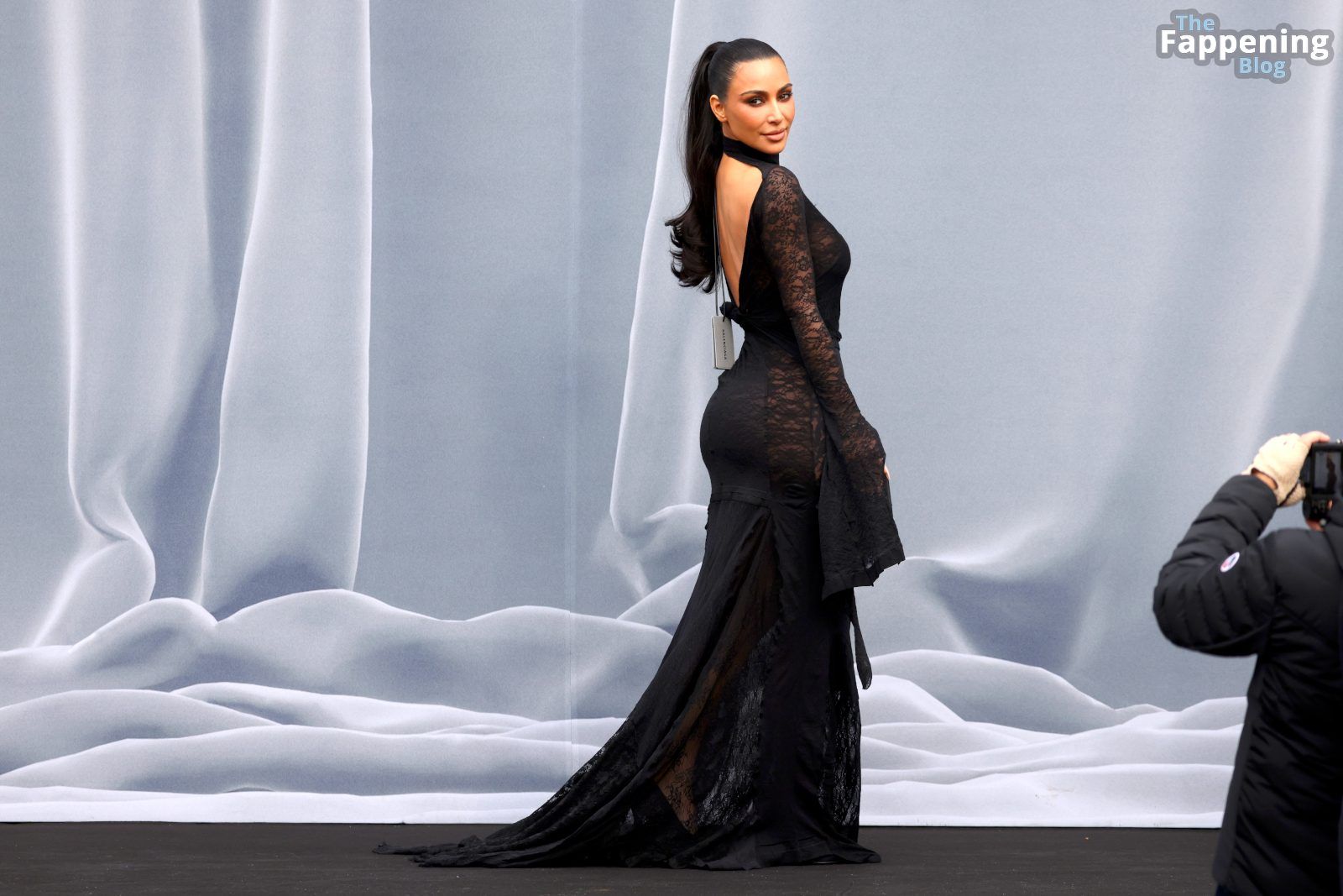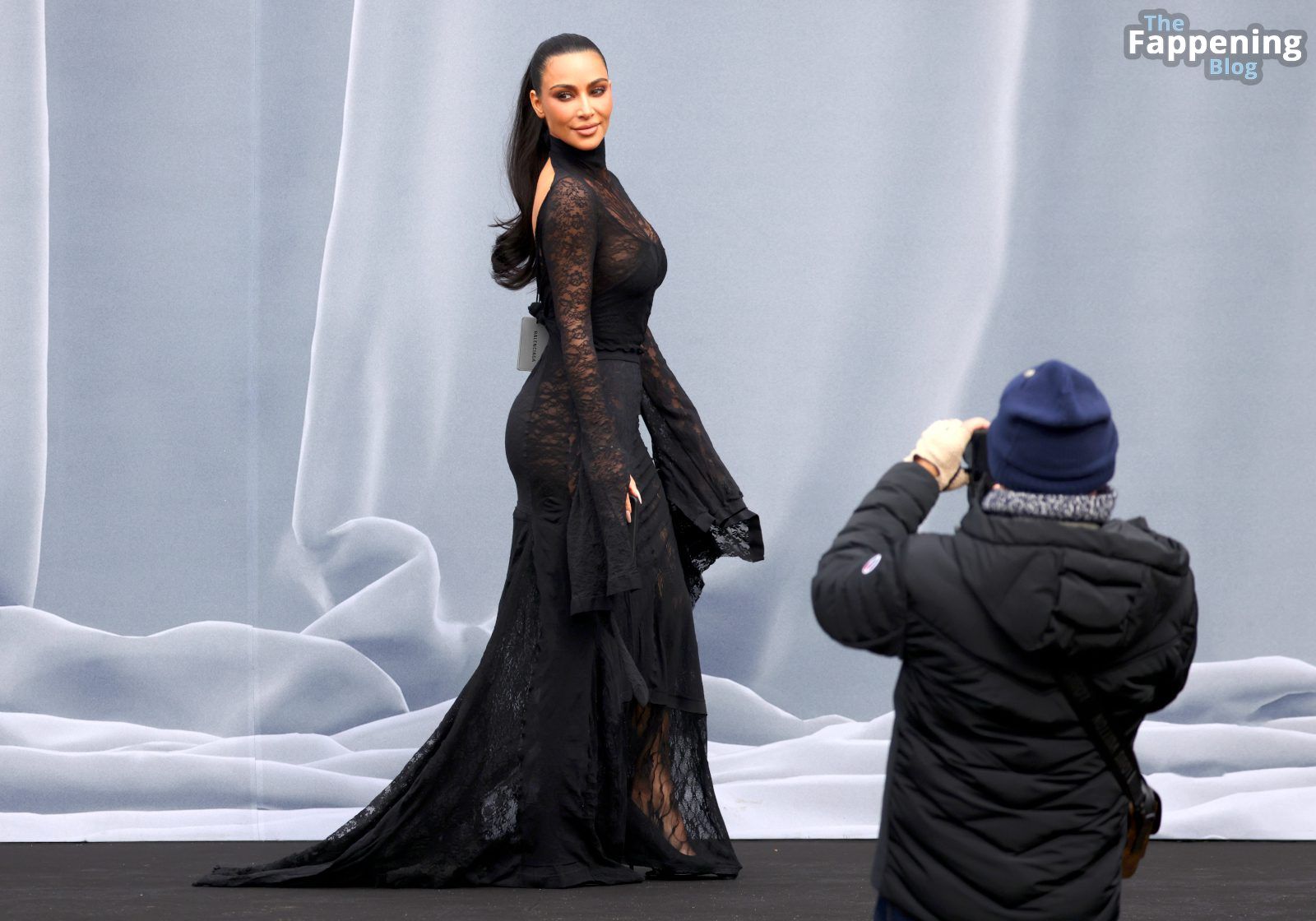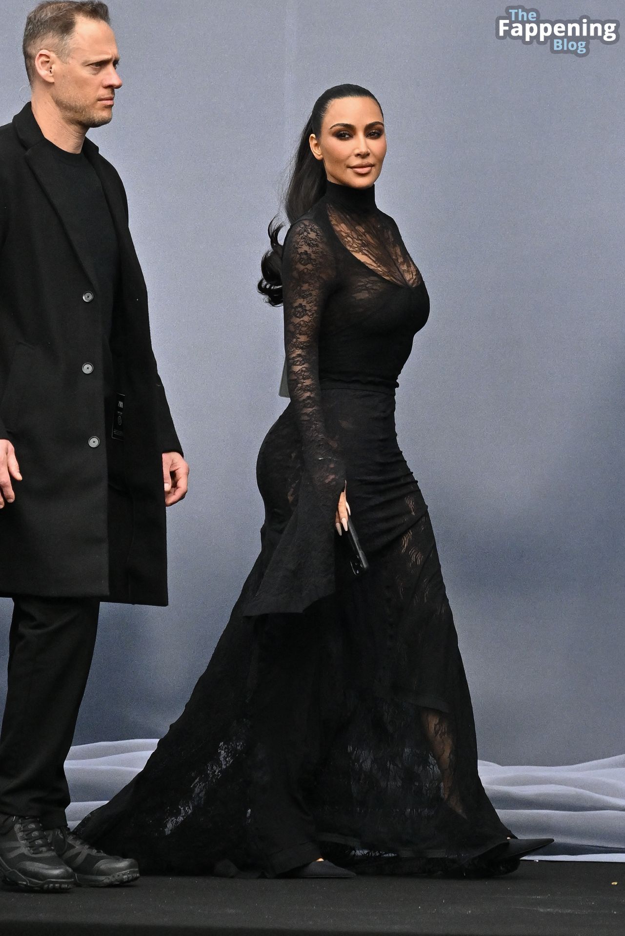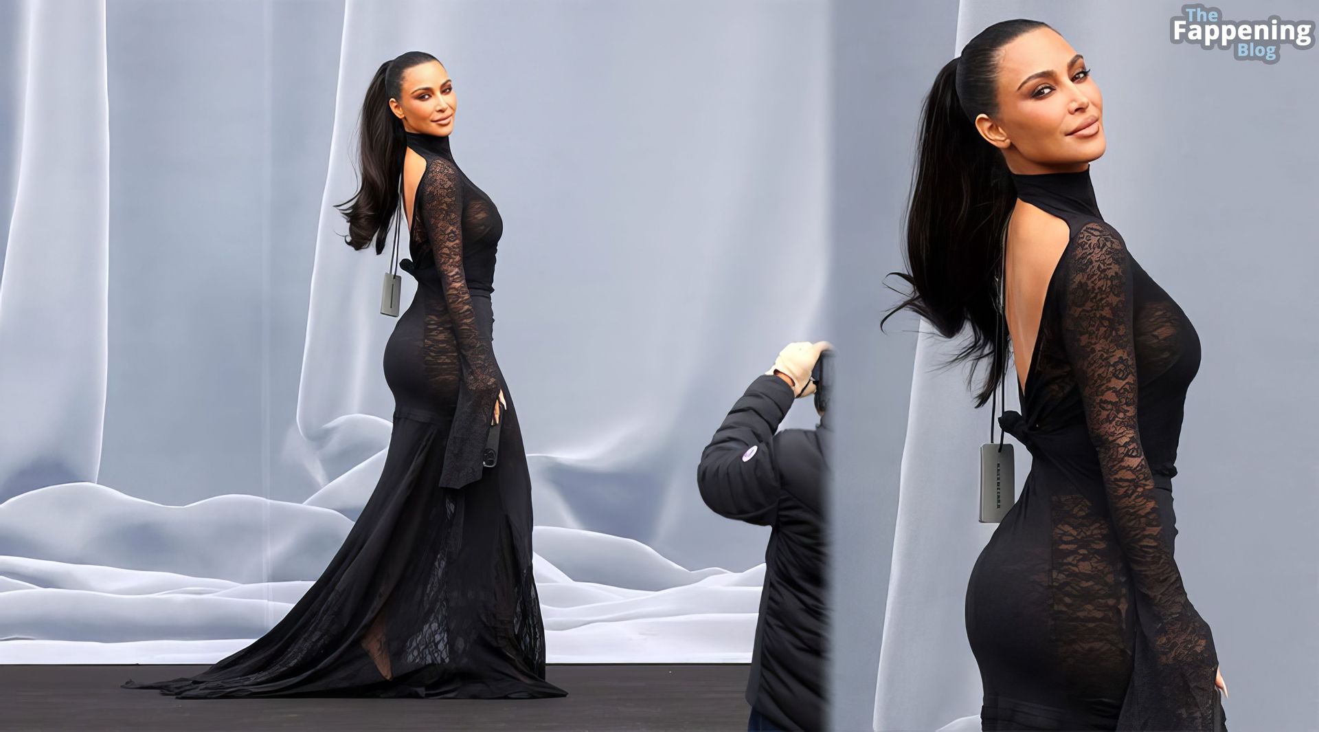 Confira o visual deslumbrante de Kim Kardashian no Desfile de Moda da Balenciaga enquanto ela exibe suas curvas impressionantes e seu famoso bumbum.