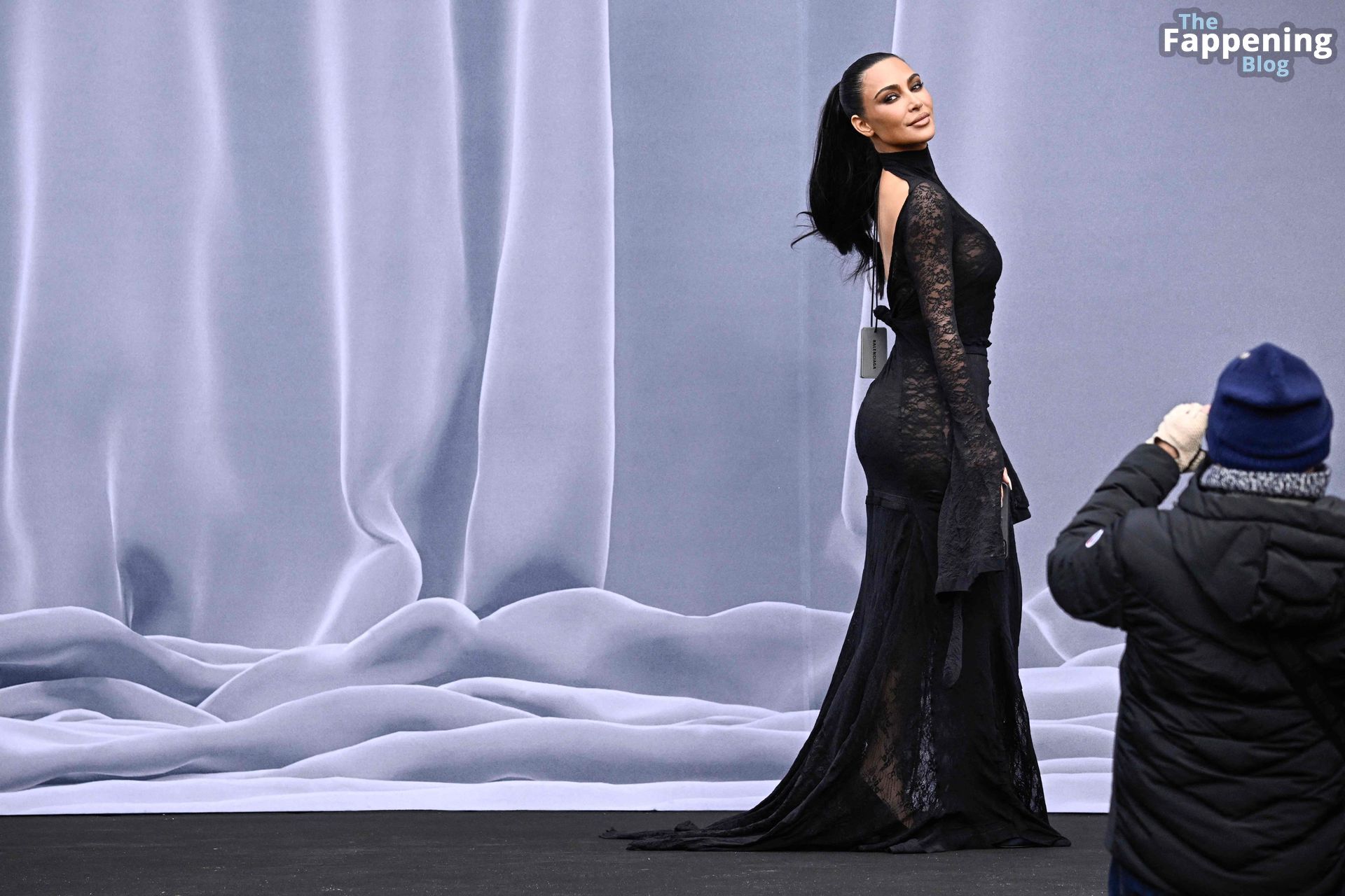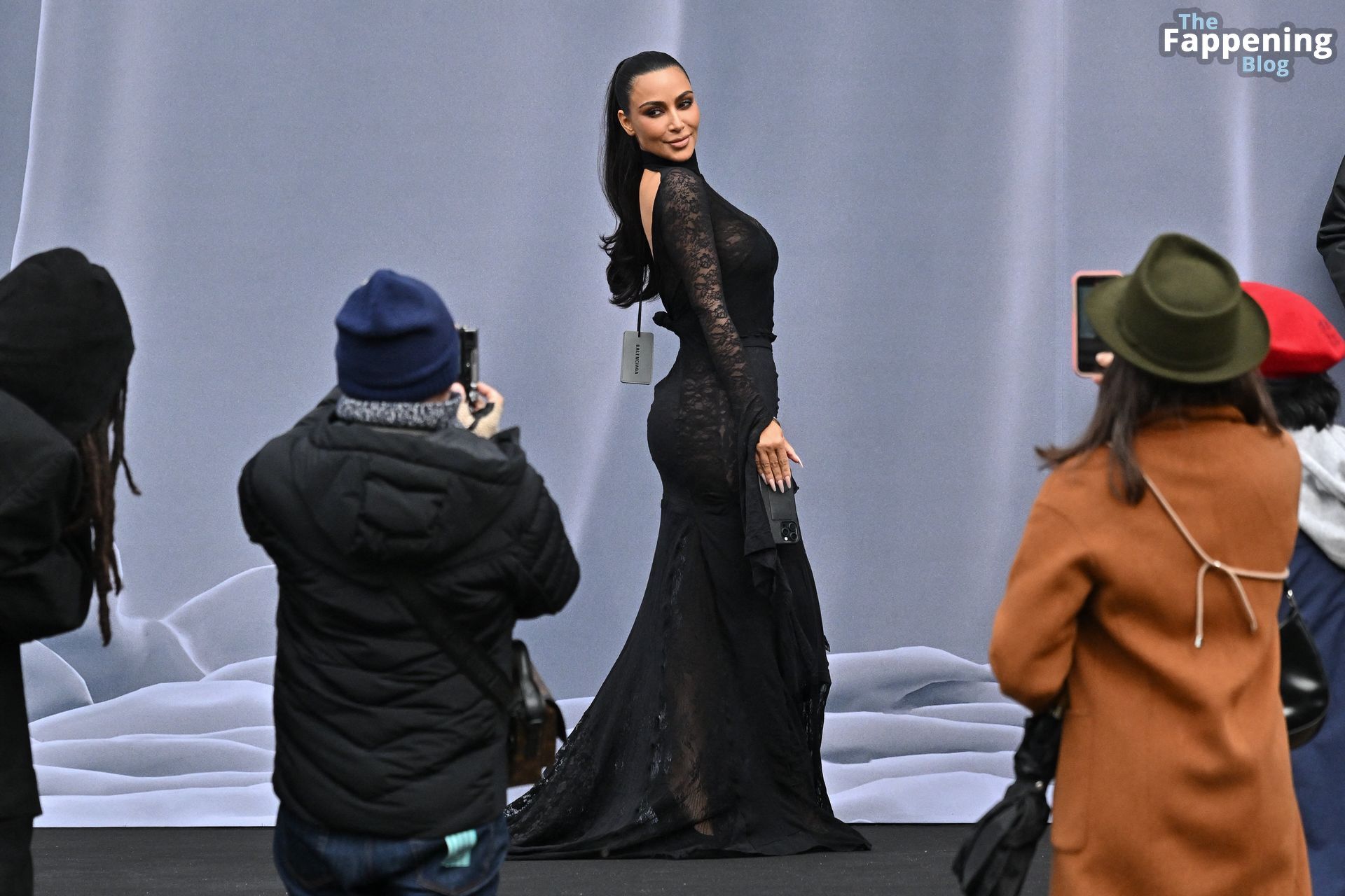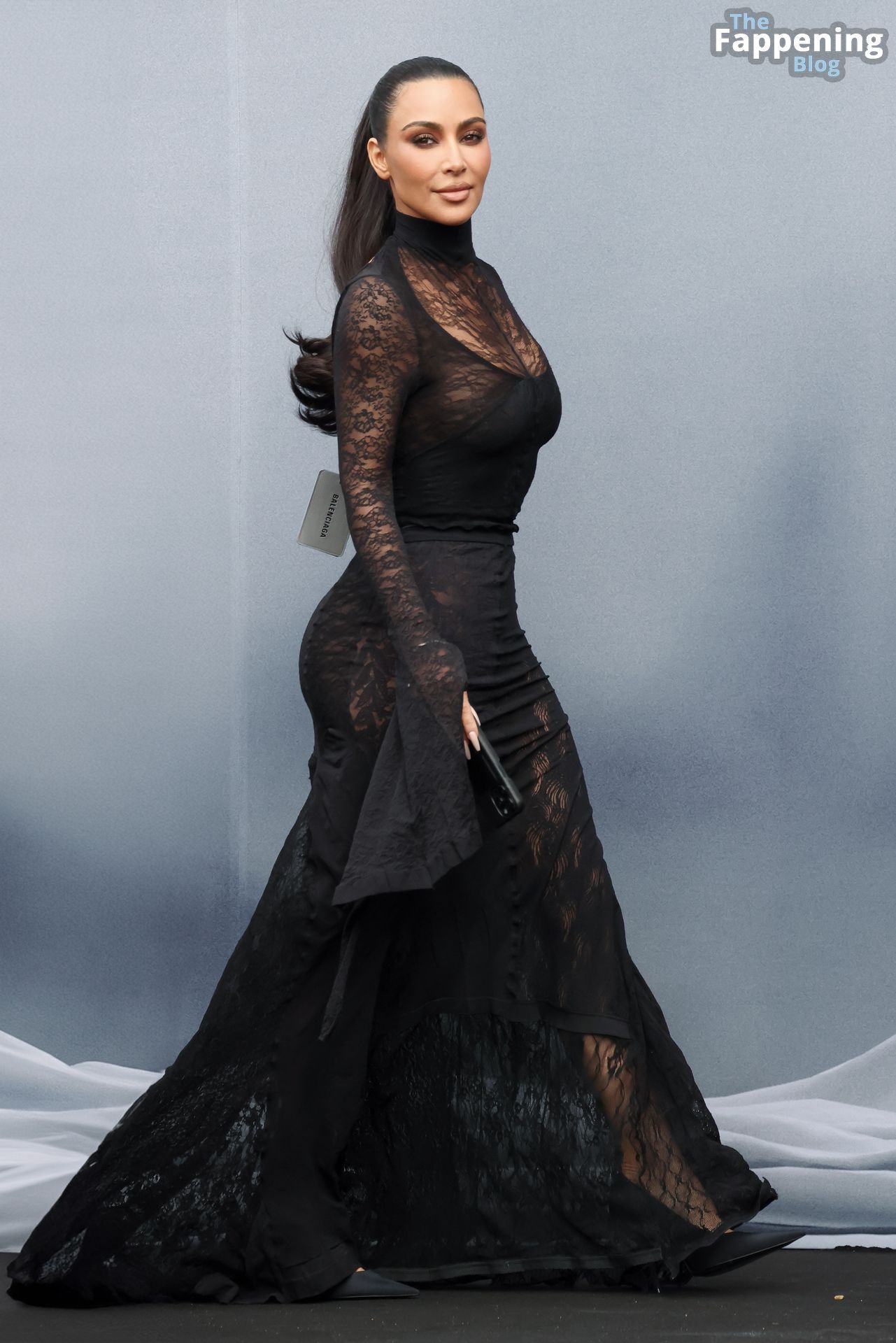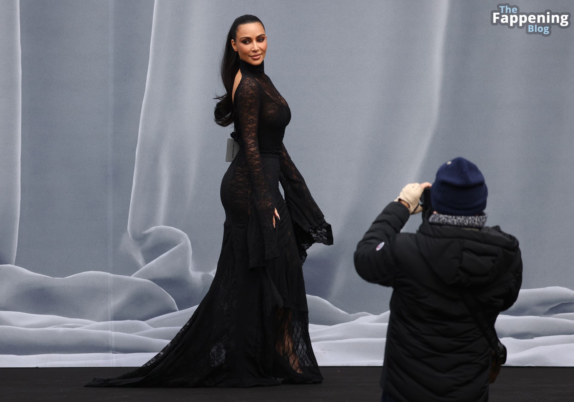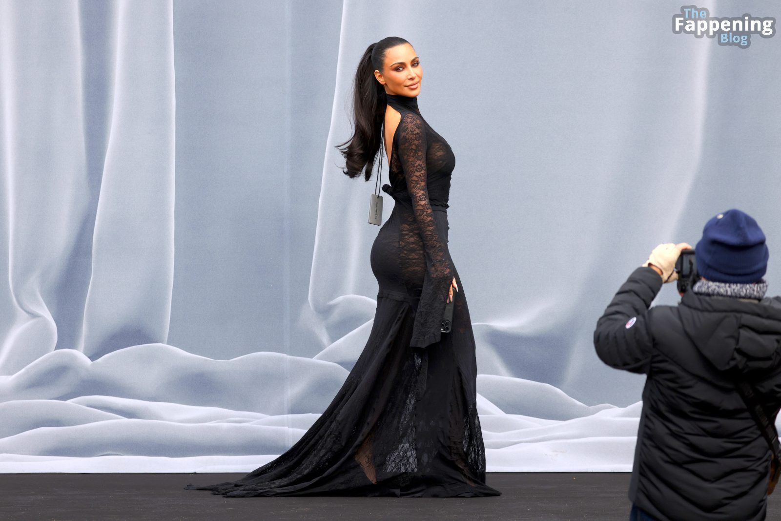 Confira o visual deslumbrante de Kim Kardashian no Desfile de Moda da Balenciaga enquanto ela exibe suas curvas impressionantes e seu famoso bumbum.
