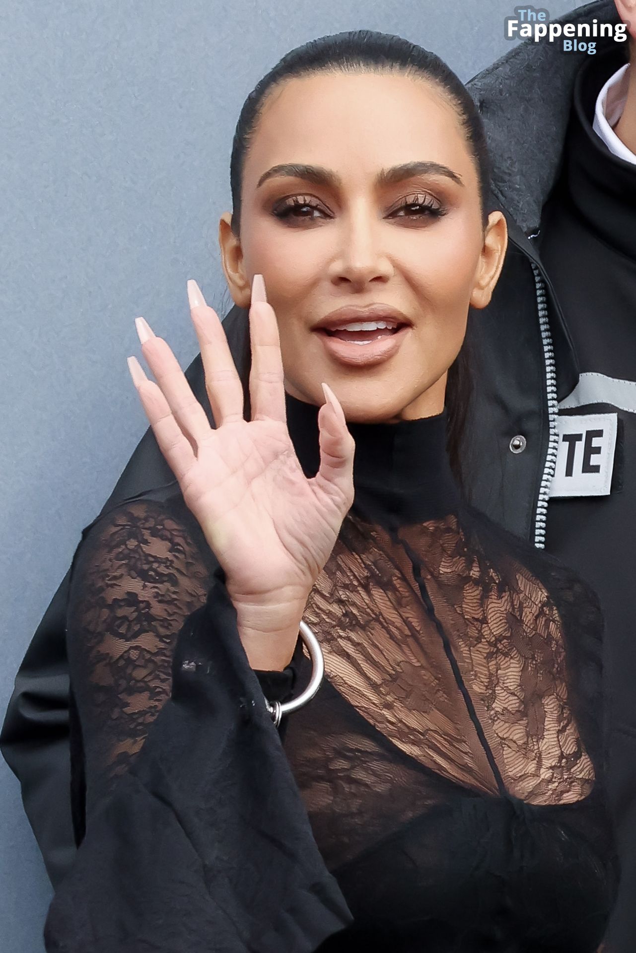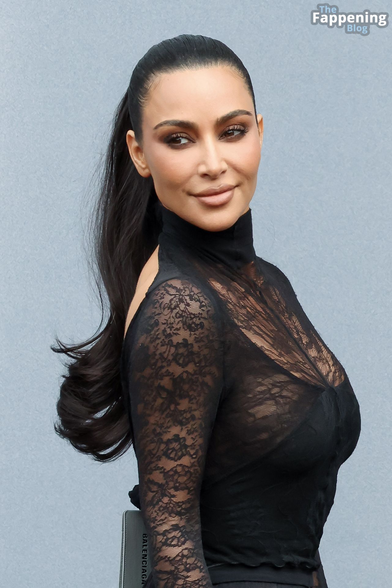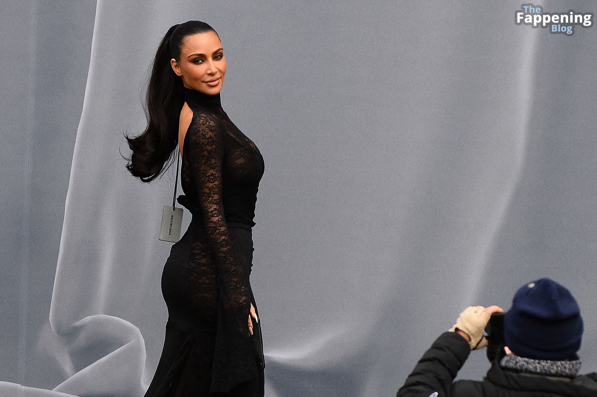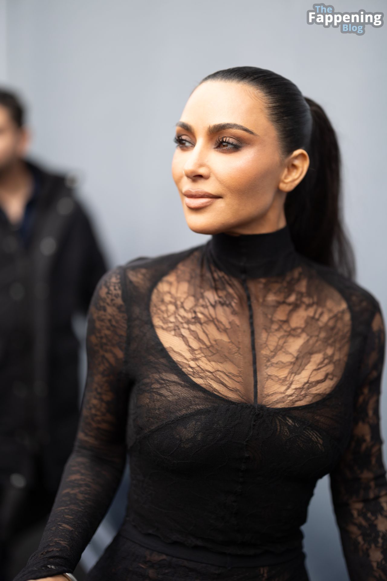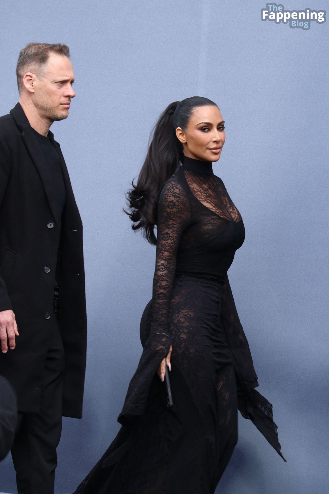Confira o visual deslumbrante de Kim Kardashian no Desfile de Moda da Balenciaga enquanto ela exibe suas curvas impressionantes e seu famoso bumbum.
