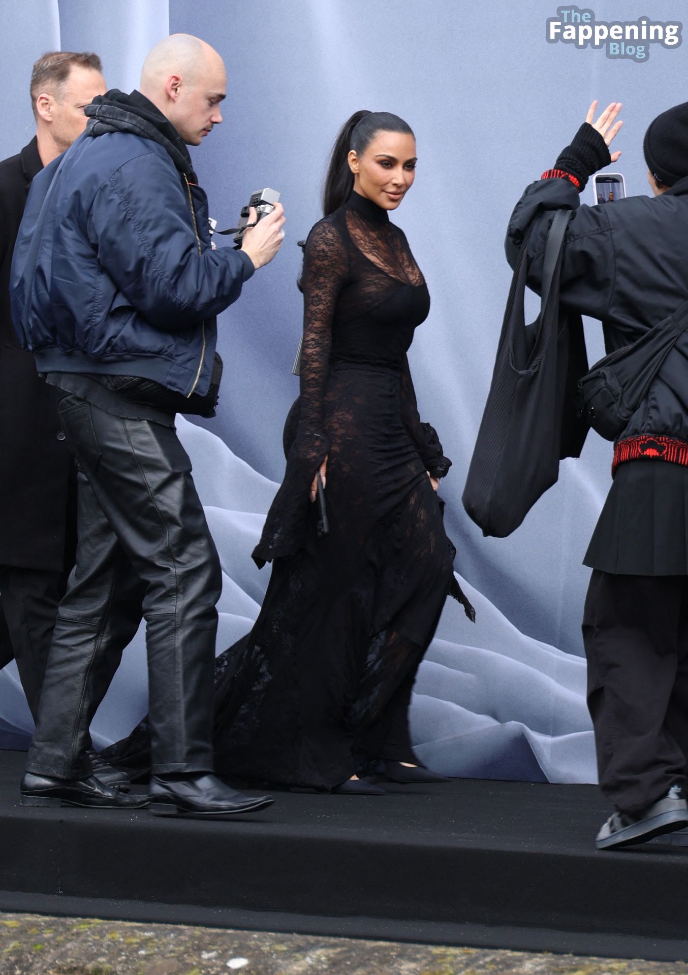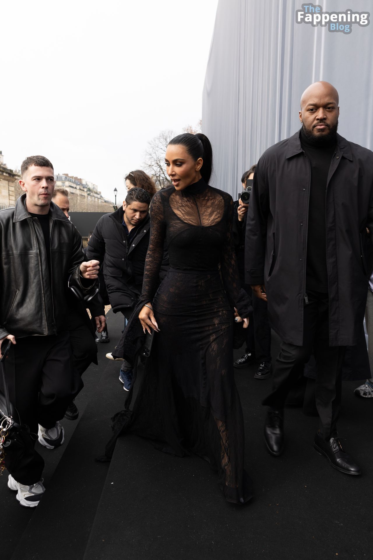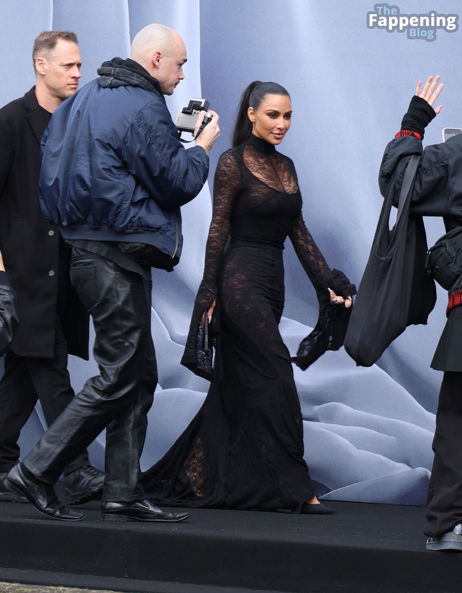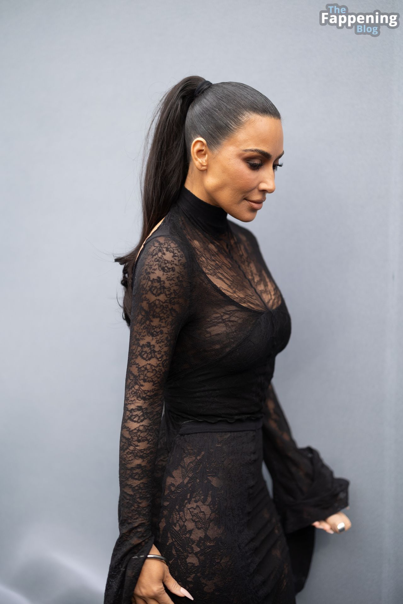Confira o visual deslumbrante de Kim Kardashian no Desfile de Moda da Balenciaga enquanto ela exibe suas curvas impressionantes e seu famoso bumbum.