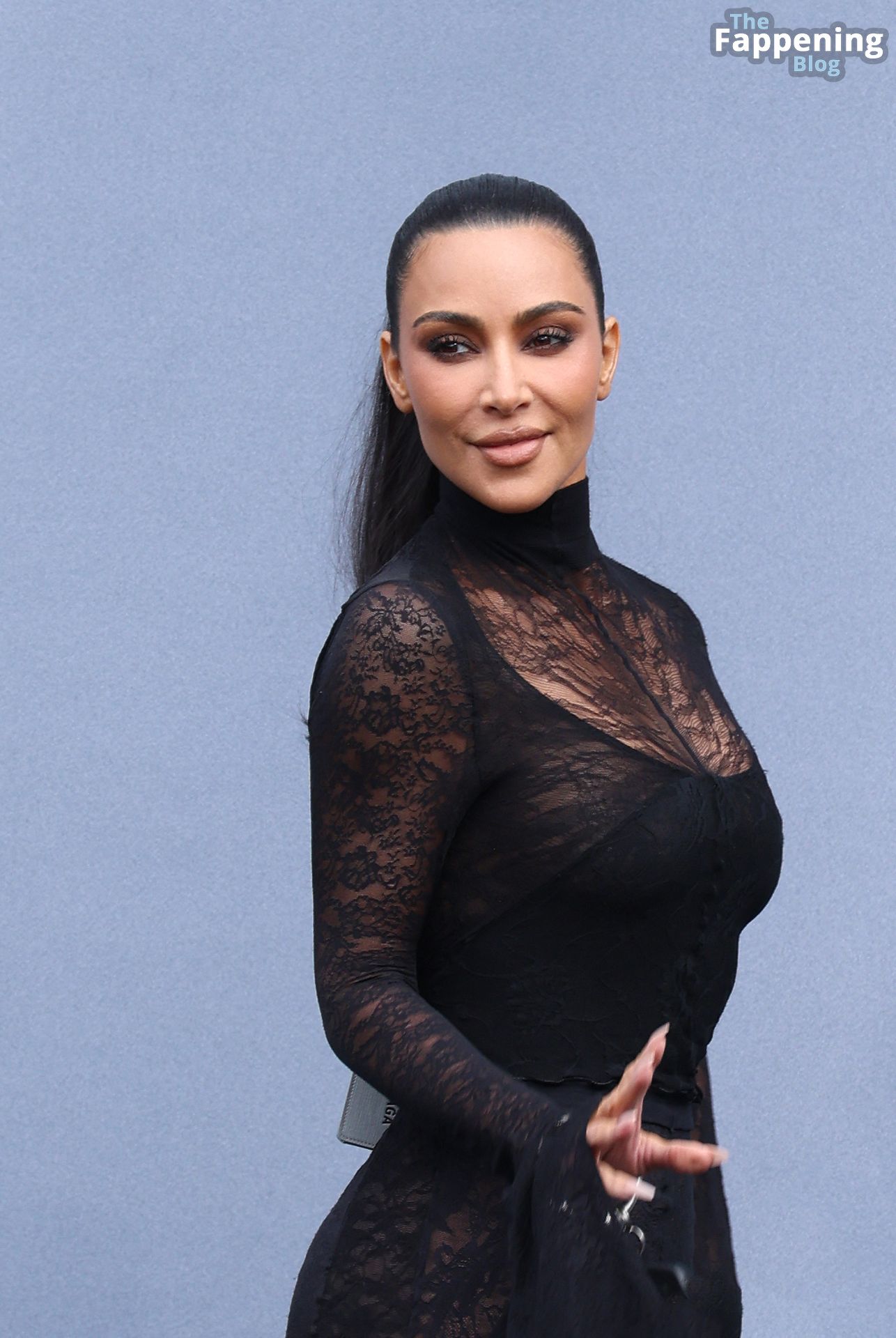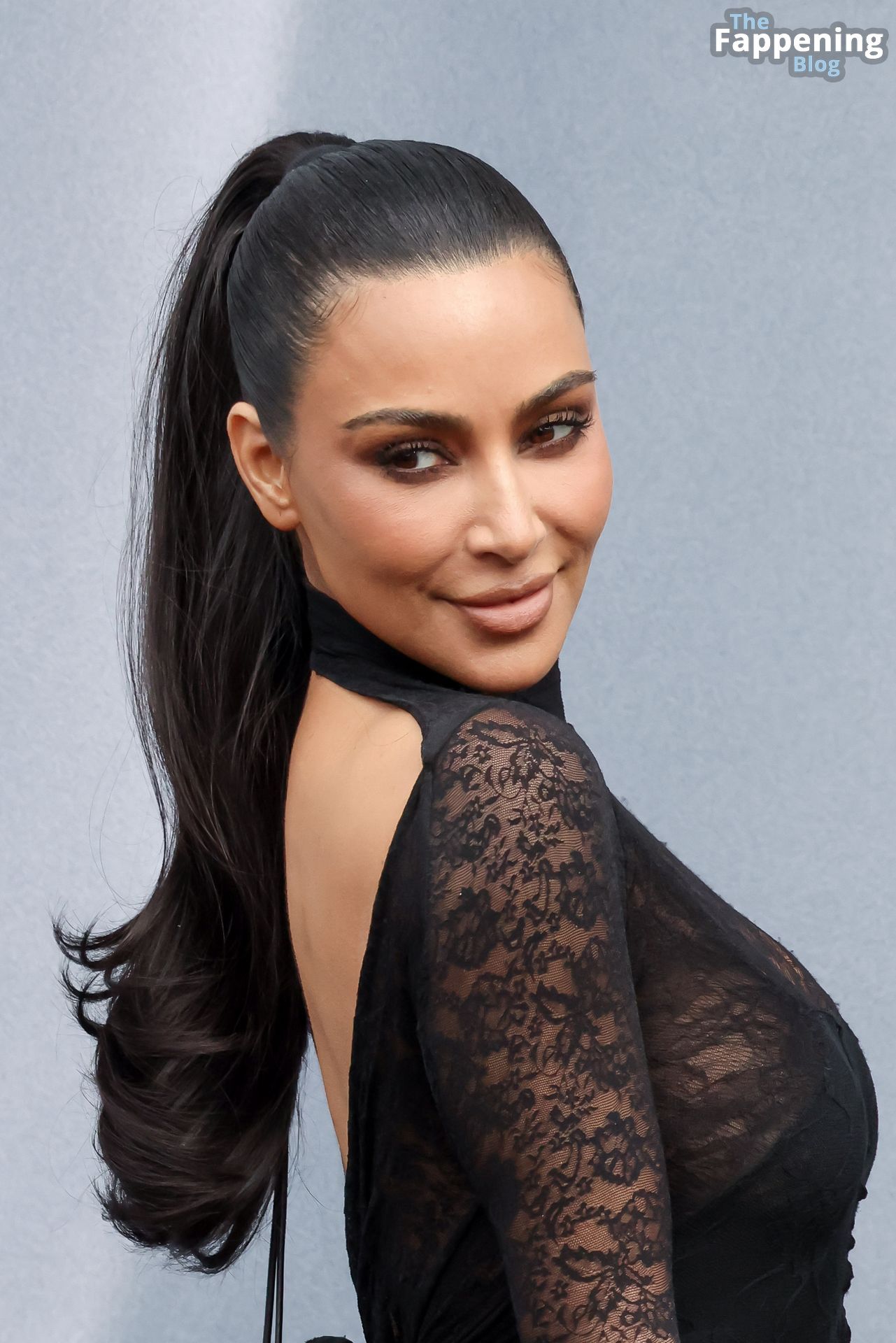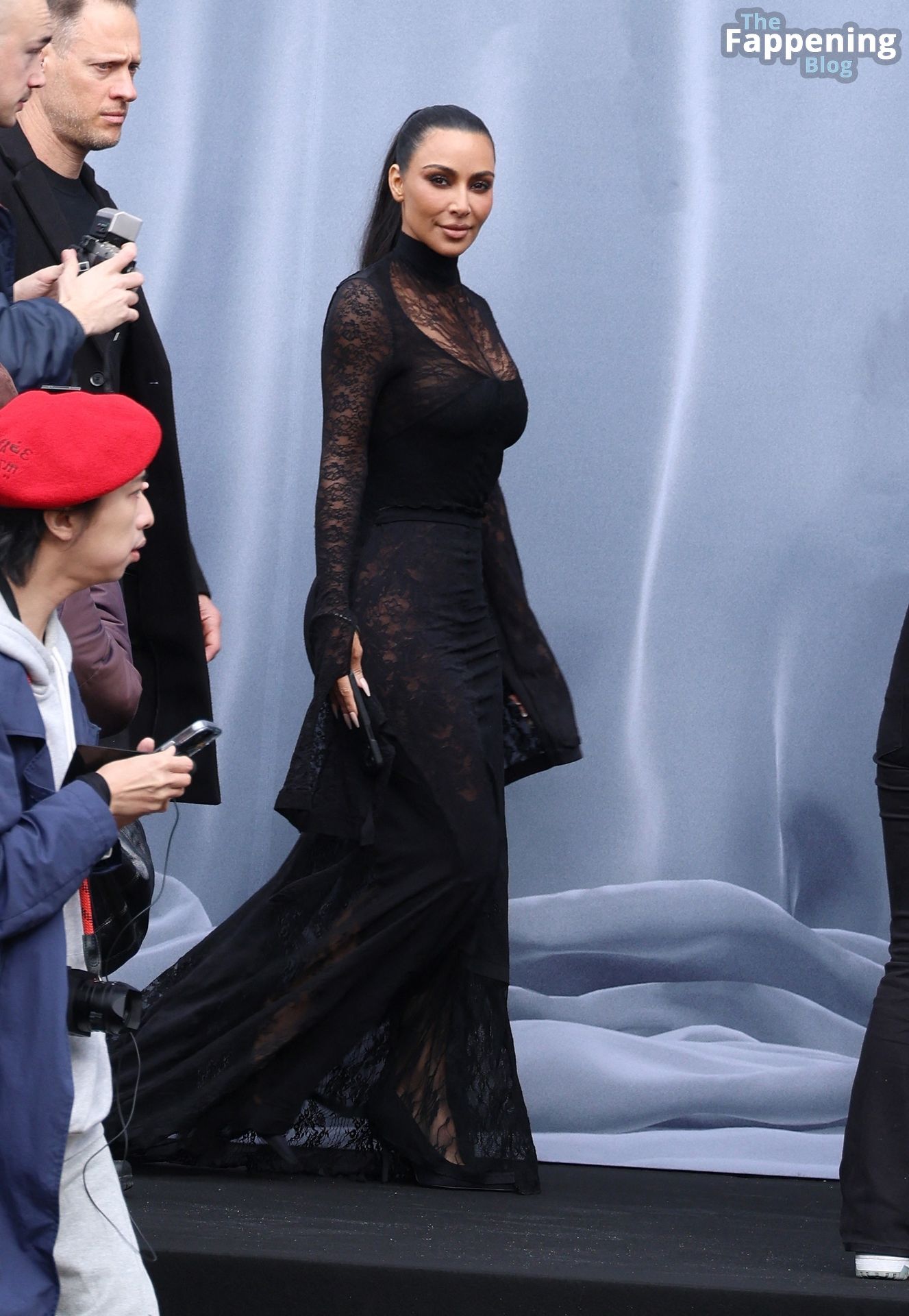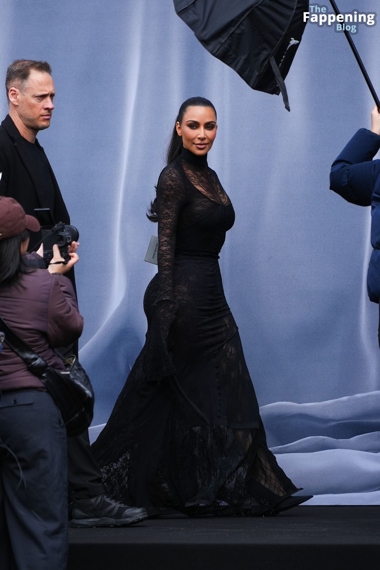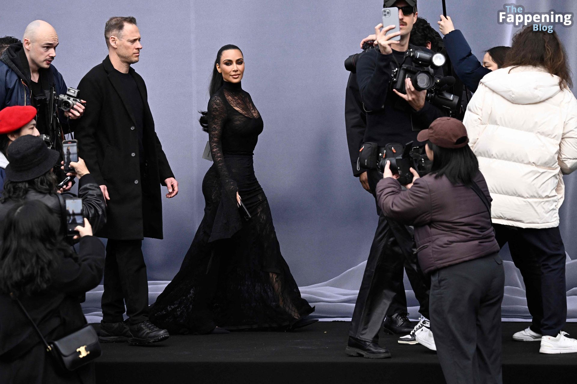 Confira o visual deslumbrante de Kim Kardashian no Desfile de Moda da Balenciaga enquanto ela exibe suas curvas impressionantes e seu famoso bumbum.