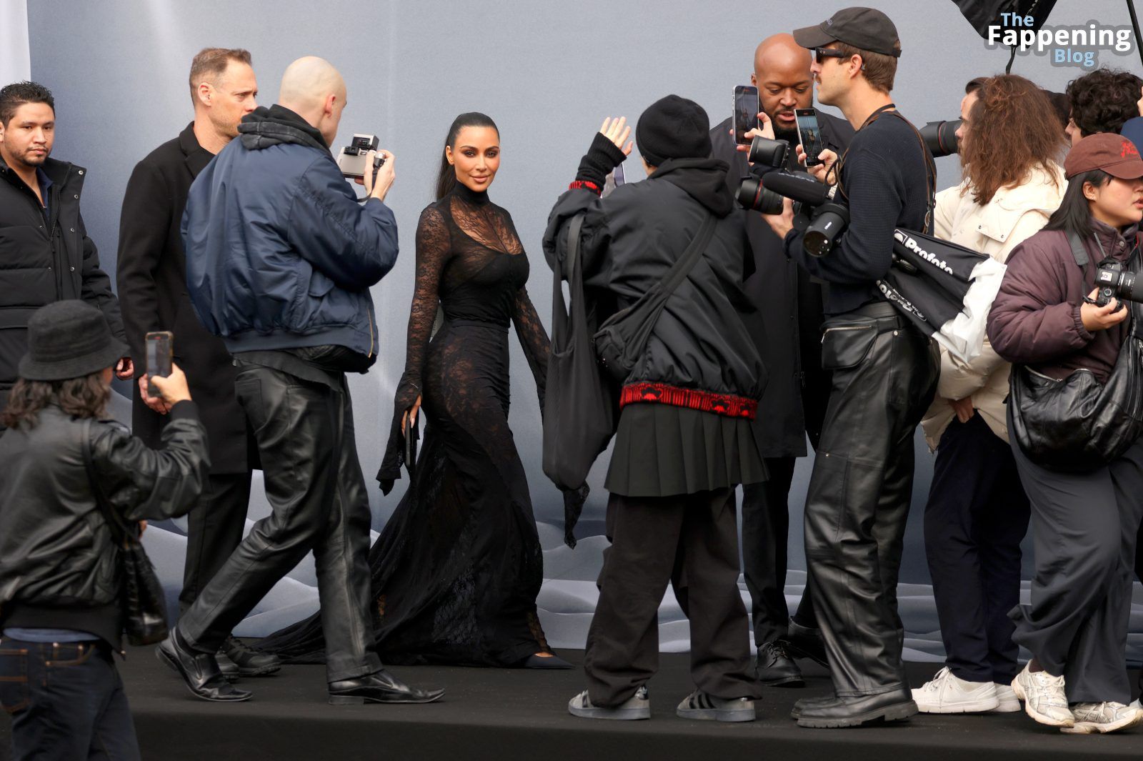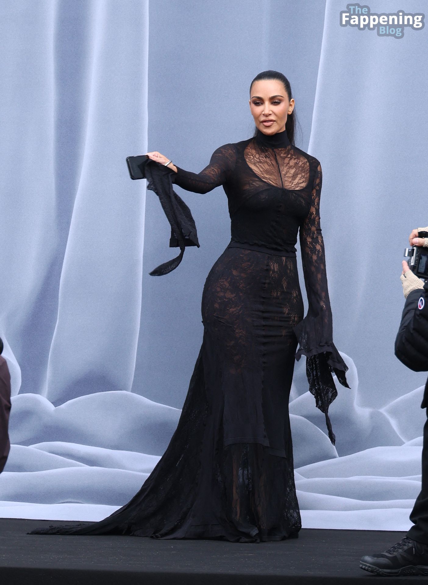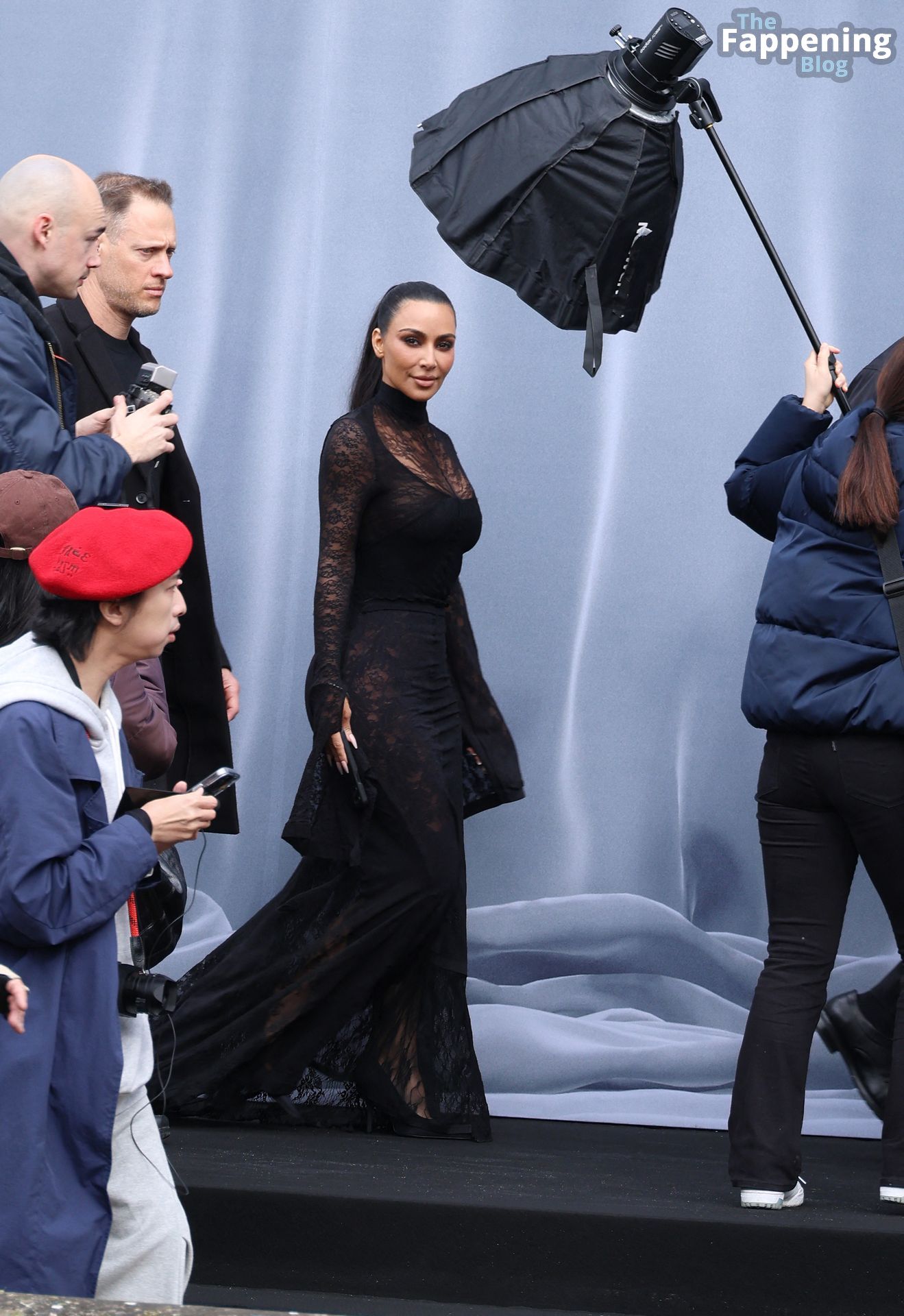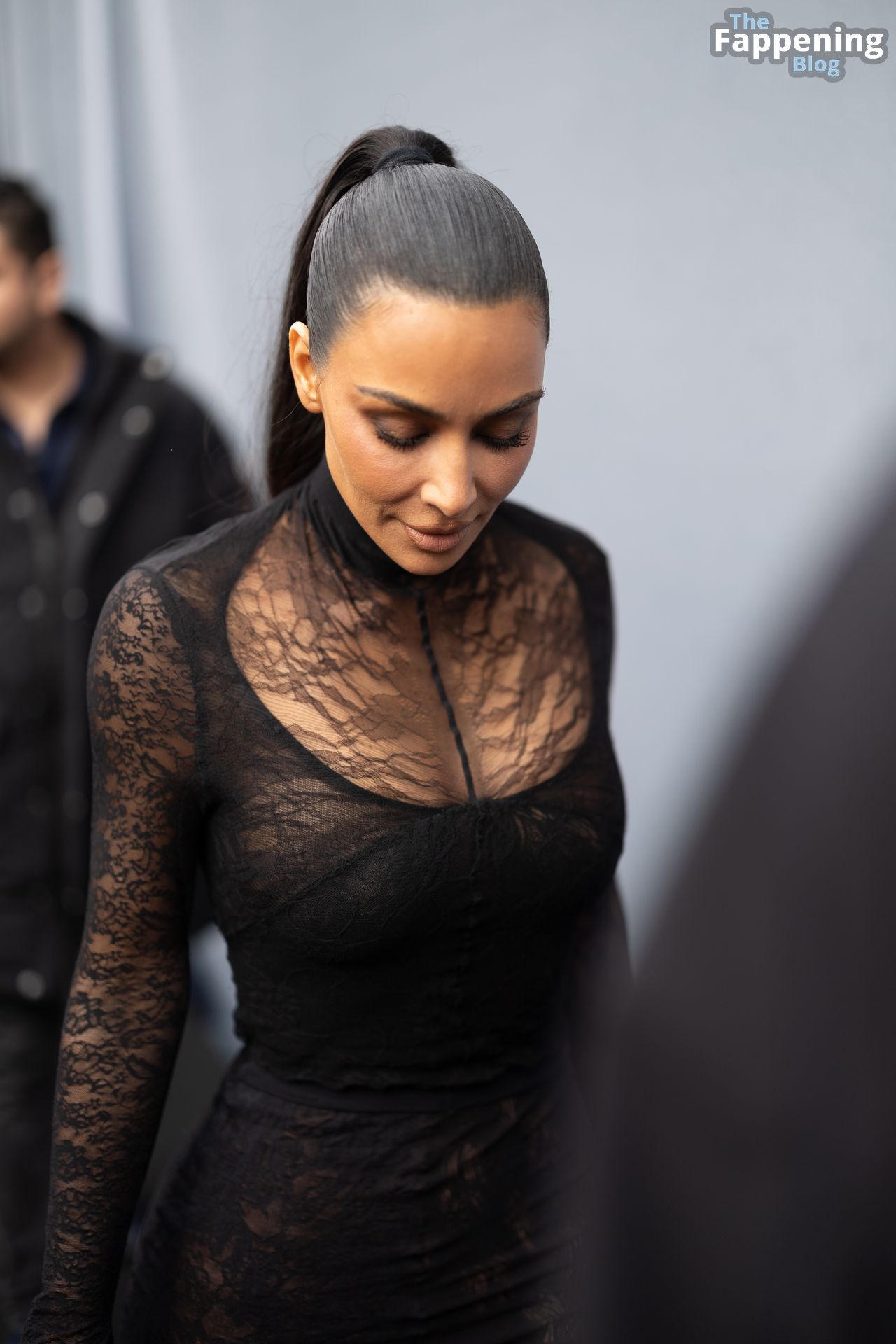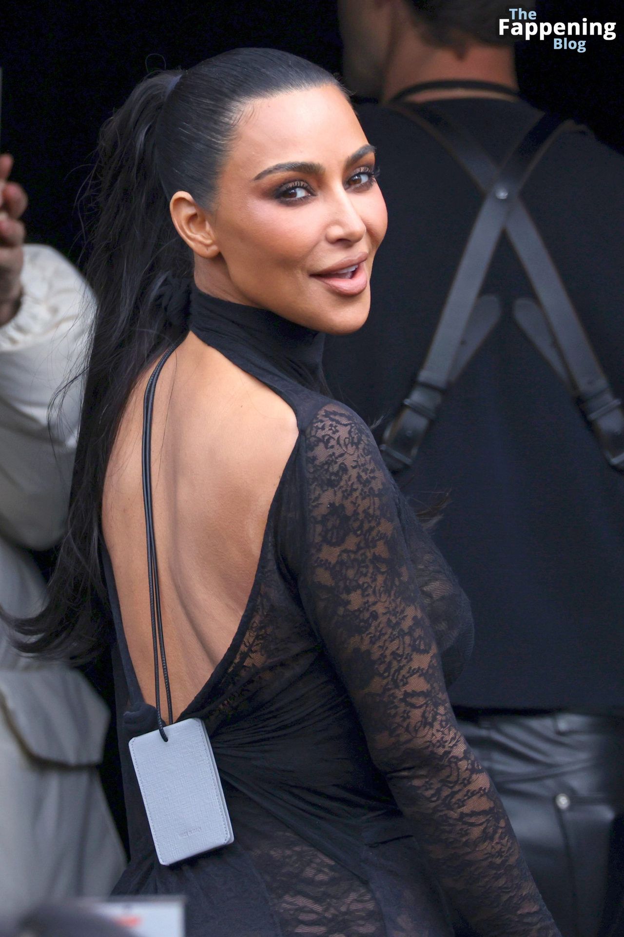 Confira o visual deslumbrante de Kim Kardashian no Desfile de Moda da Balenciaga enquanto ela exibe suas curvas impressionantes e seu famoso bumbum.