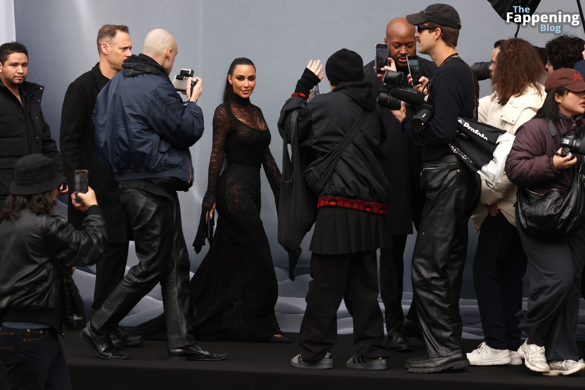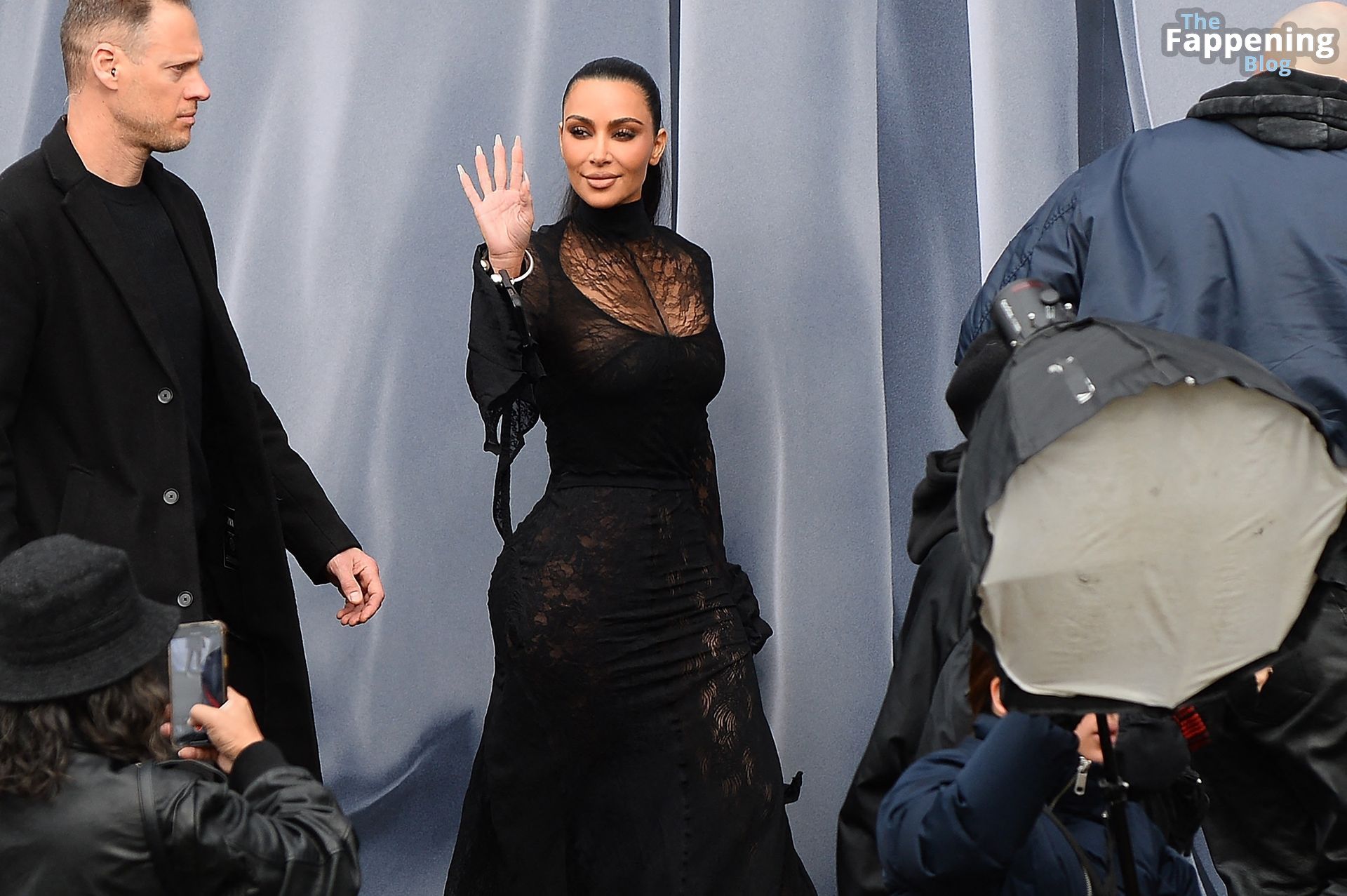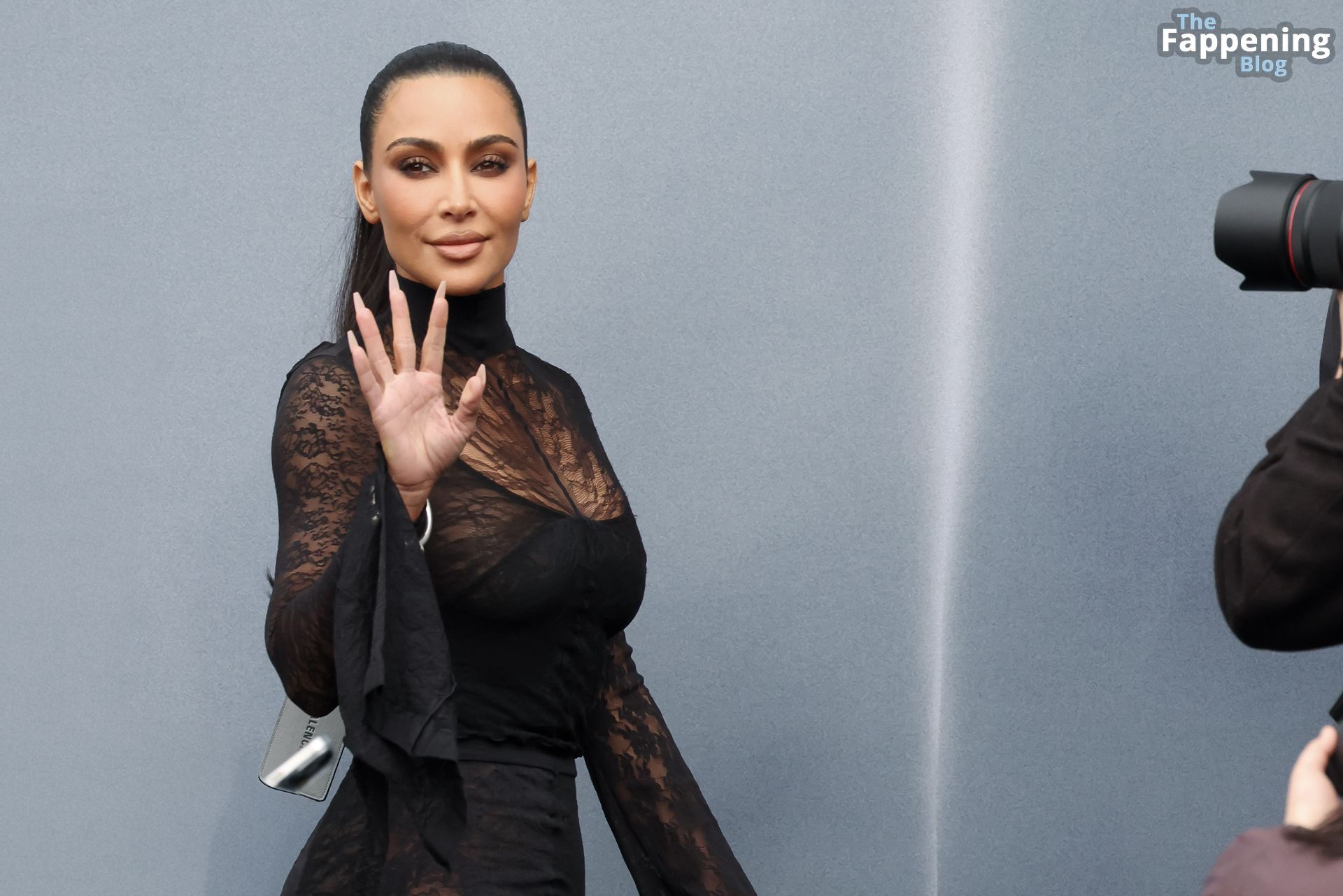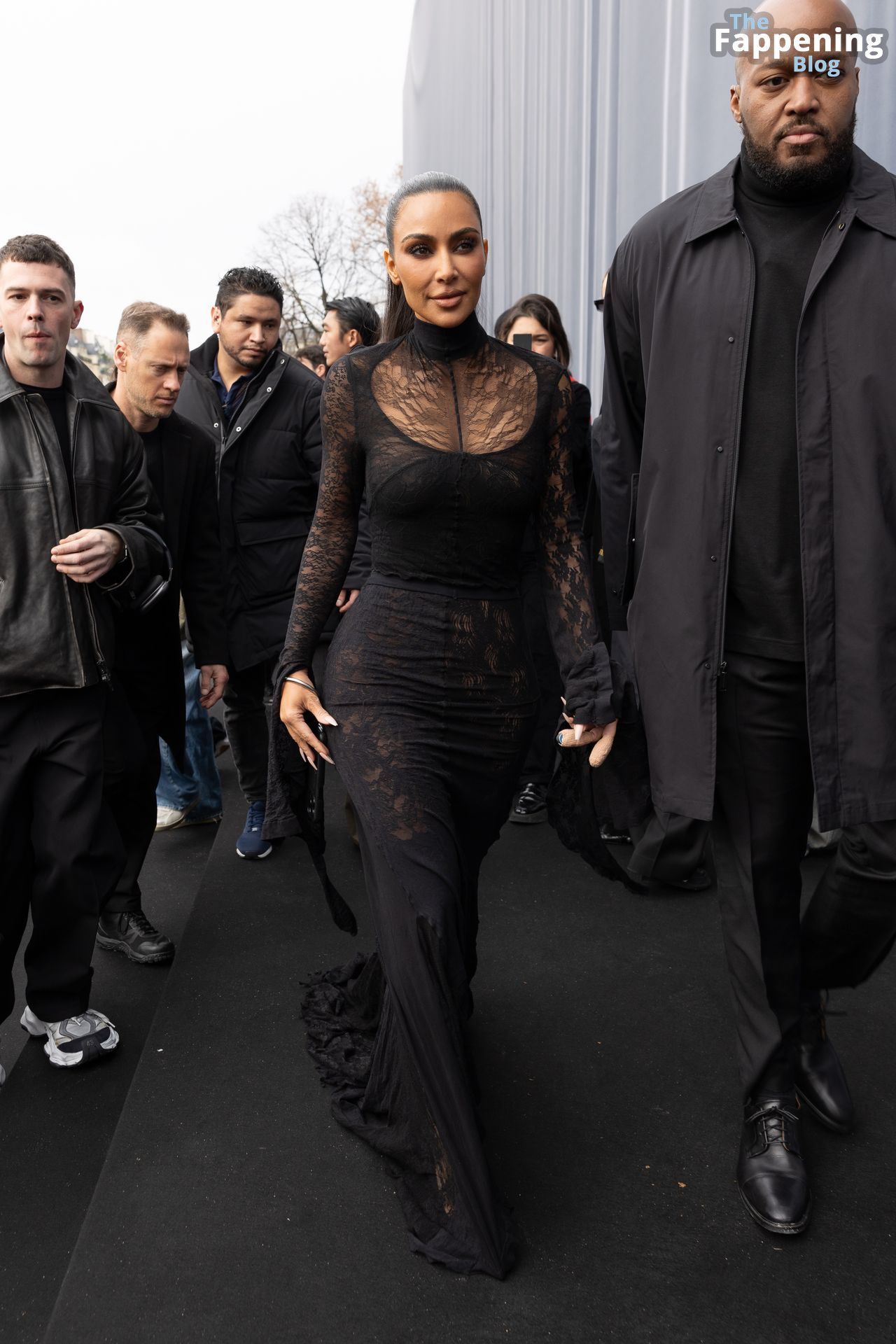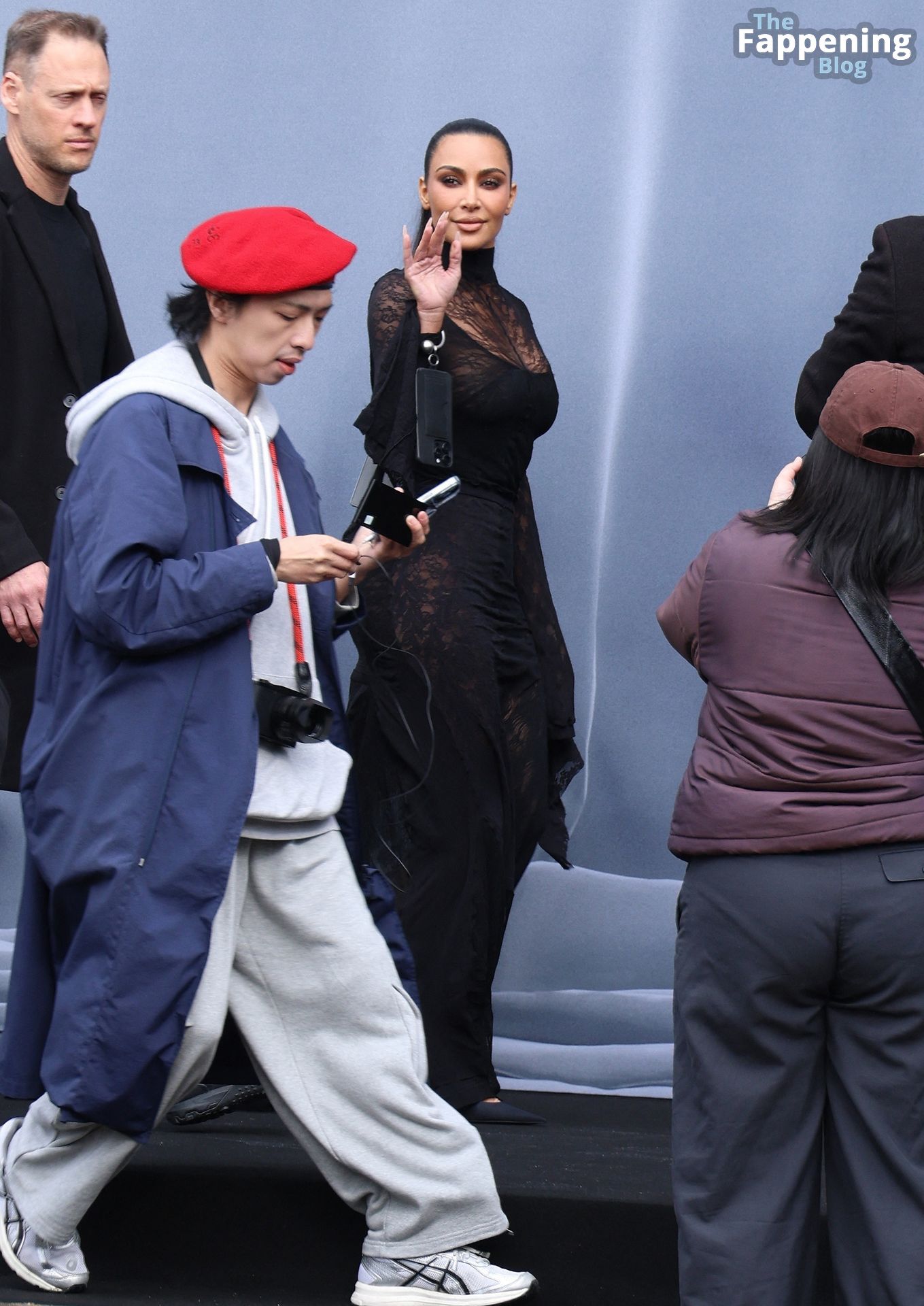 Confira o visual deslumbrante de Kim Kardashian no Desfile de Moda da Balenciaga enquanto ela exibe suas curvas impressionantes e seu famoso bumbum.