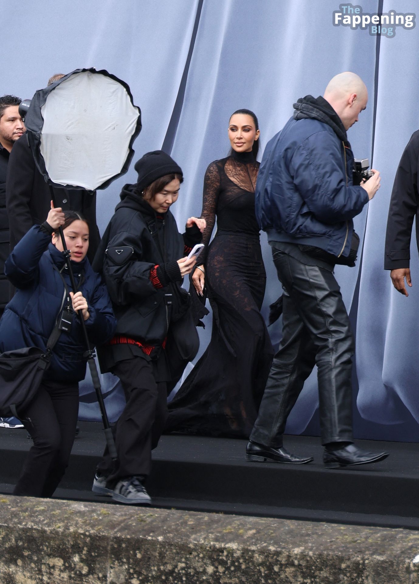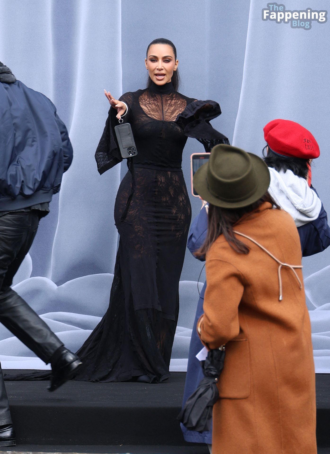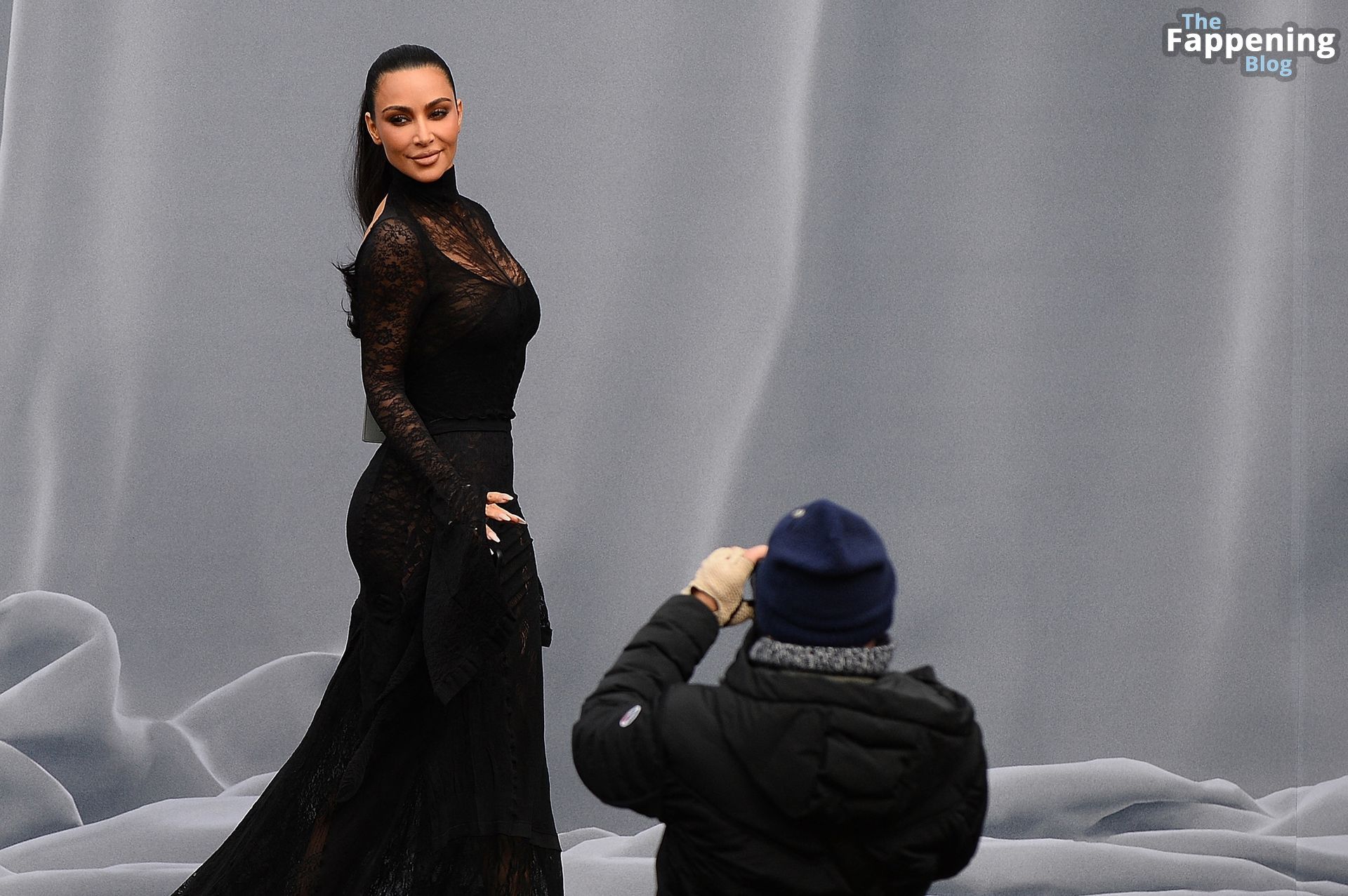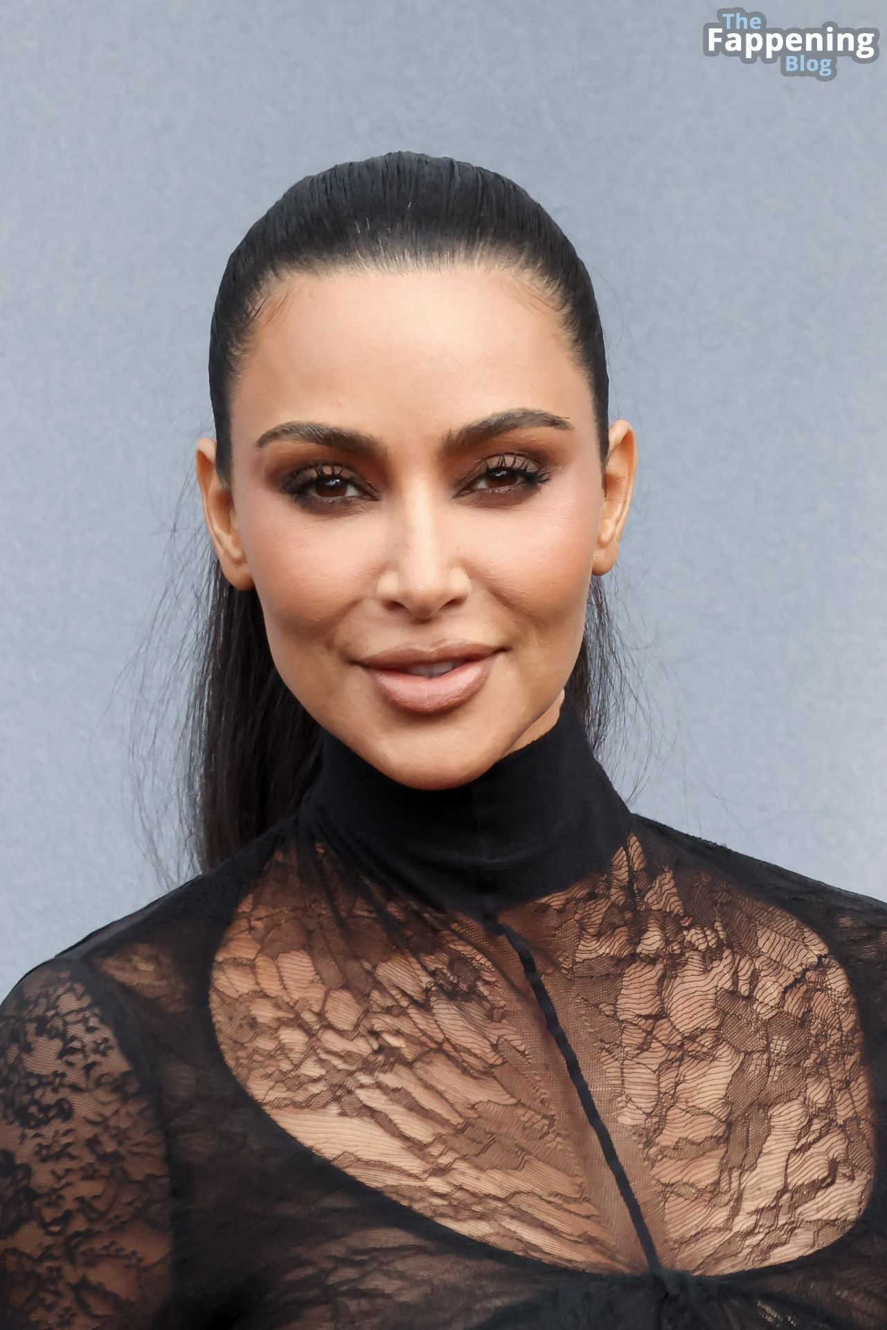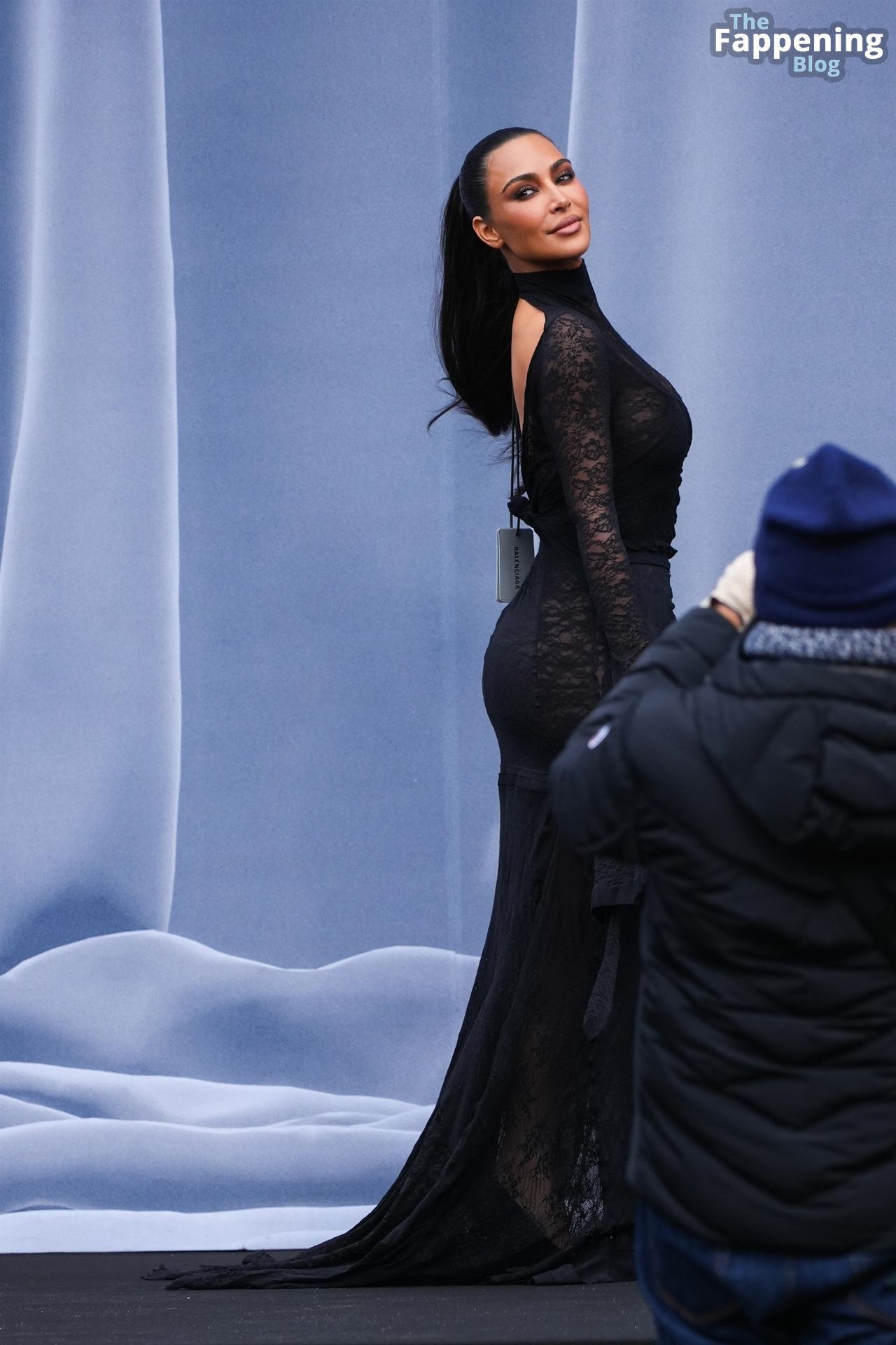 Confira o visual deslumbrante de Kim Kardashian no Desfile de Moda da Balenciaga enquanto ela exibe suas curvas impressionantes e seu famoso bumbum.