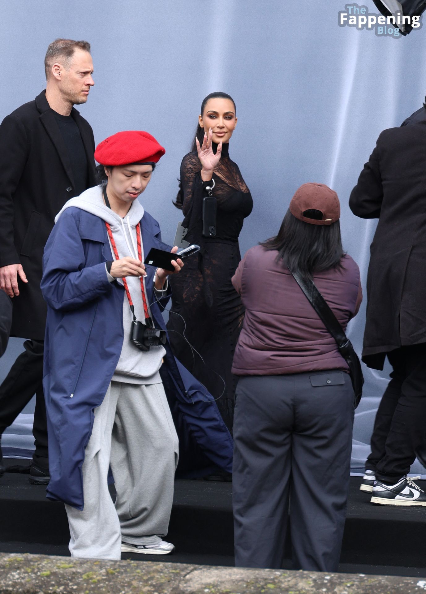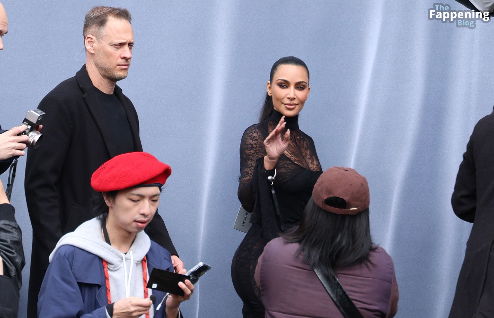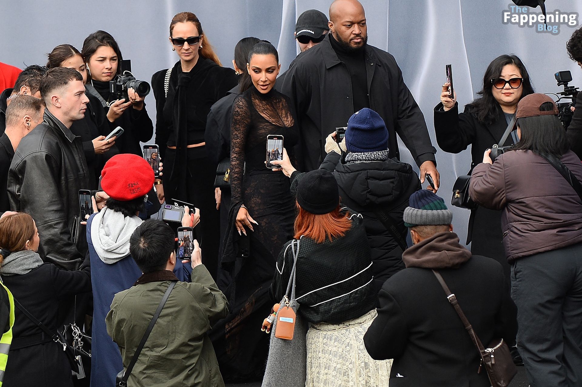 Kim marca presença no desfile de moda Outono/Inverno 2024-2025 da Balenciaga durante a Paris Fashion Week (PFW) no cour du Dôme des Invalides em Paris, França.