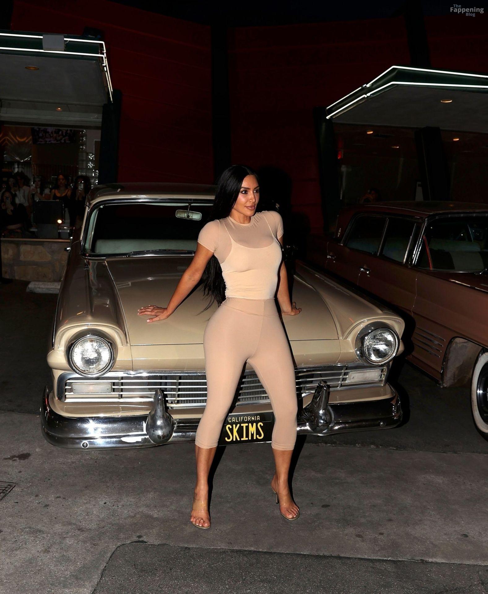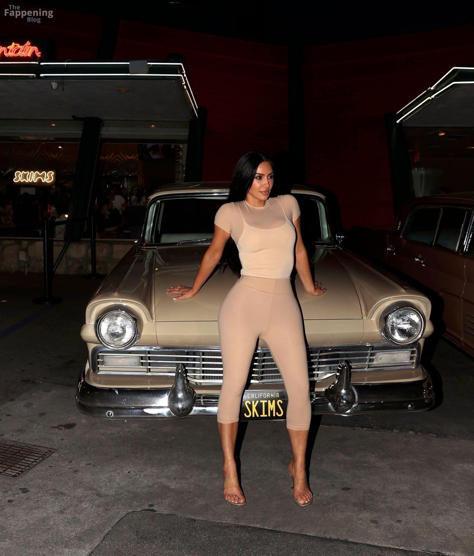 Kim Kardashian foi vista no Mel’s Diner, arrasando com um look nude justo da Skims que realçava suas curvas sensuais.