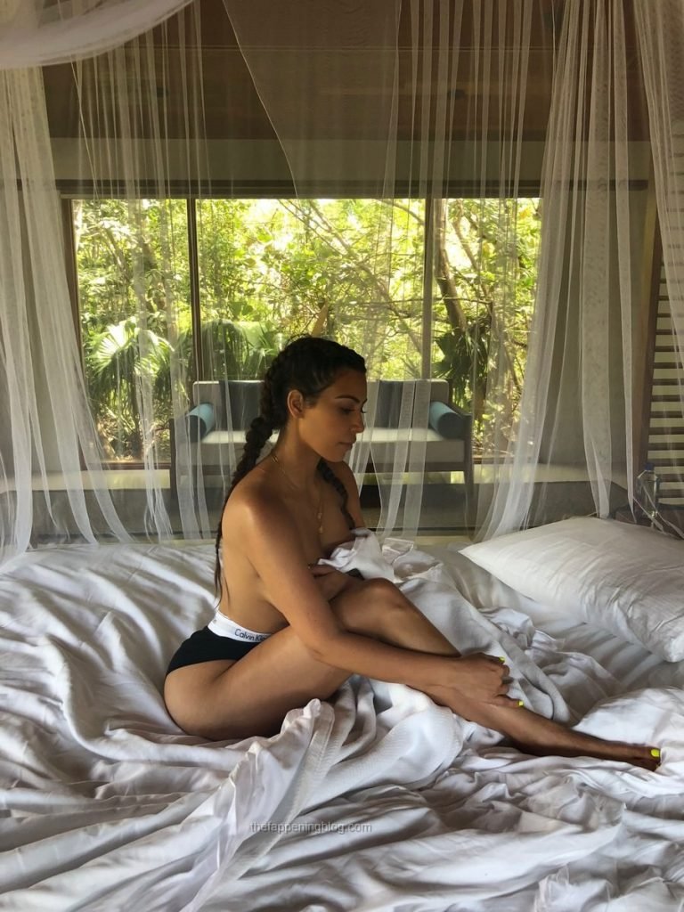 Kim Kardashian adicionou duas fotos sem blusa cobertas na internet, 22/04/2018. Kim Kardashian é uma estrela de reality show e online, modelo, atriz de cinema, empresária. Idade – 37.