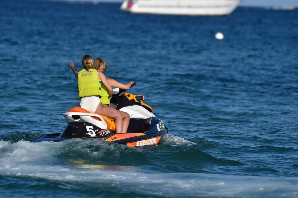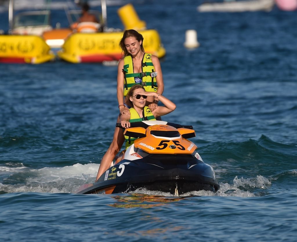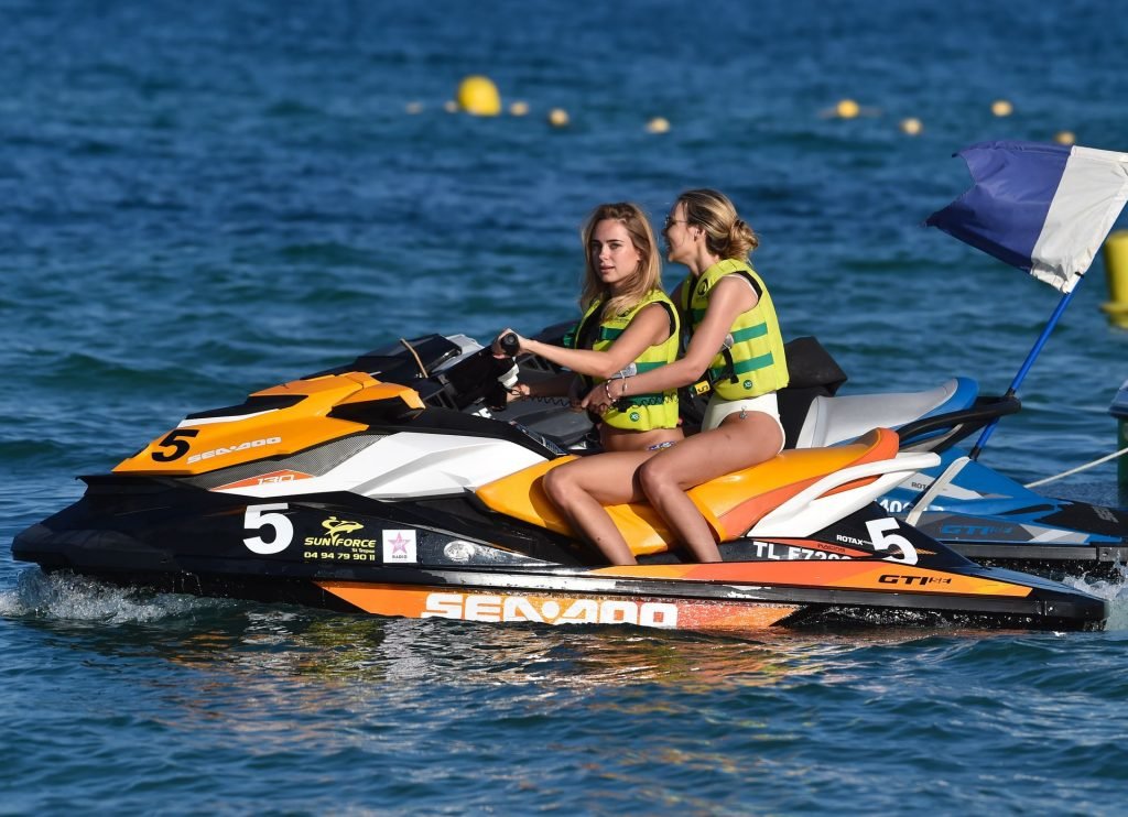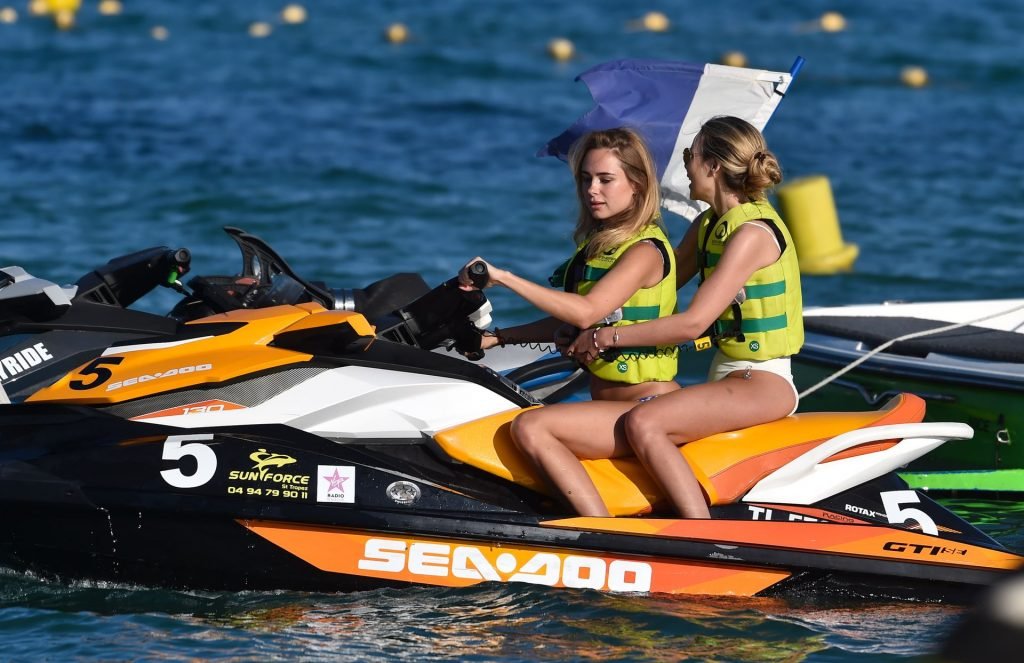 Kimberley Garner é vista andando de jet ski com um amigo em St Tropez, 13/08/2019. Com a pele bronzeada e dourada em suas férias de verão, Kimberley parecia incrível em um biquíni azul pequeno.