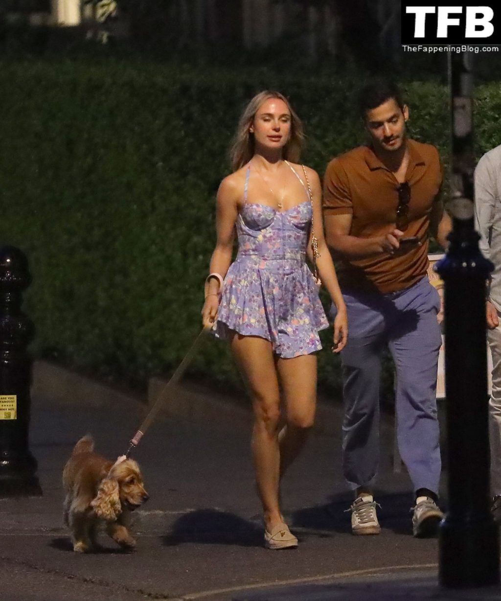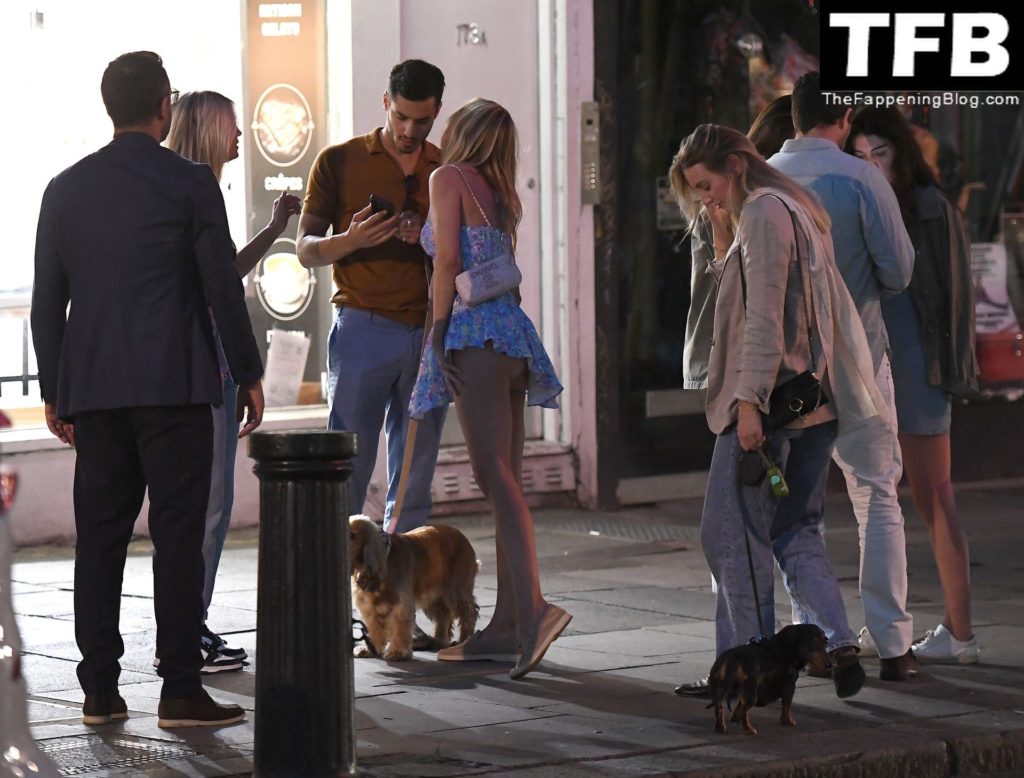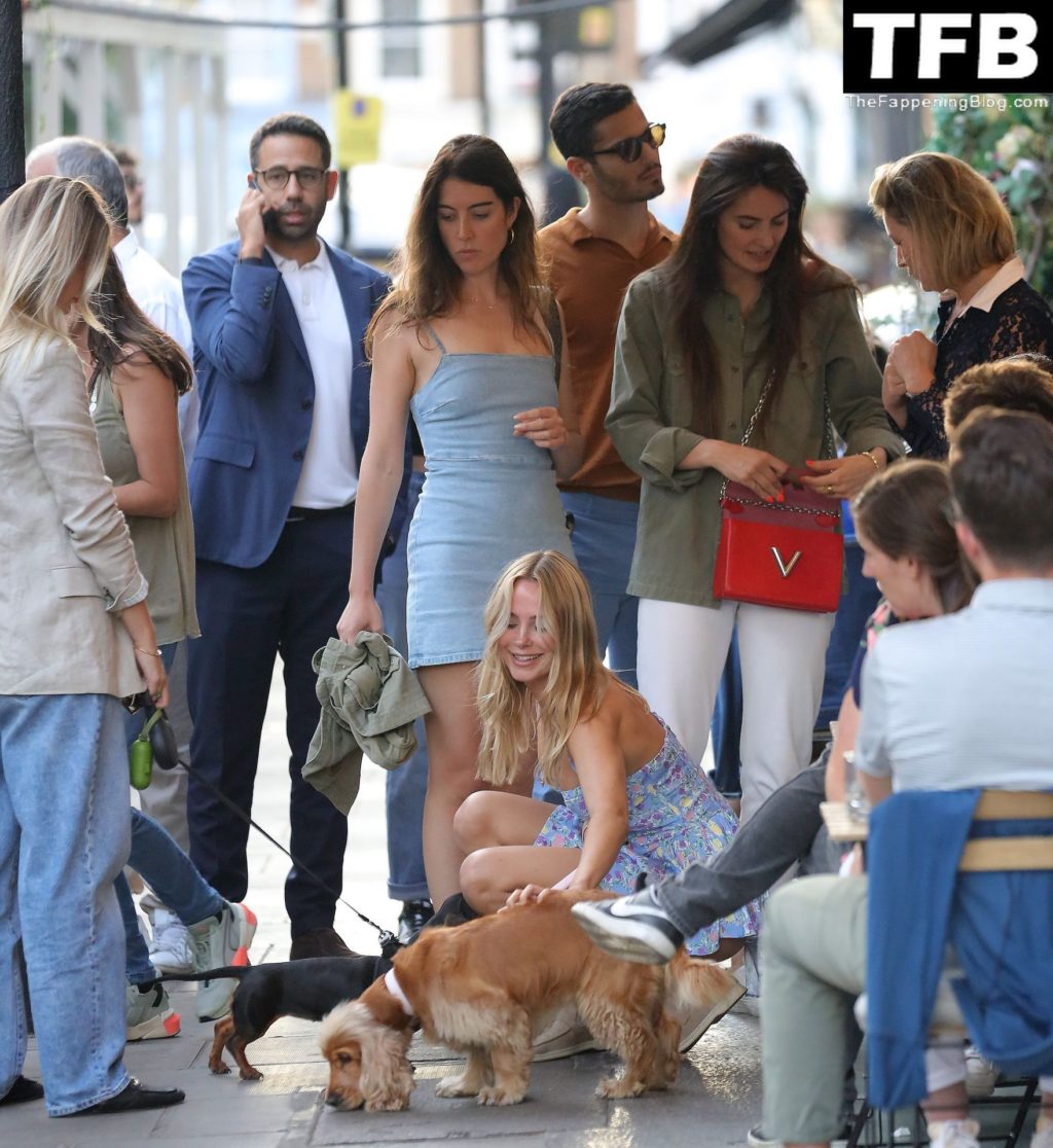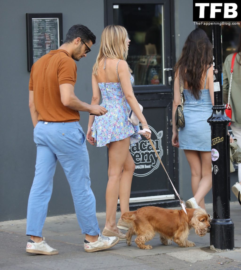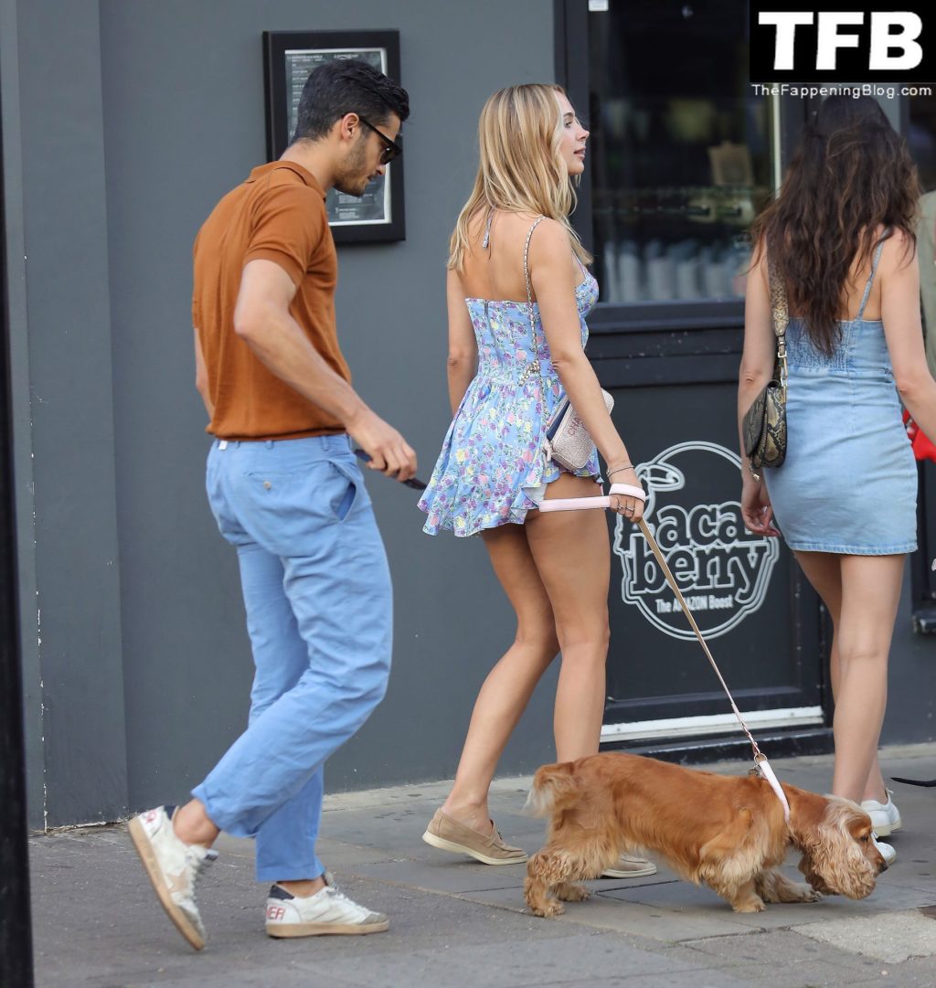 A ex-estrela de “Made In Chelsea” usava um vestido azul de verão, que era bastante curto, fazendo com que ela mostrasse seu bumbum.