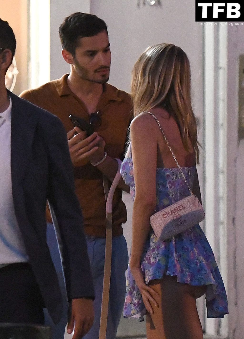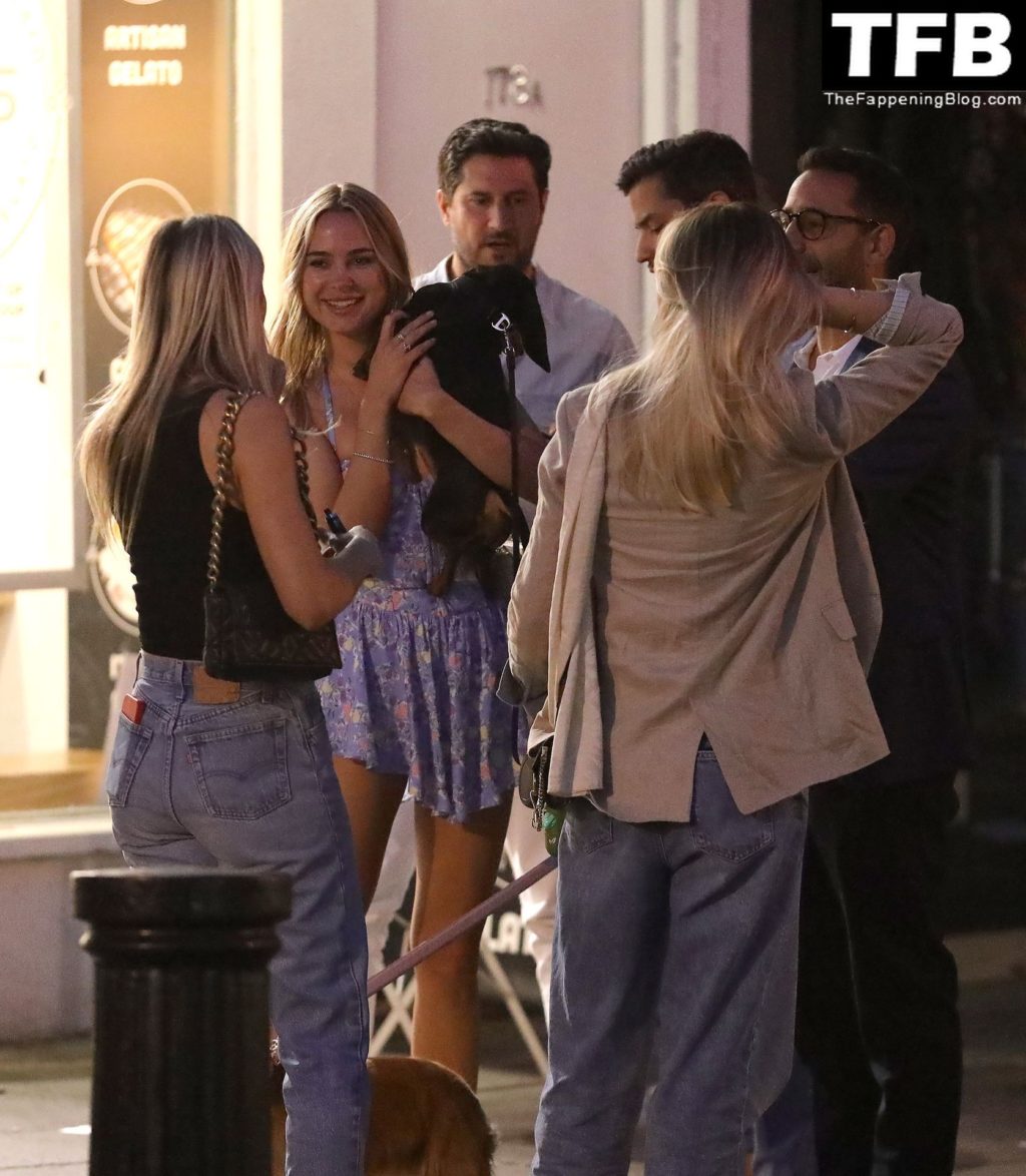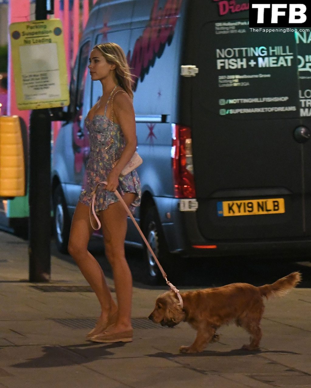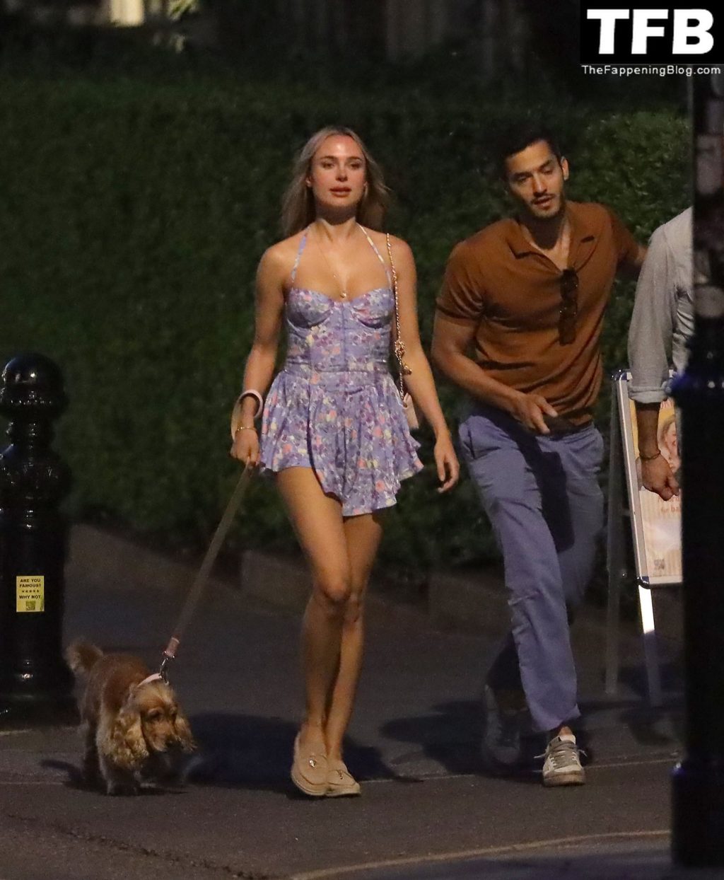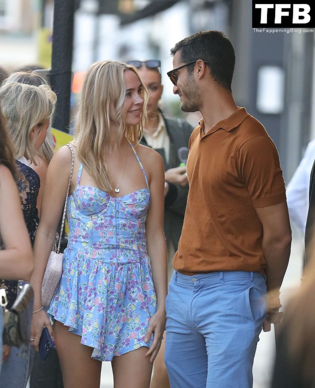 A ex-estrela de “Made In Chelsea” usava um vestido azul de verão, que era bastante curto, fazendo com que ela mostrasse seu bumbum.
