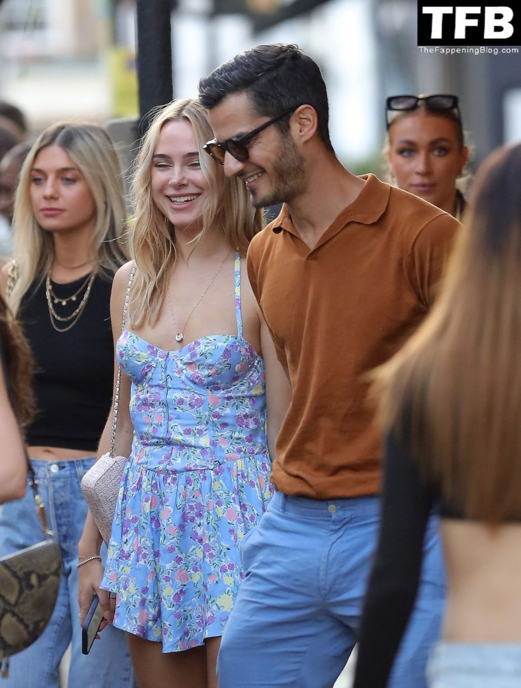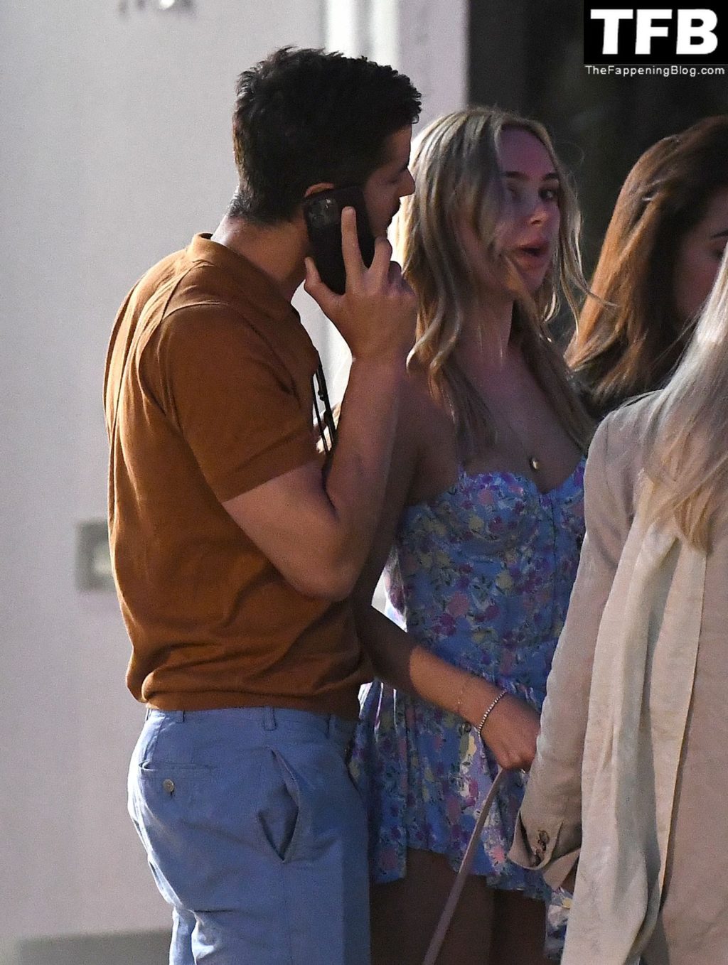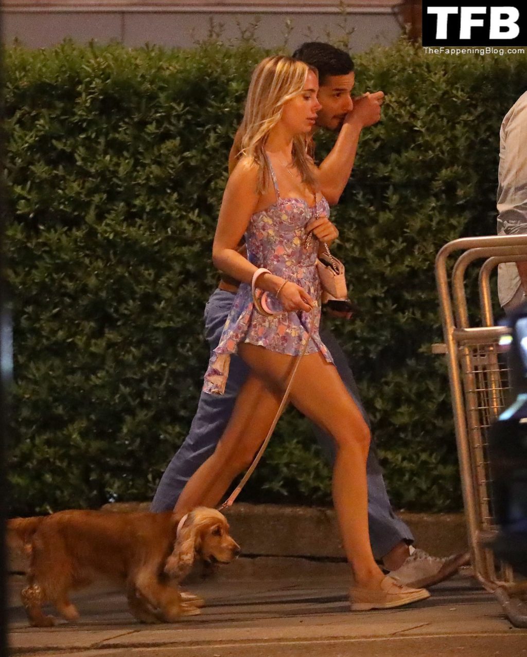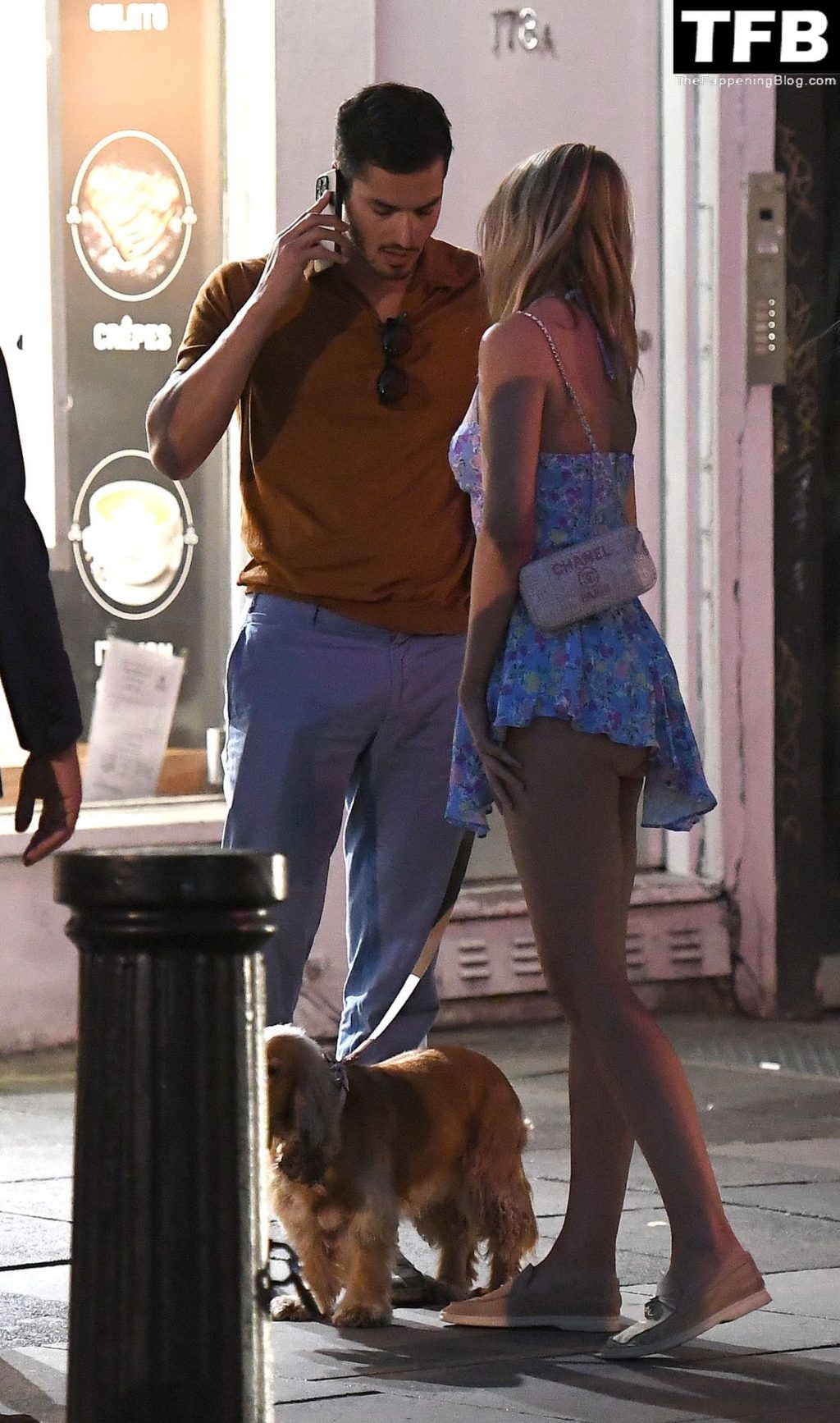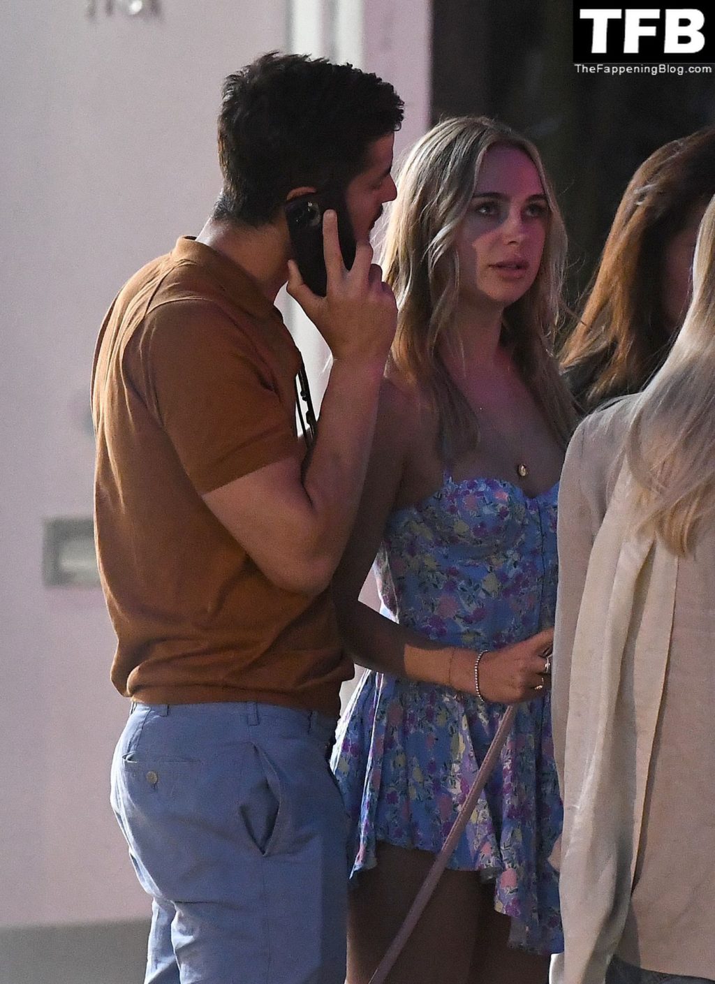 A ex-estrela de “Made In Chelsea” usava um vestido azul de verão, que era bastante curto, fazendo com que ela mostrasse seu bumbum.