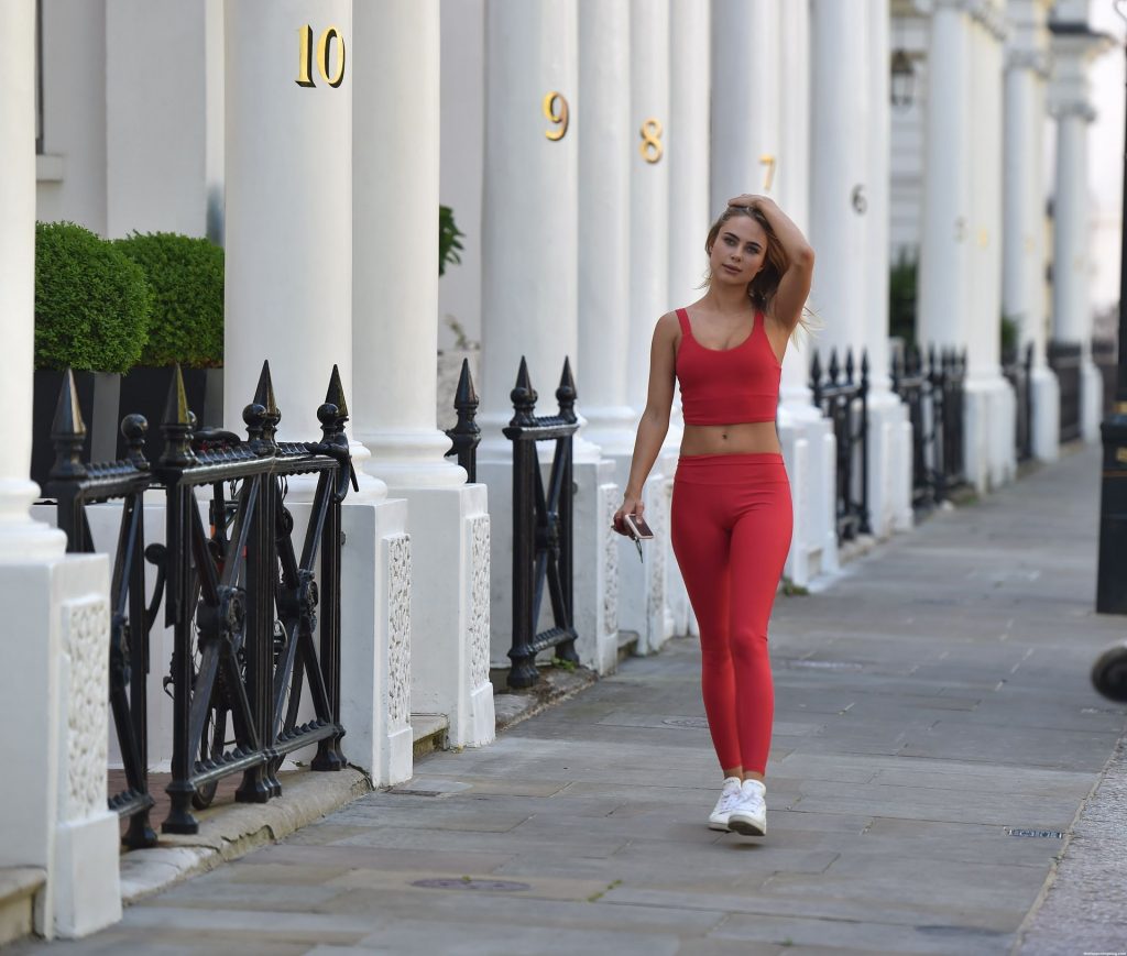 A modelo de biquíni Kimberley Garner é vista de volta a Londres após estar de férias permanentes durante todo o período de lockdown, 14/06/2021. Kimberley foi vista dirigindo o Ferrari azul do papai em um quente dia de verão em Chelsea.
