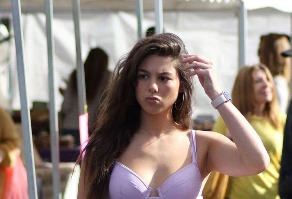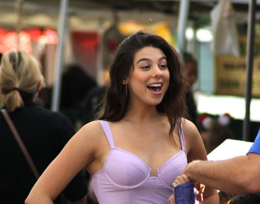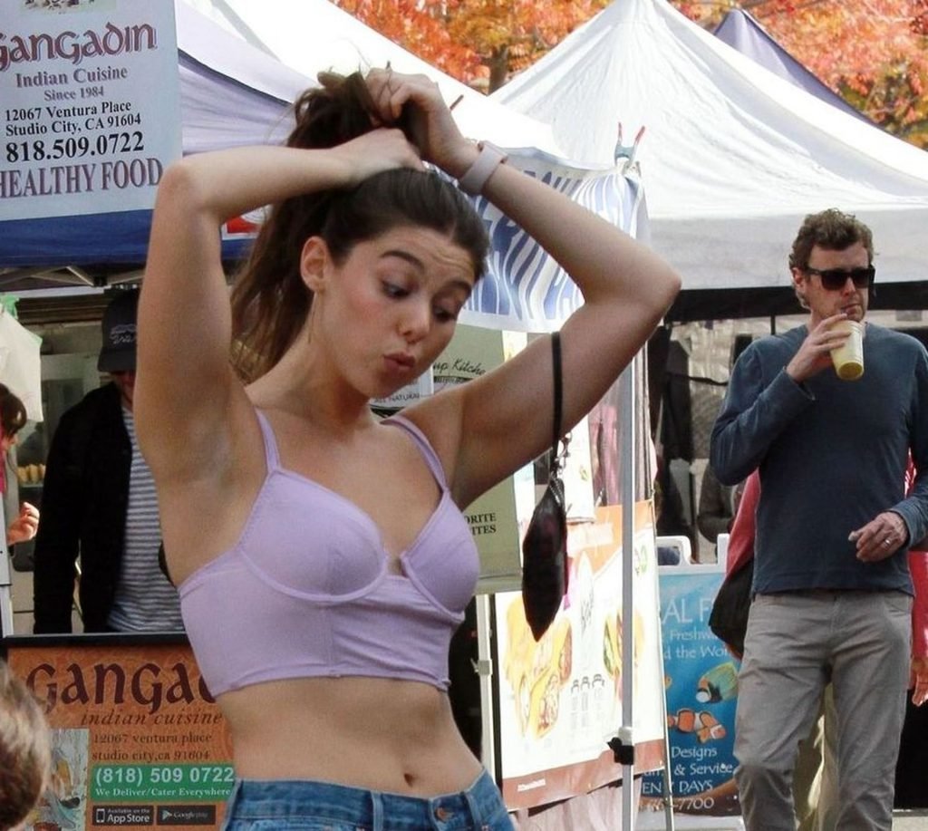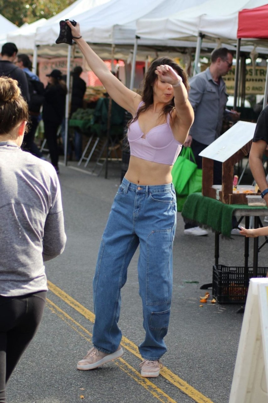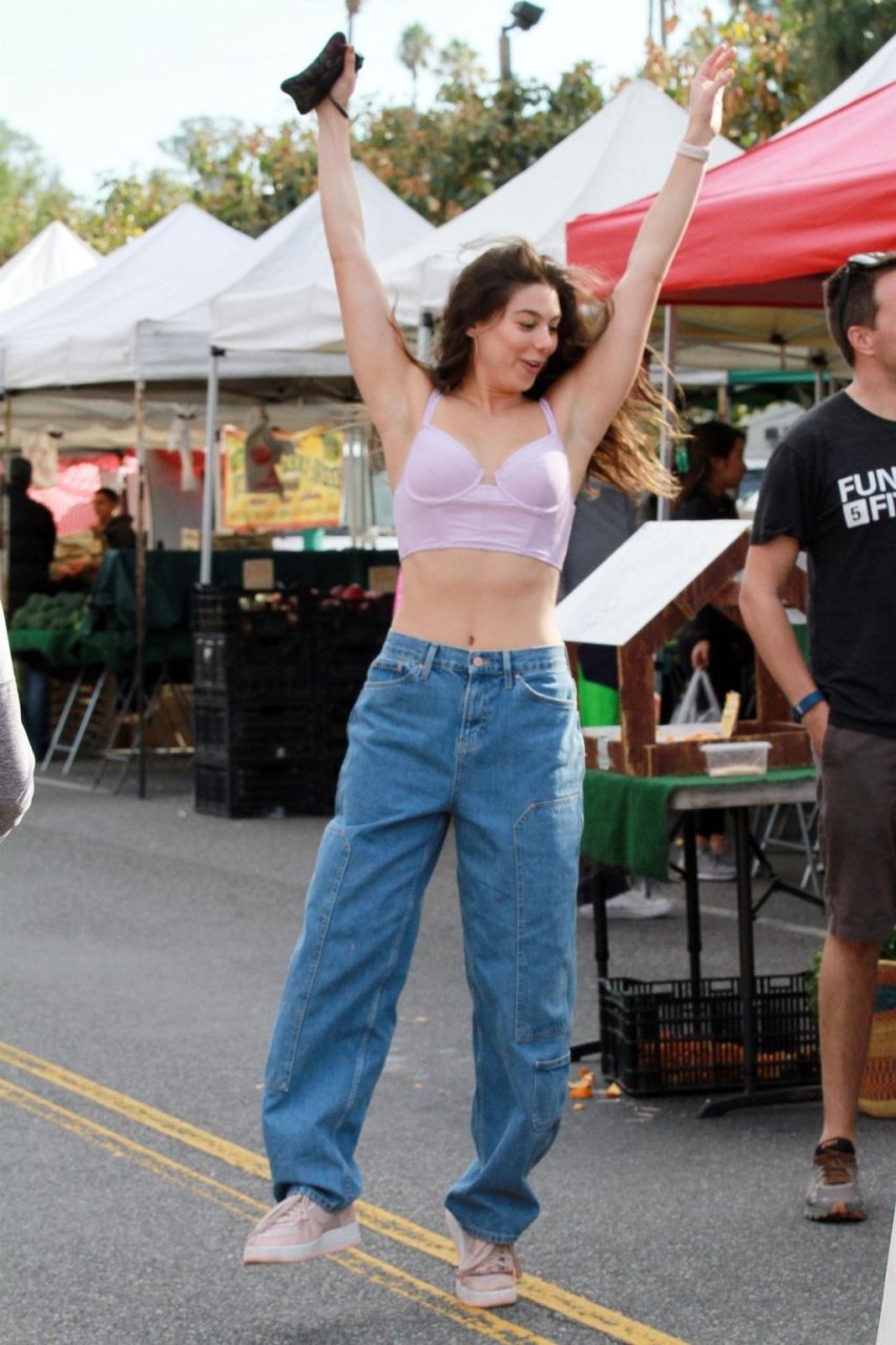 A atriz Kira Kosarin exibe seu físico em forma enquanto faz compras no Farmer’s Market em Studio City, 16/12/2018. Kira está ótima com um top de sutiã corset lilás, jeans de perna larga e tênis.