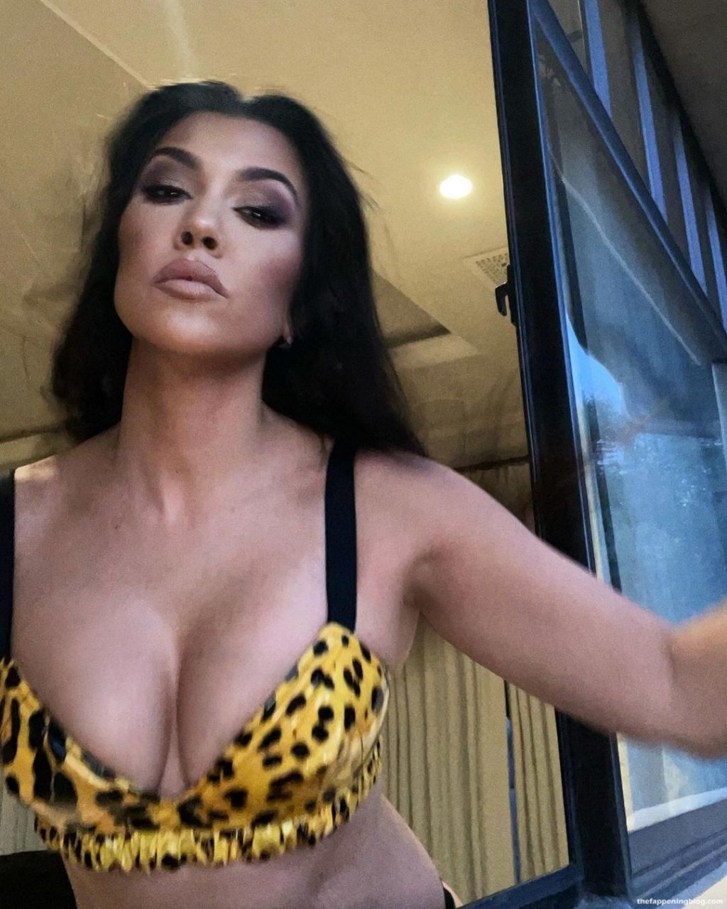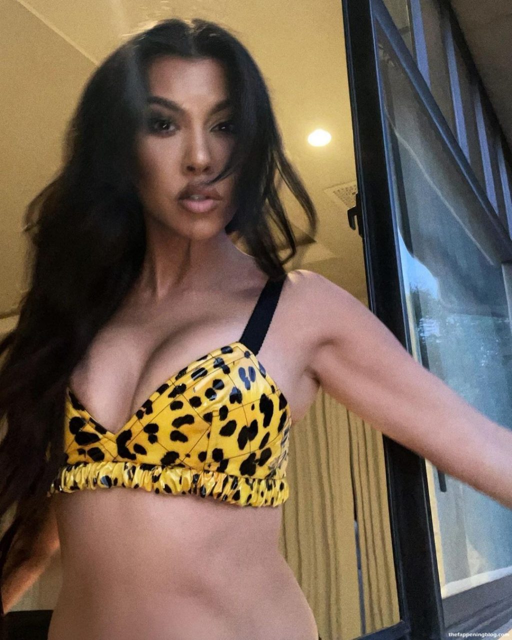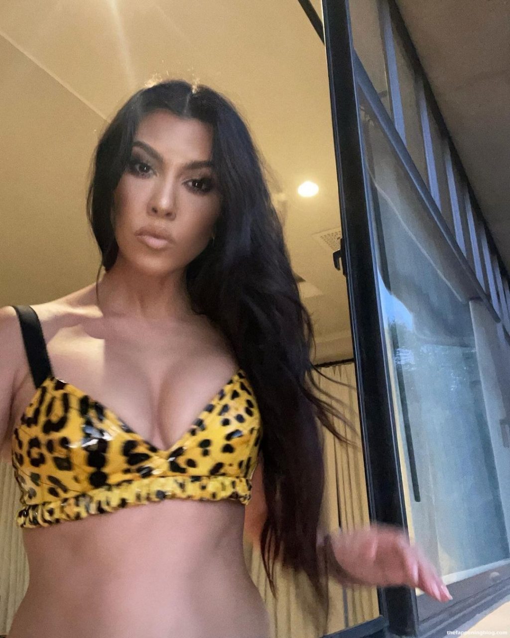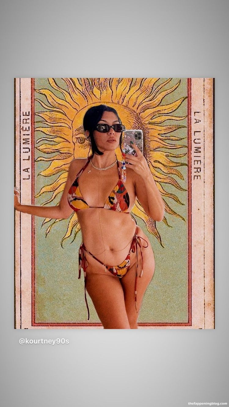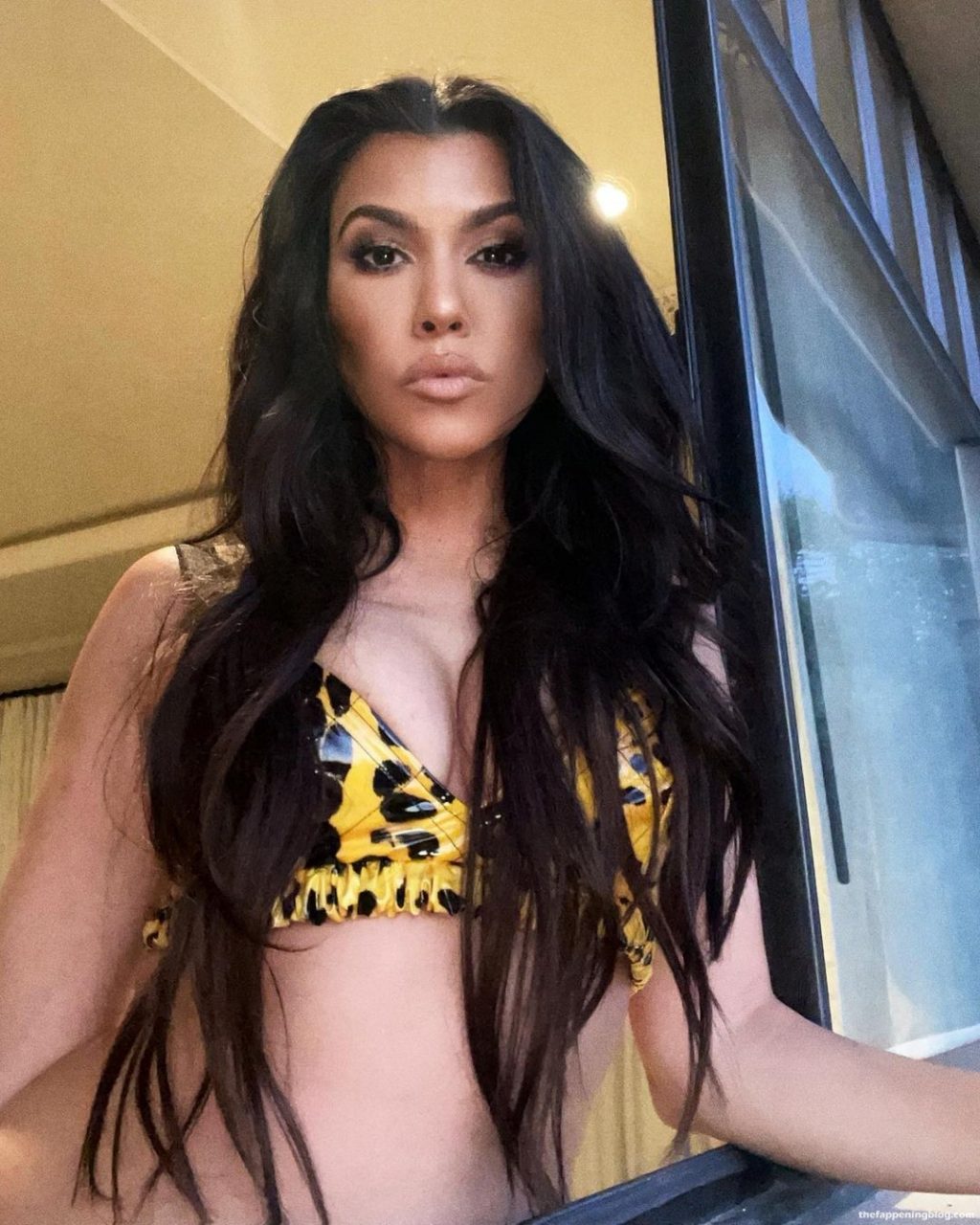 Reality TV star Kourtney Kardashian mostra um belo decote e exibe os seios, vestindo um biquíni enquanto posa para seus seguidores no Instagram, 20/08/2021.