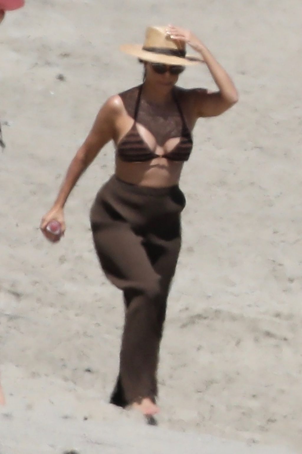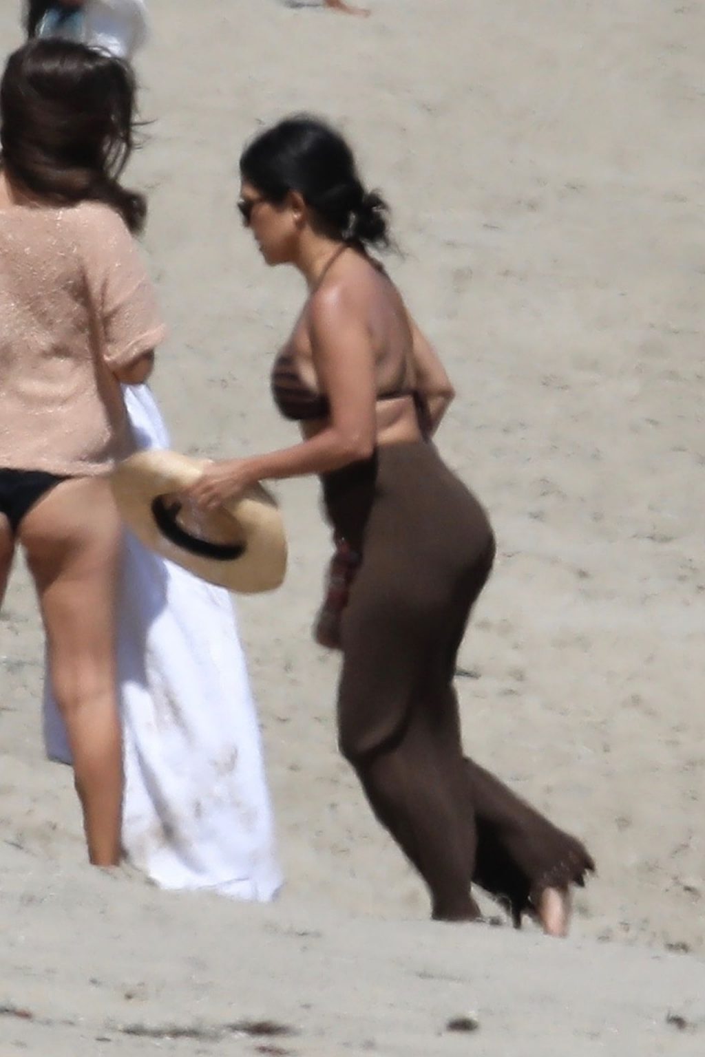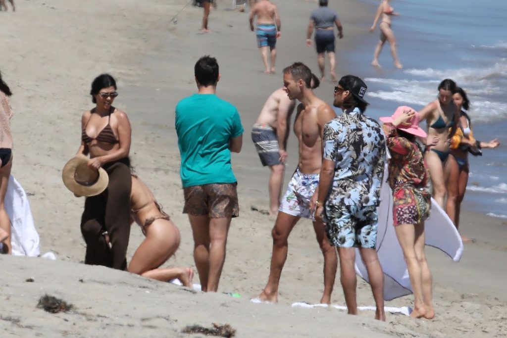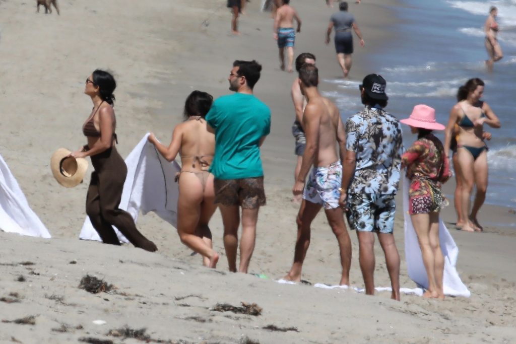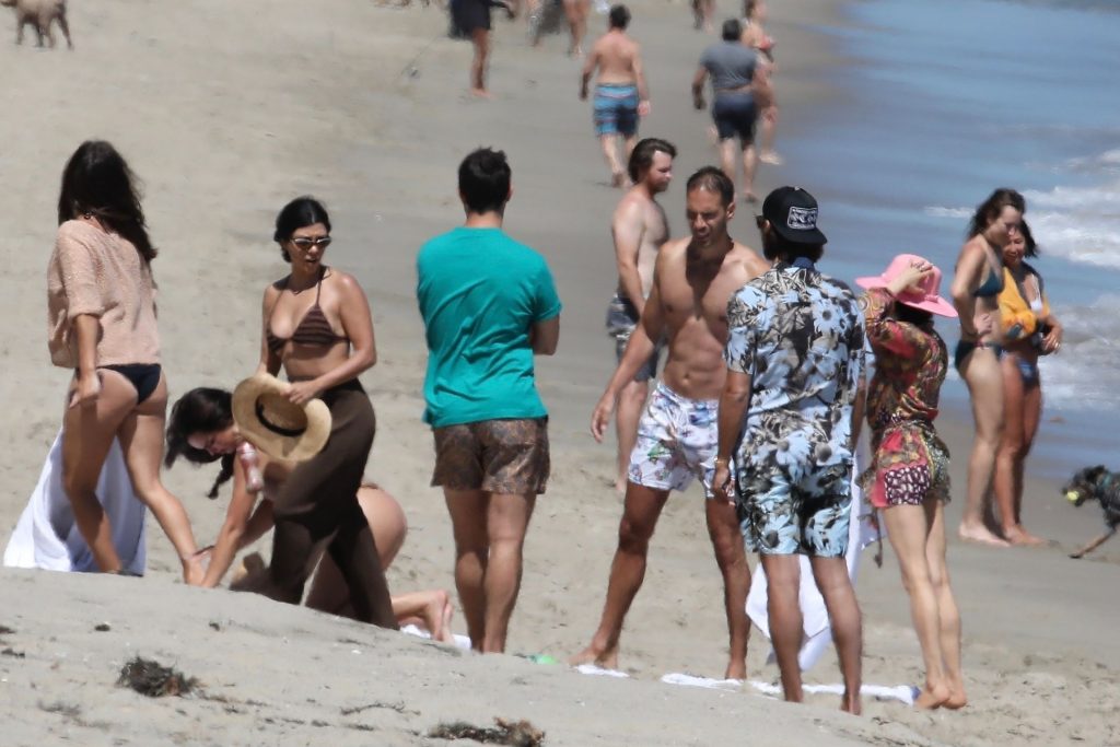 Kourtney Kardashian e o ex Scott Disick aproveitam um dia em família na praia com seus filhos e amigos em Malibu, 18/07/2020.