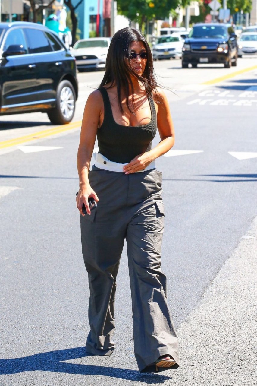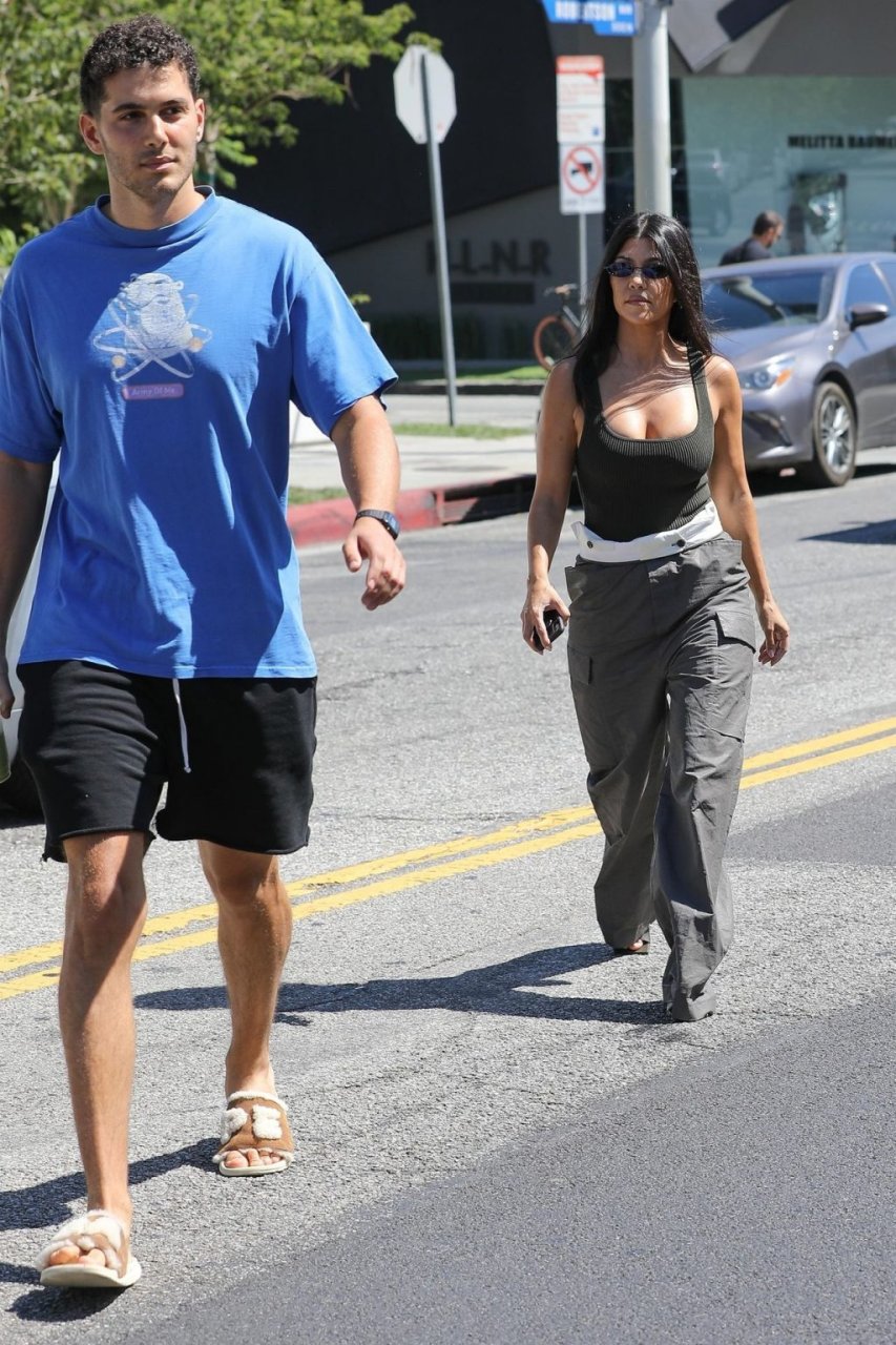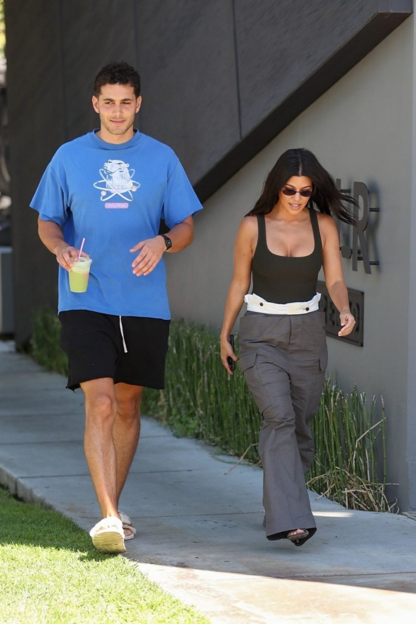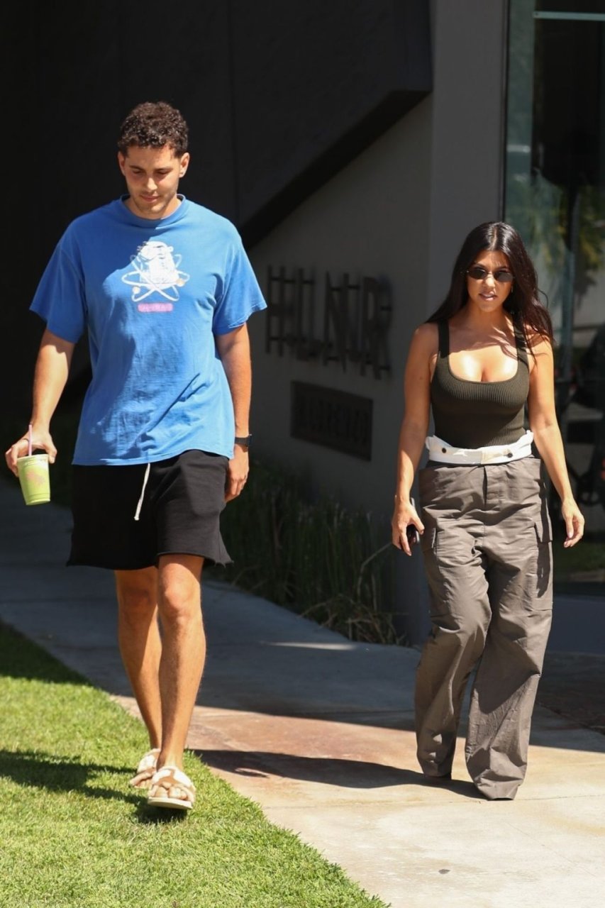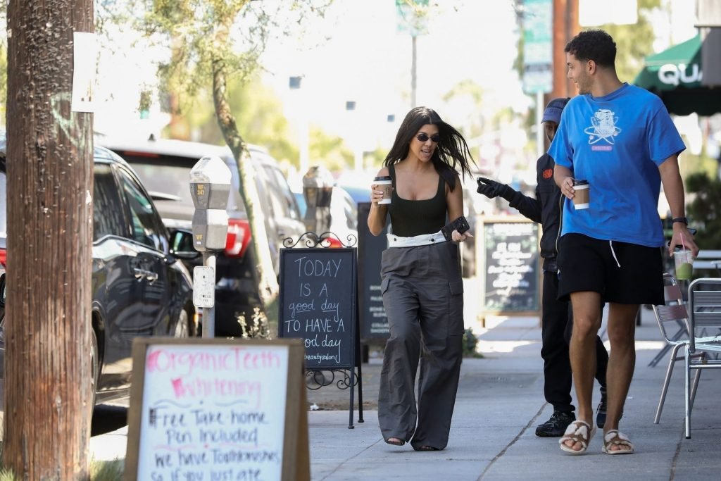 Estrela de reality show, modelo e mãe atraente Kourtney Kardashian sai em West Hollywood para um Matcha com a modelo e melhor amiga Kardashian, Fai Khadra, 12/09/2019. Kourtney usa uma regata decotada que revela seu físico voluptuoso!