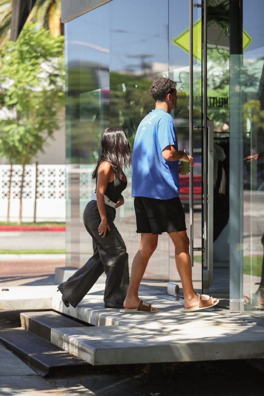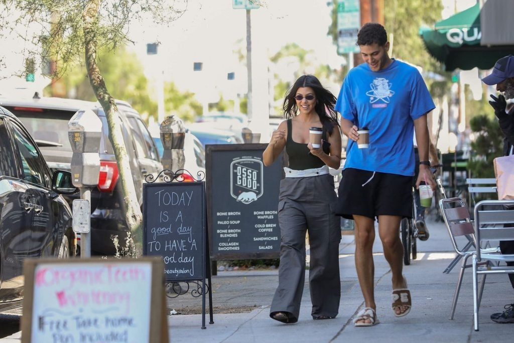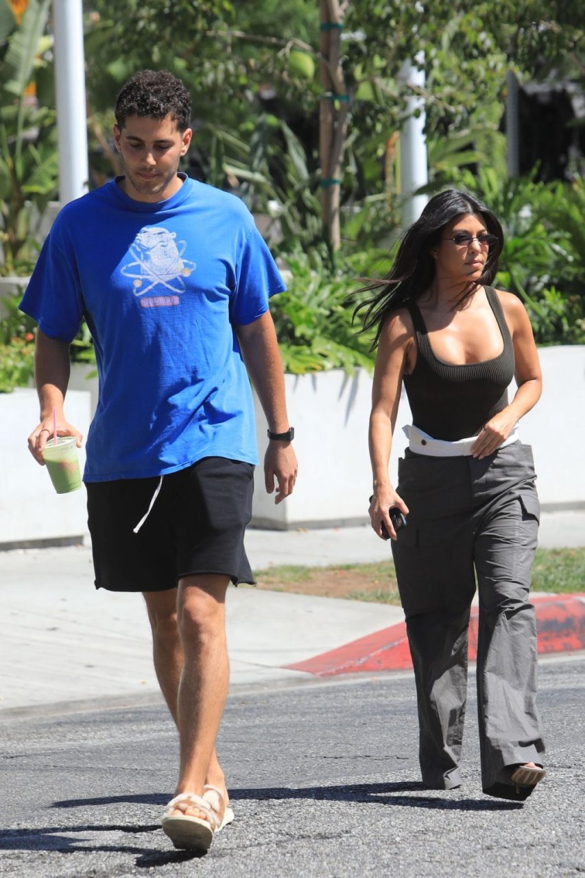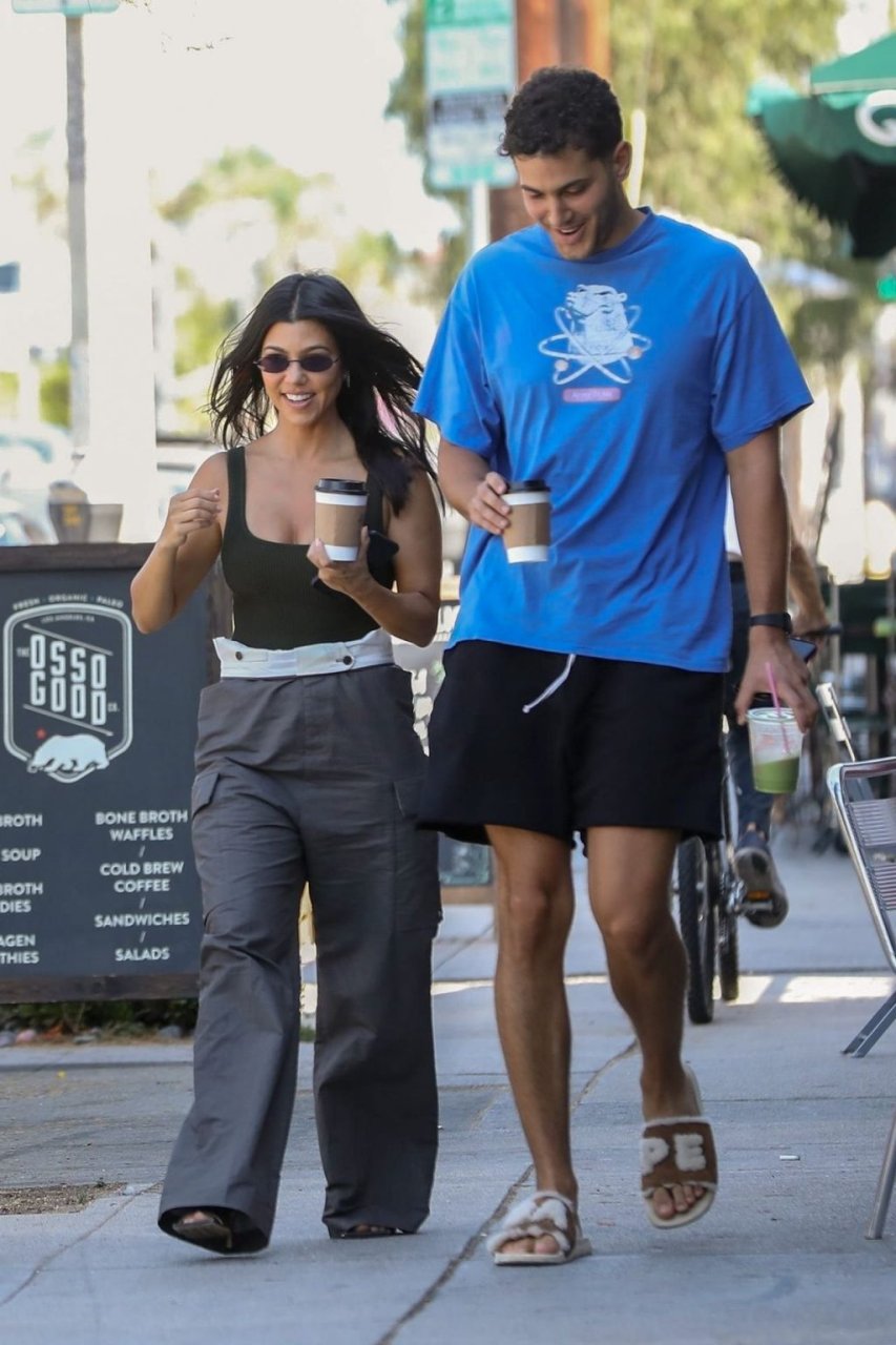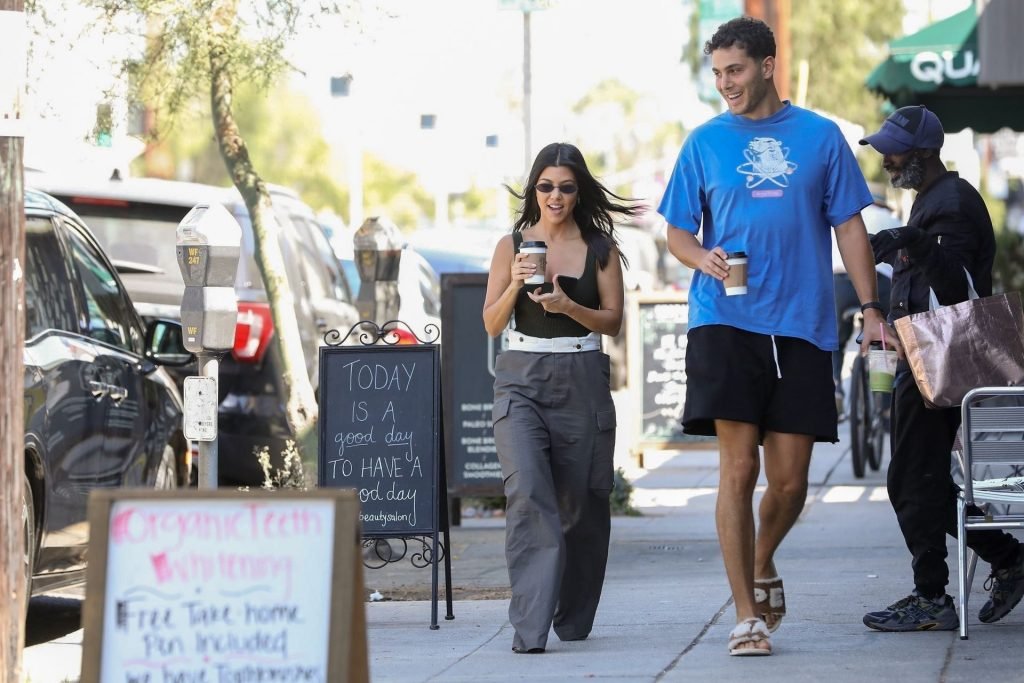 Estrela de reality show, modelo e mãe atraente Kourtney Kardashian sai em West Hollywood para um Matcha com a modelo e melhor amiga Kardashian, Fai Khadra, 12/09/2019. Kourtney usa uma regata decotada que revela seu físico voluptuoso!
