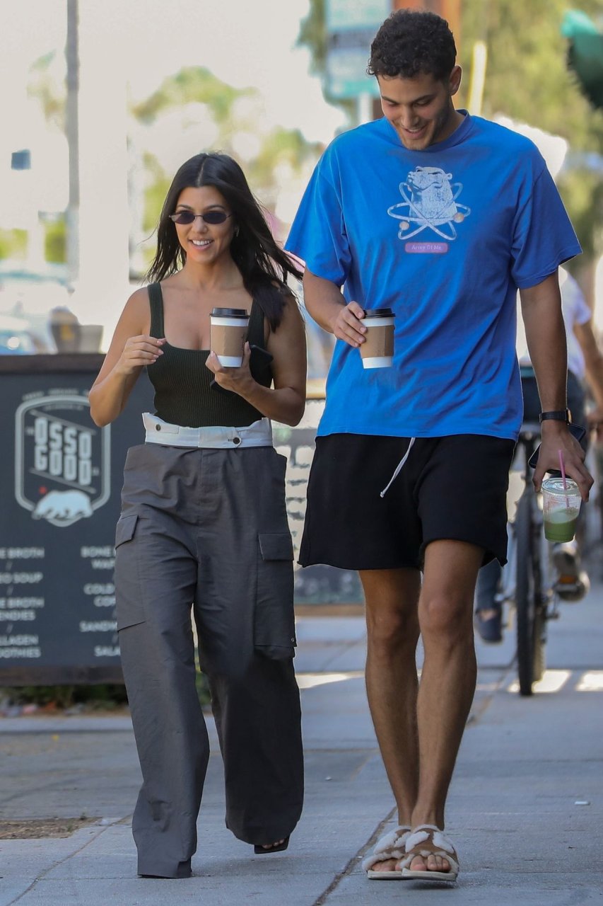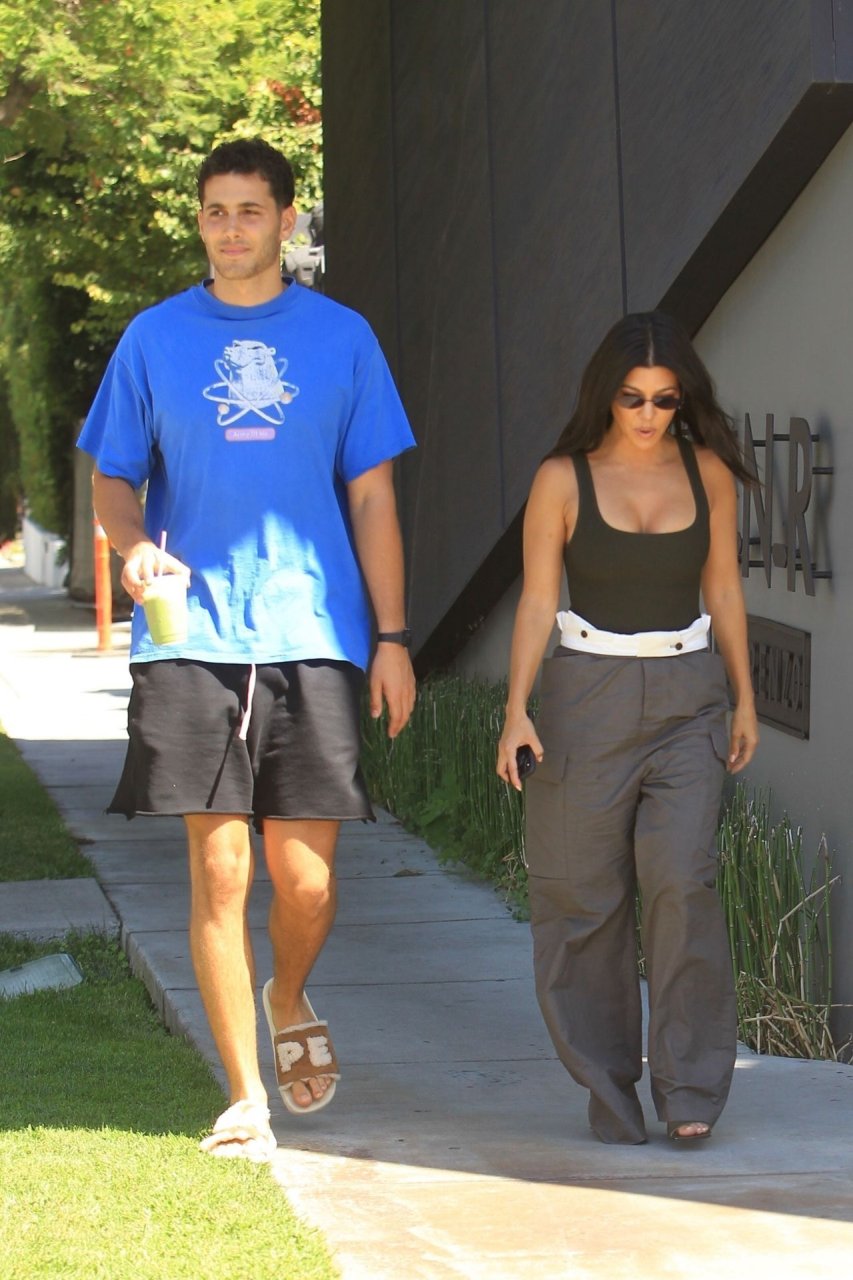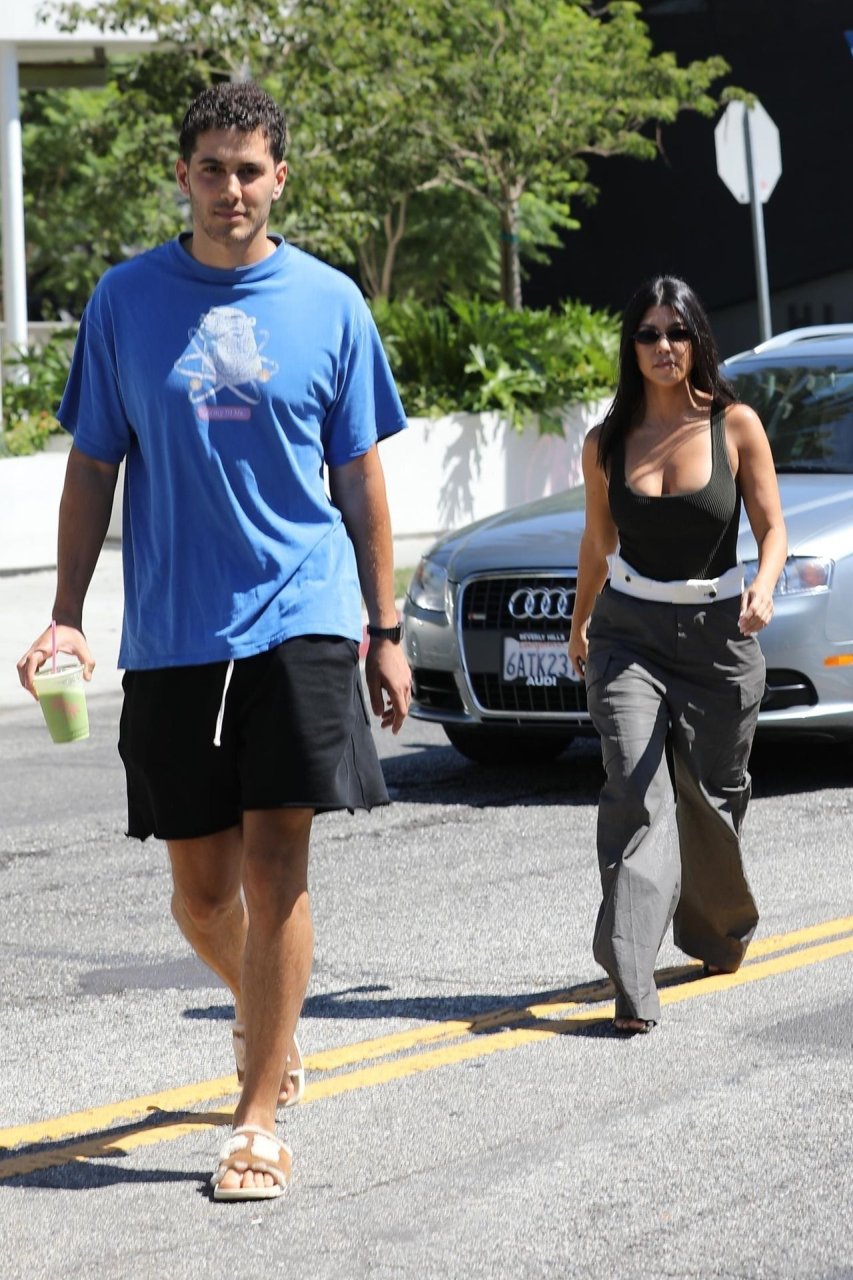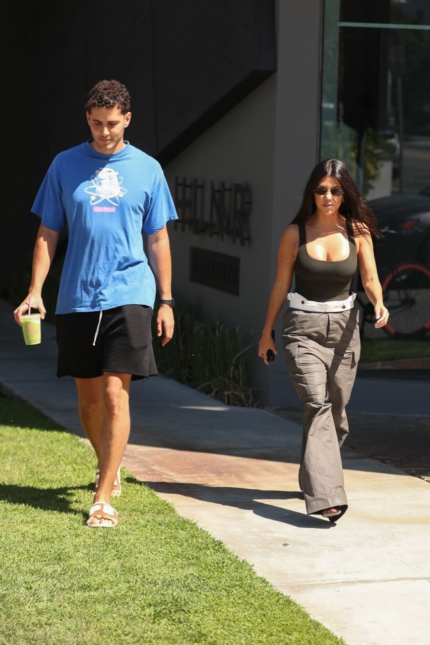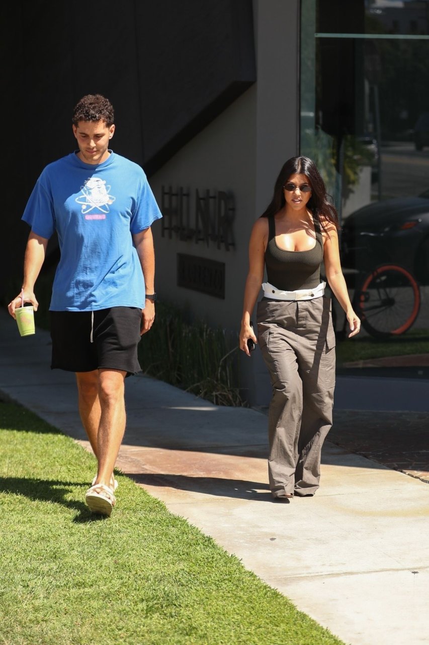 Estrela de reality show, modelo e mãe atraente Kourtney Kardashian sai em West Hollywood para um Matcha com a modelo e melhor amiga Kardashian, Fai Khadra, 12/09/2019. Kourtney usa uma regata decotada que revela seu físico voluptuoso!