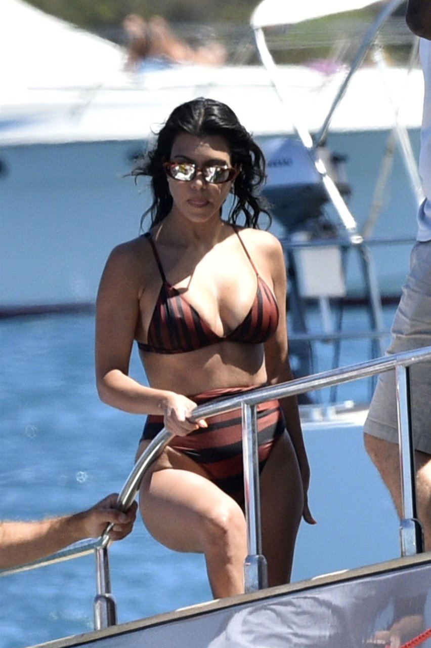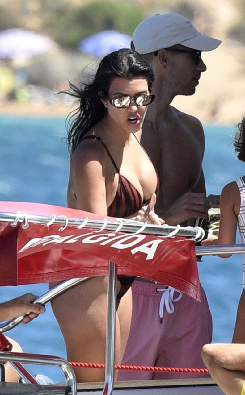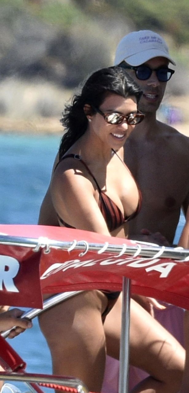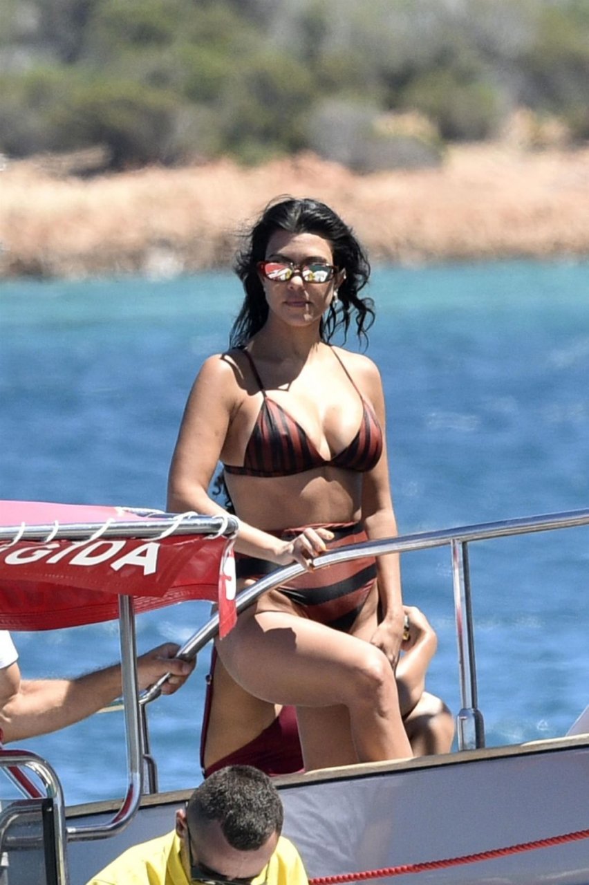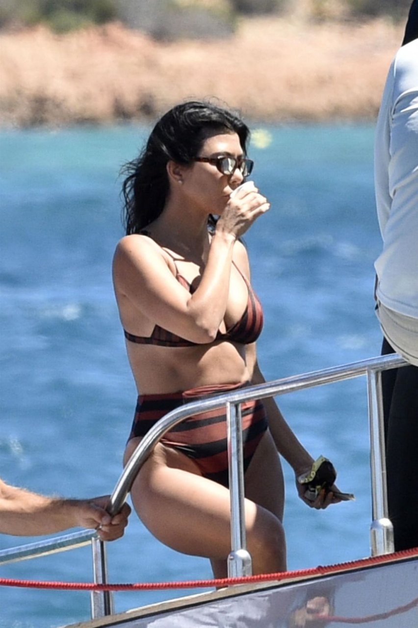 Kourtney Kardashian fez sua próxima parada em sua turnê de verão na ilha italiana da Sardenha, onde a mãe sexy exibiu seu corpo quente usando outro deslumbrante biquíni, 30/07/2019.