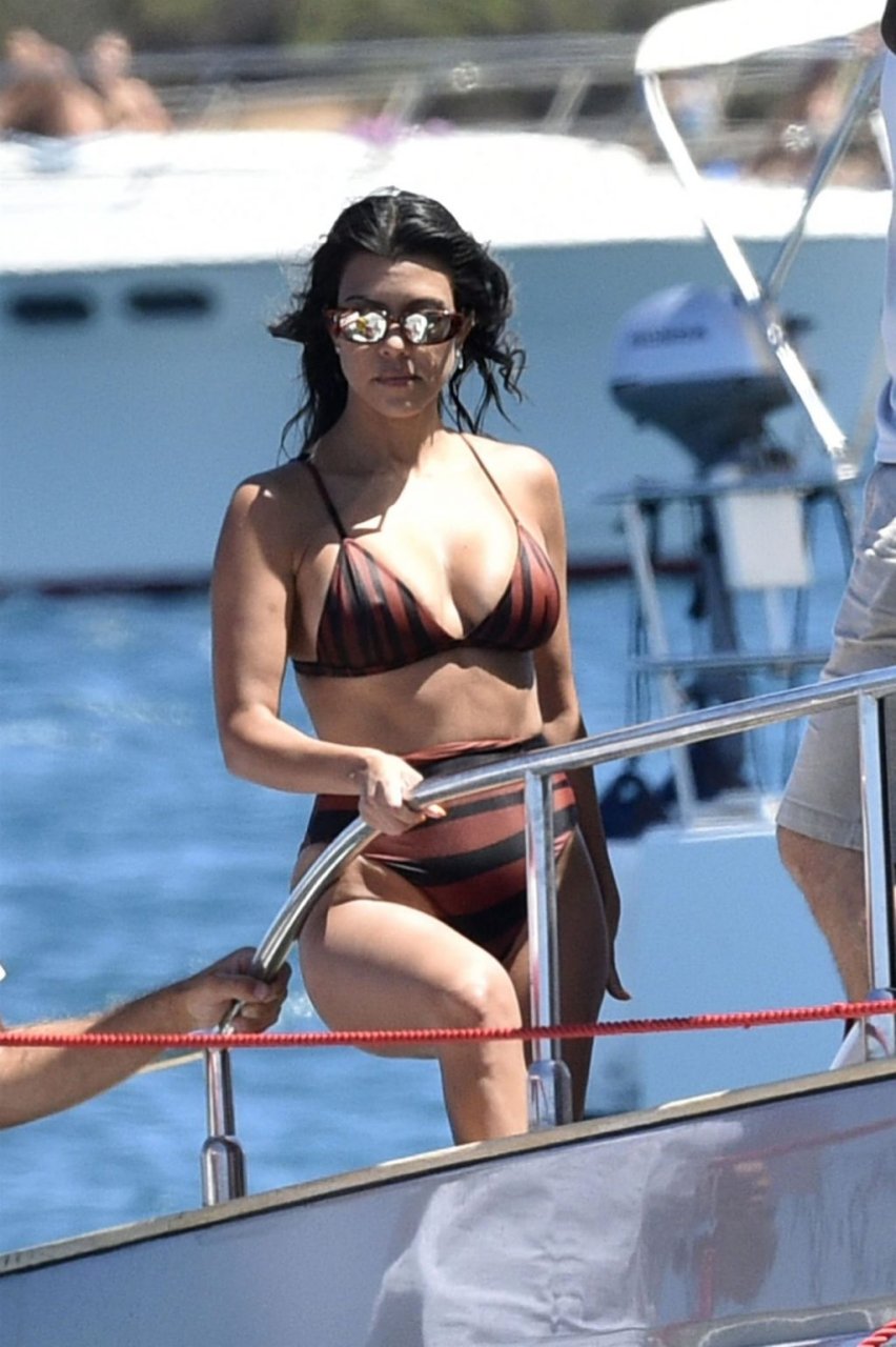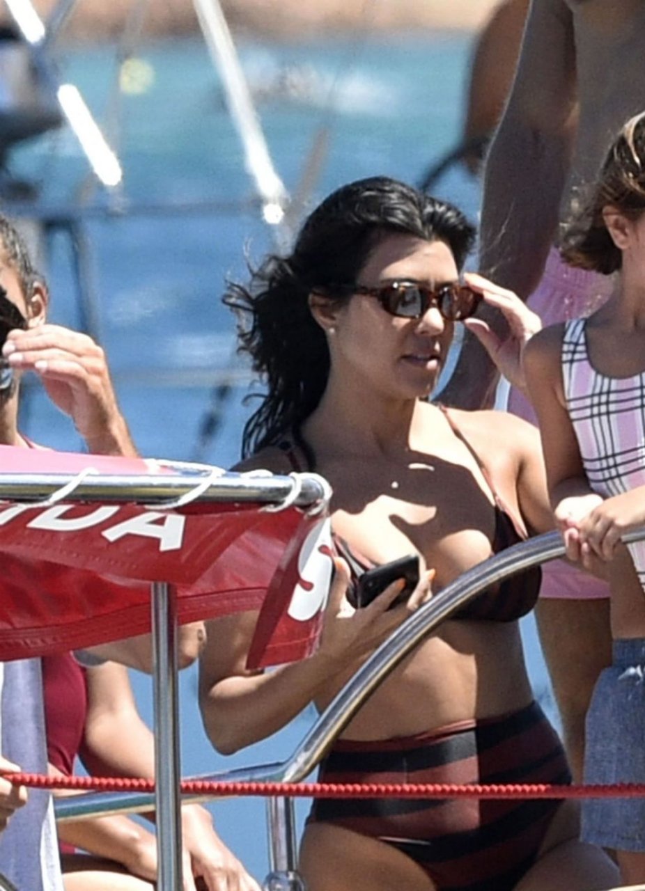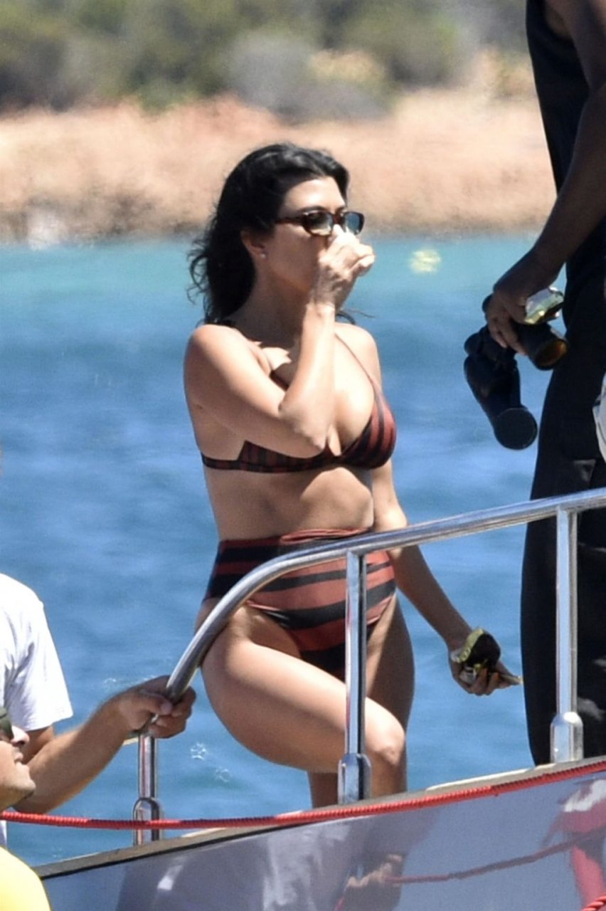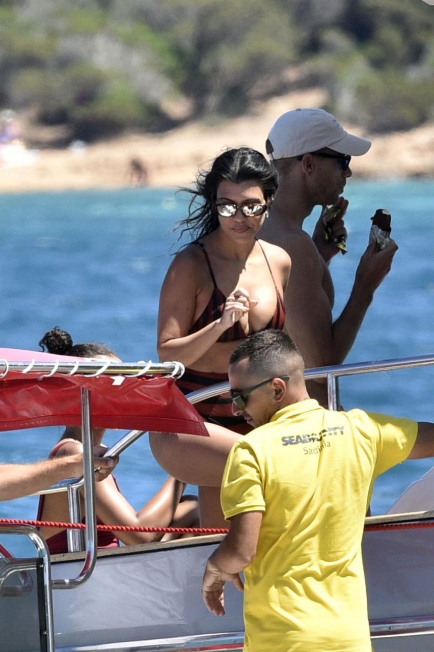 Kourtney Kardashian fez sua próxima parada em sua turnê de verão na ilha italiana da Sardenha, onde a mãe sexy exibiu seu corpo quente usando outro deslumbrante biquíni, 30/07/2019.