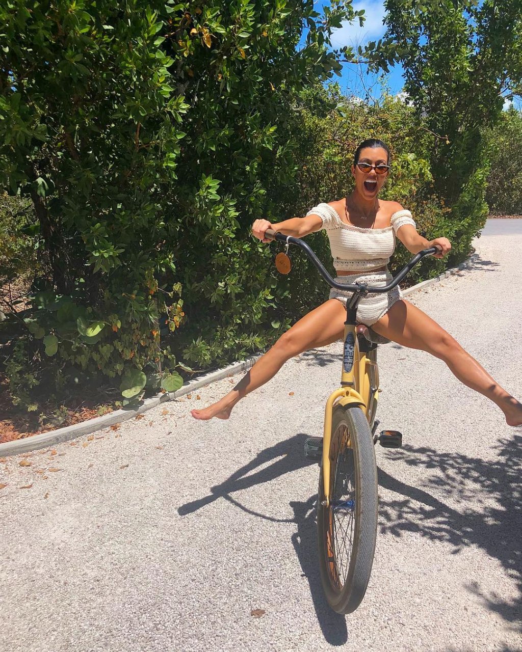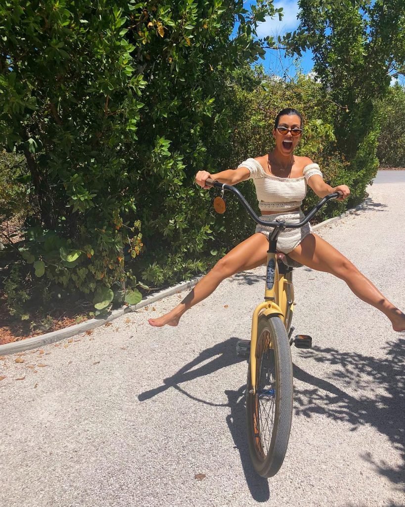 Kourtney Kardashian usa um biquíni sexy dourado laranja na praia em Turks & Caicos – Instagram, 09/04/2018. Kourtney Kardashian é uma estrela de reality show, atriz de TV, modelo, socialite. Idade – 38.