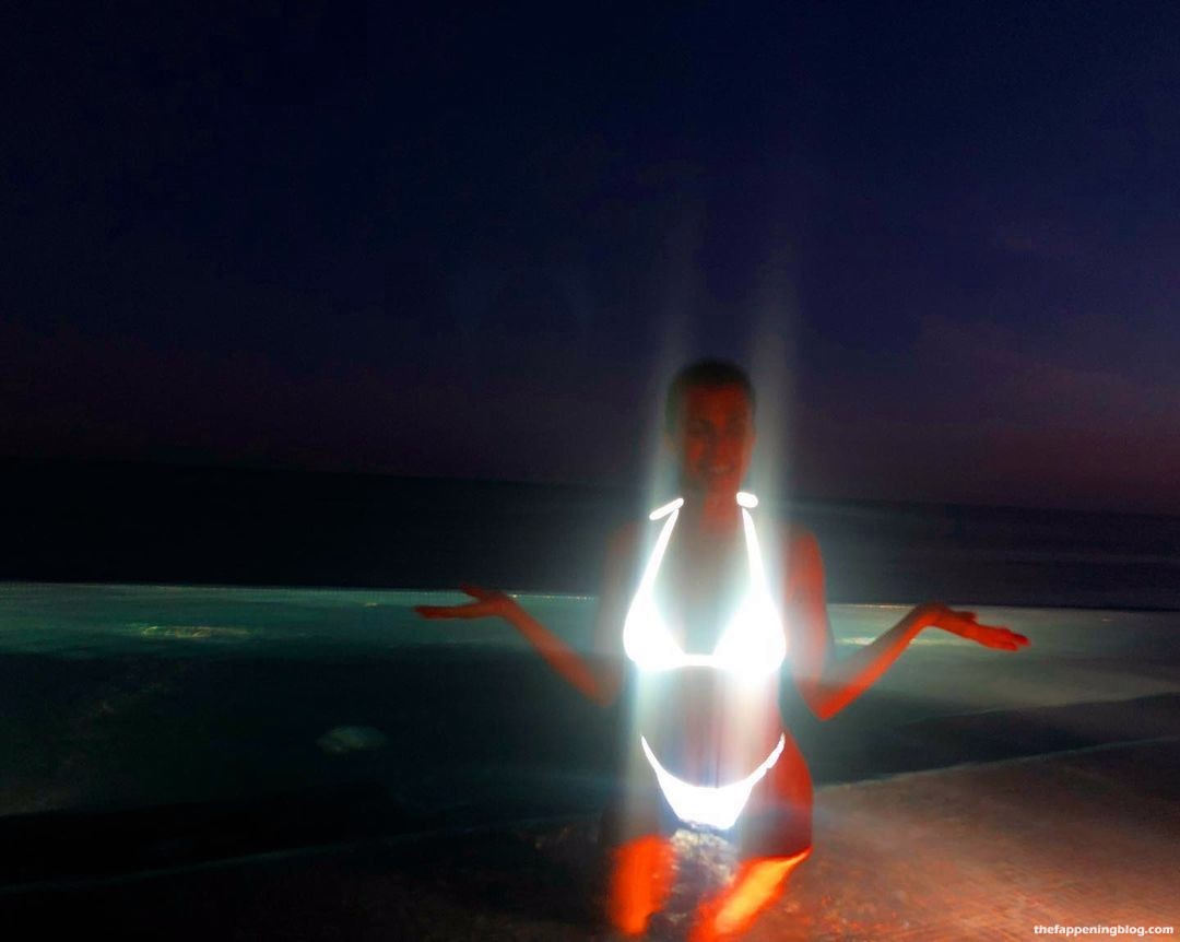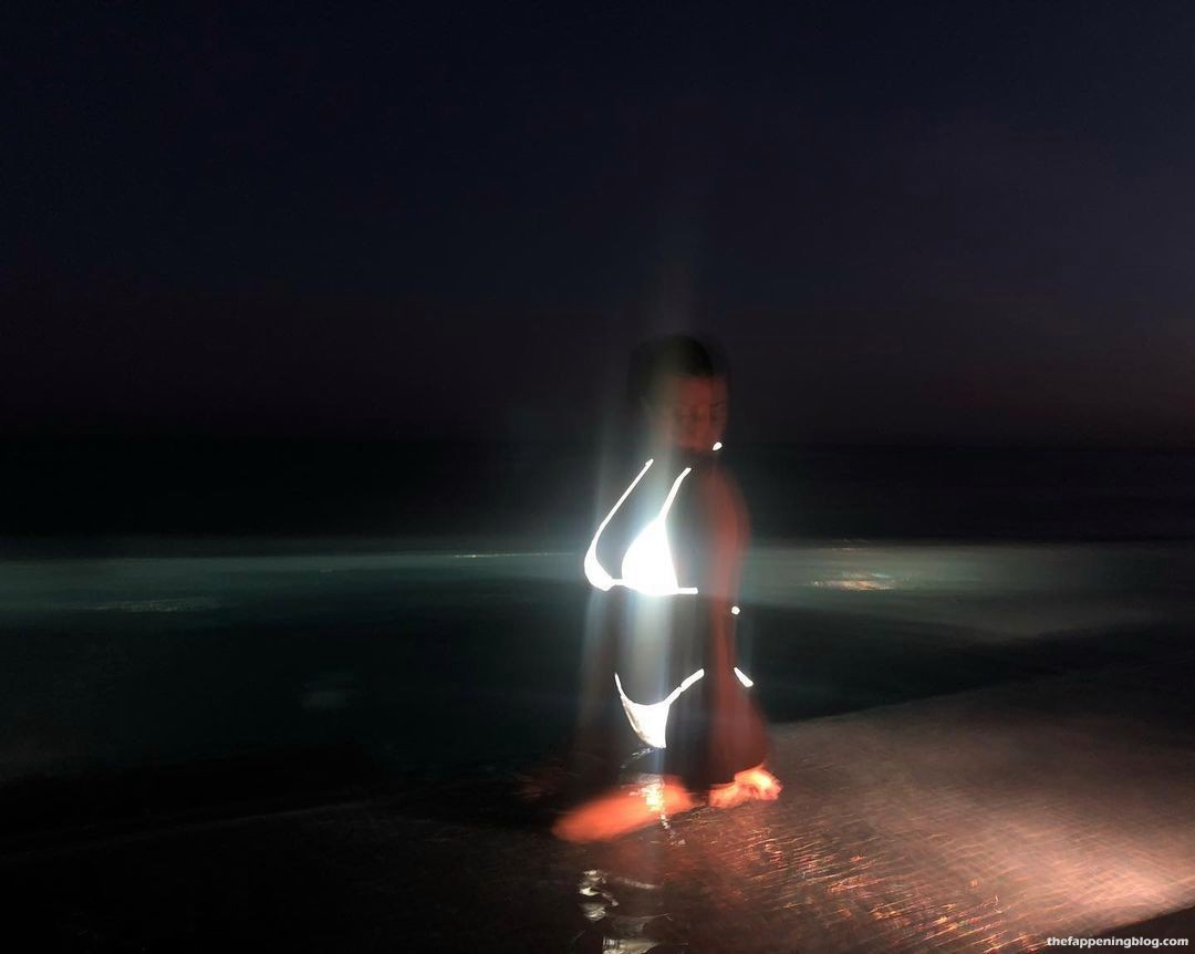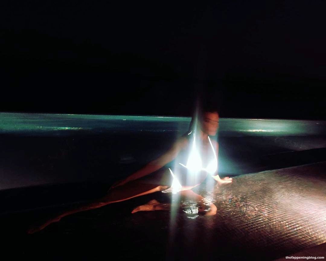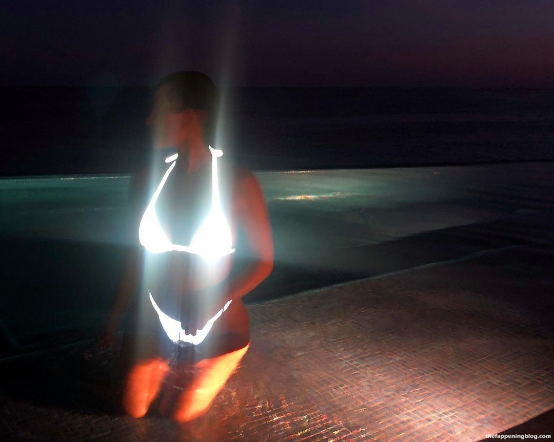 A estrela de reality show Kourtney Kardashian posa com um biquíni brilhante na piscina, exibindo suas curvas famosas – Instagram, 28/07/2021.