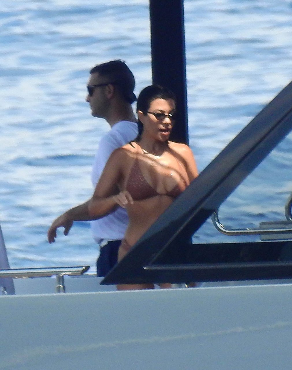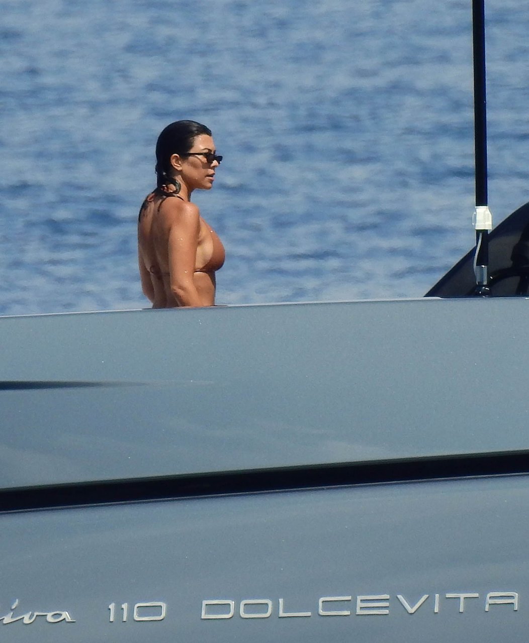 Kourtney Kardashian está se divertindo em um iate em Portofino, 07/08/2018. A estrela de reality show de 39 anos, Kourtney Kardashian, foi para a Itália com seu namorado, o boxeador e modelo de 25 anos Younes Bendjima.