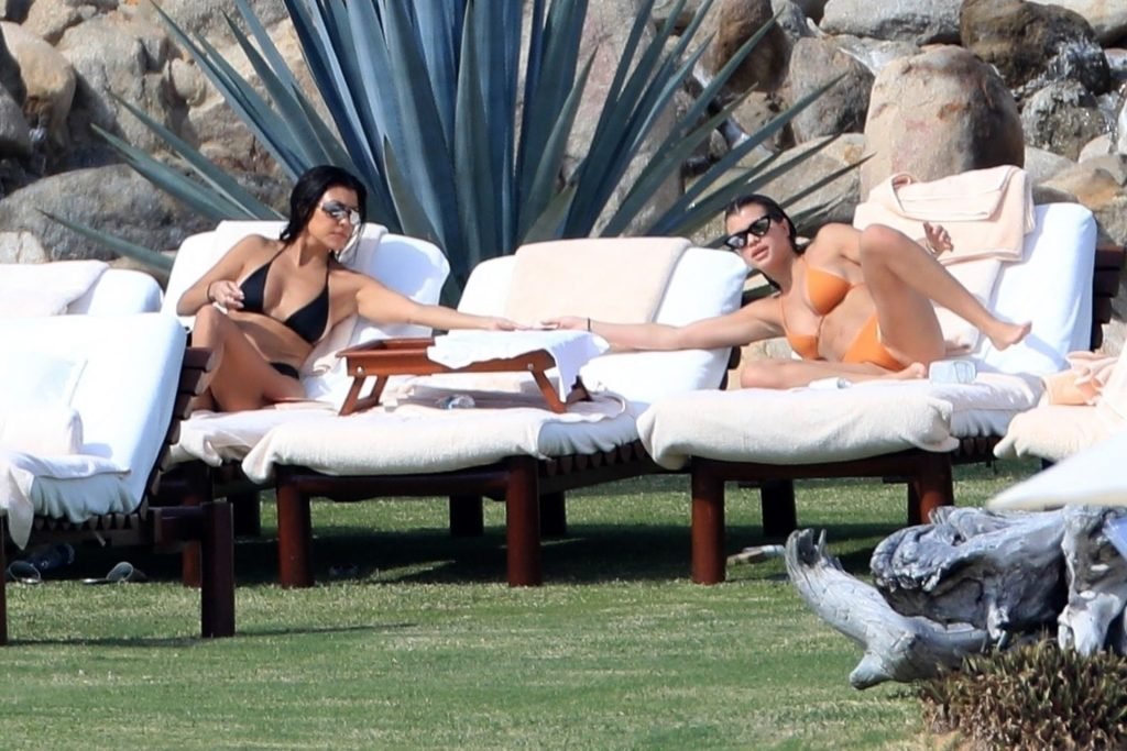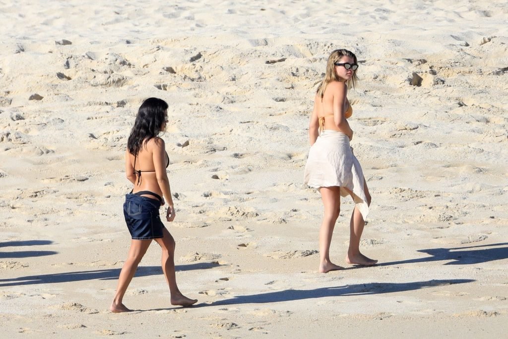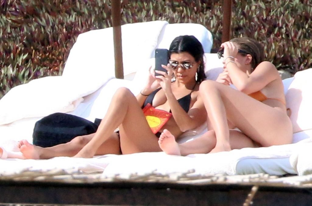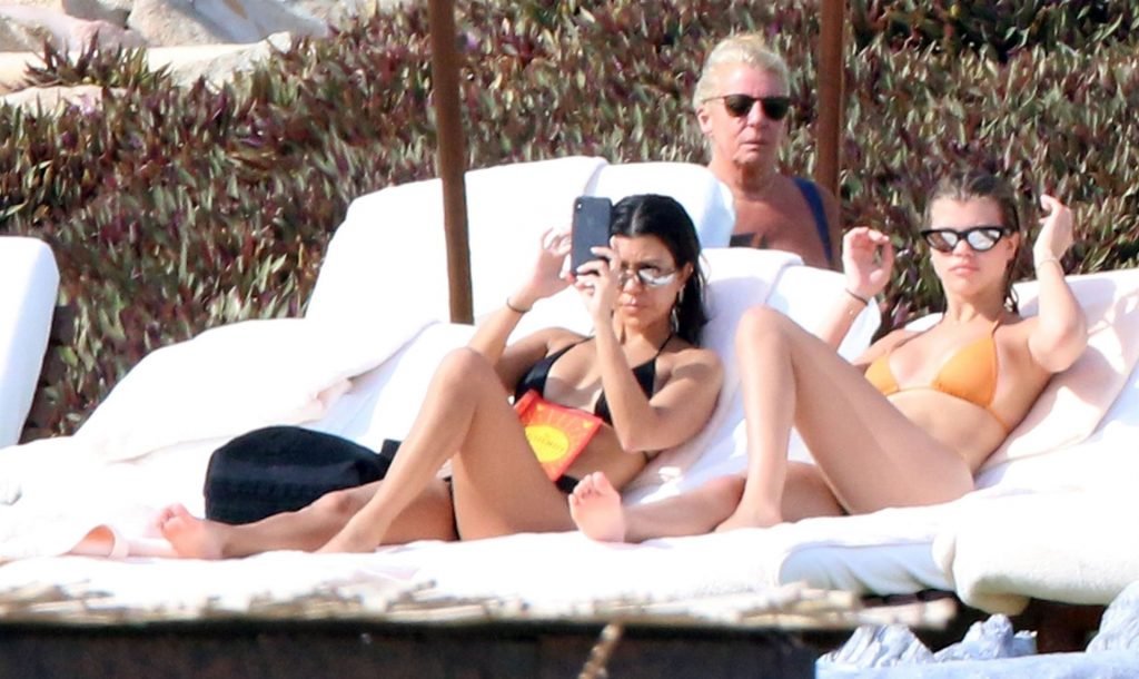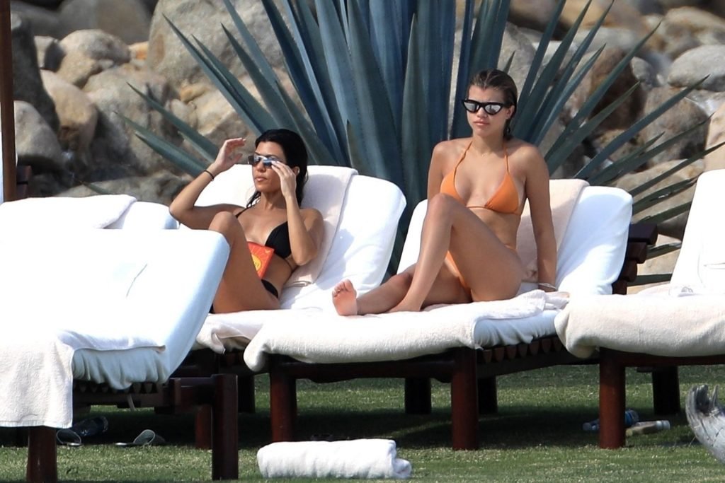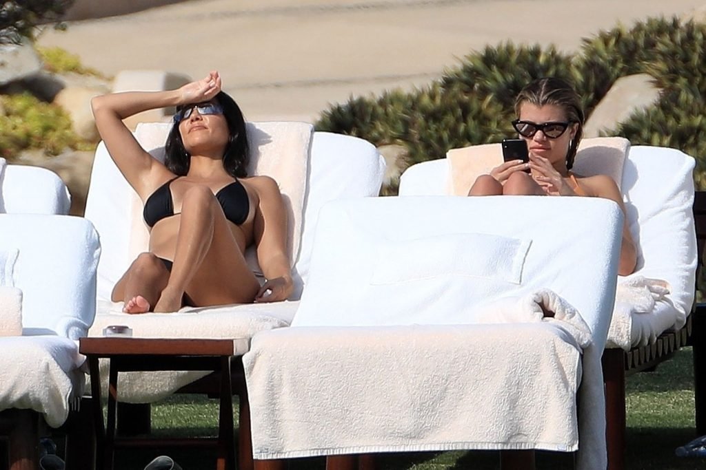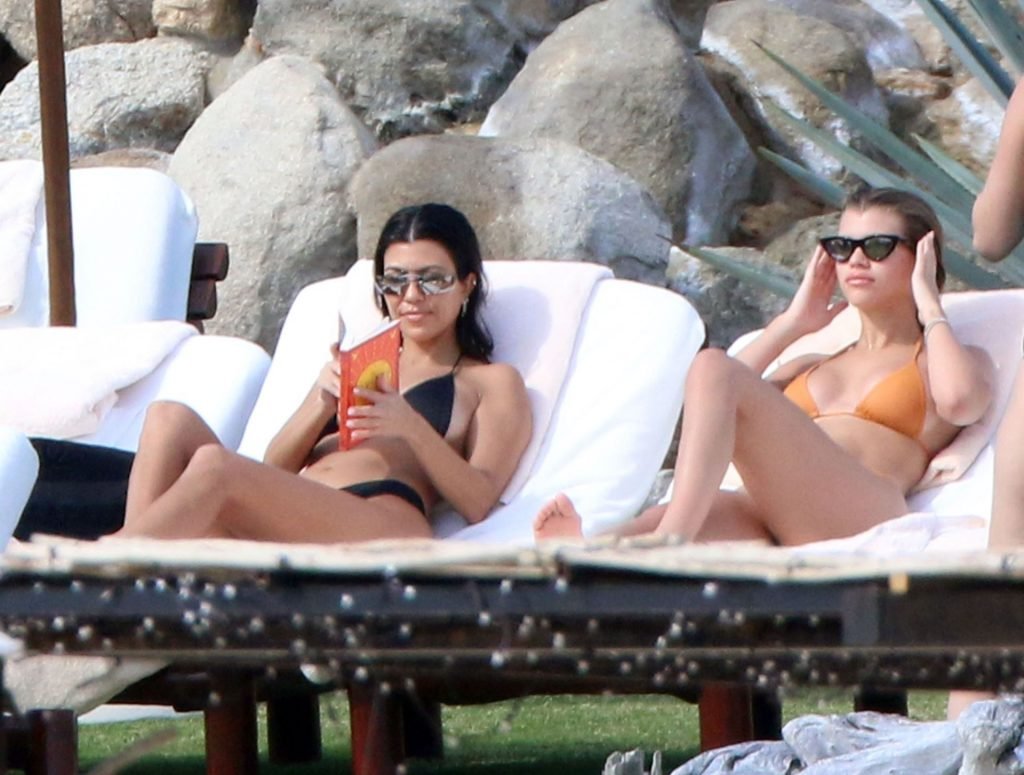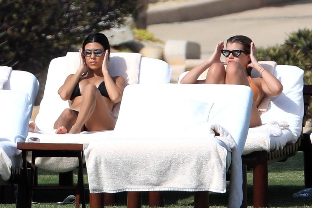 As belas Kourtney Kardashian e Sofia Richie conversam alegremente enquanto aproveitam o sol, junto com o namorado de Sofia, Scott Disick, que também é ex de Kourtney. Sofia deslumbrava em um biquíni tangerina mínimo, enquanto Kourtney mostrava sua figura fabulosa em um biquíni preto.