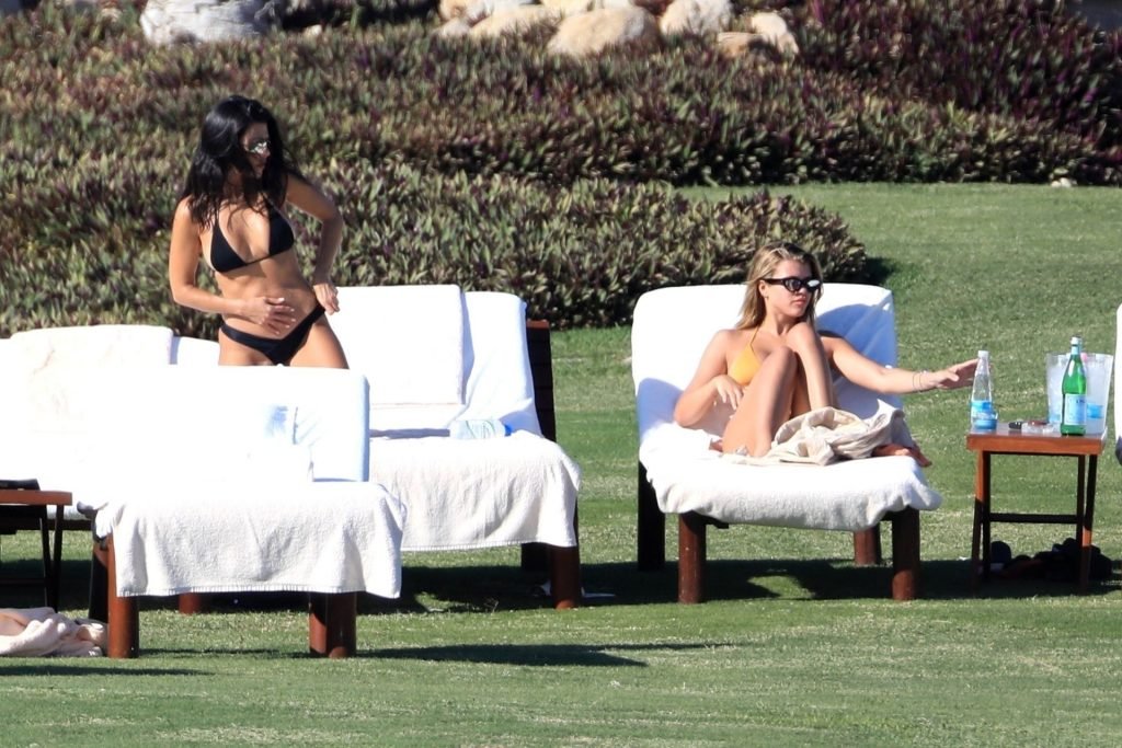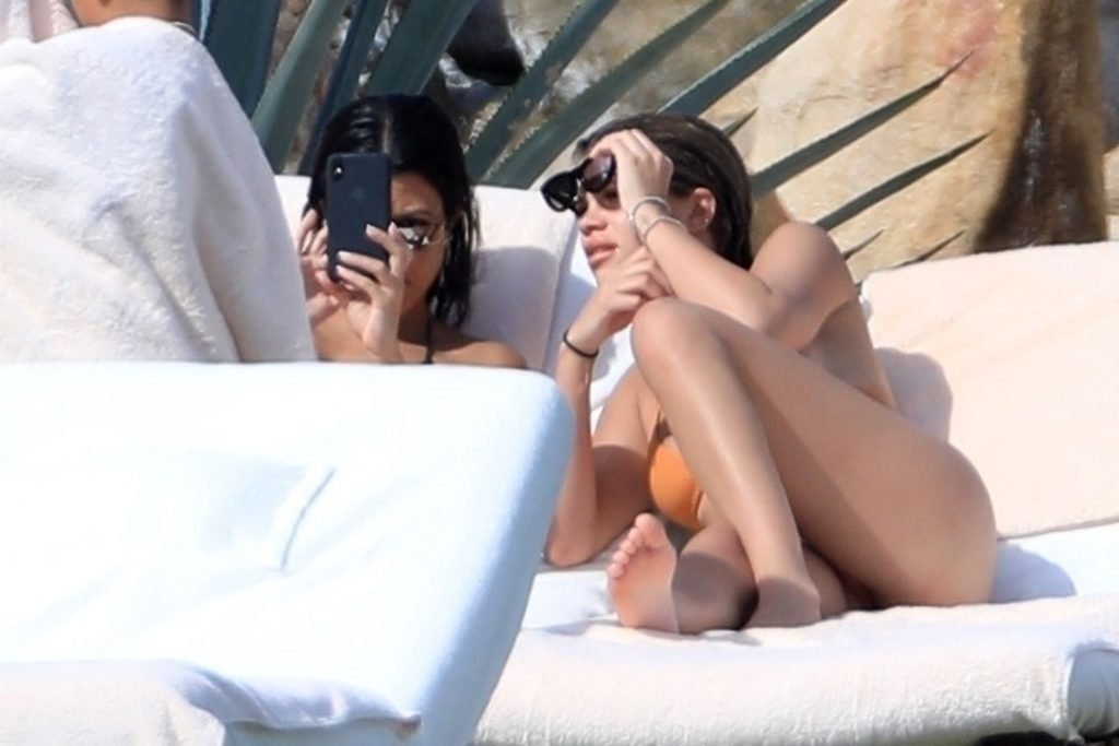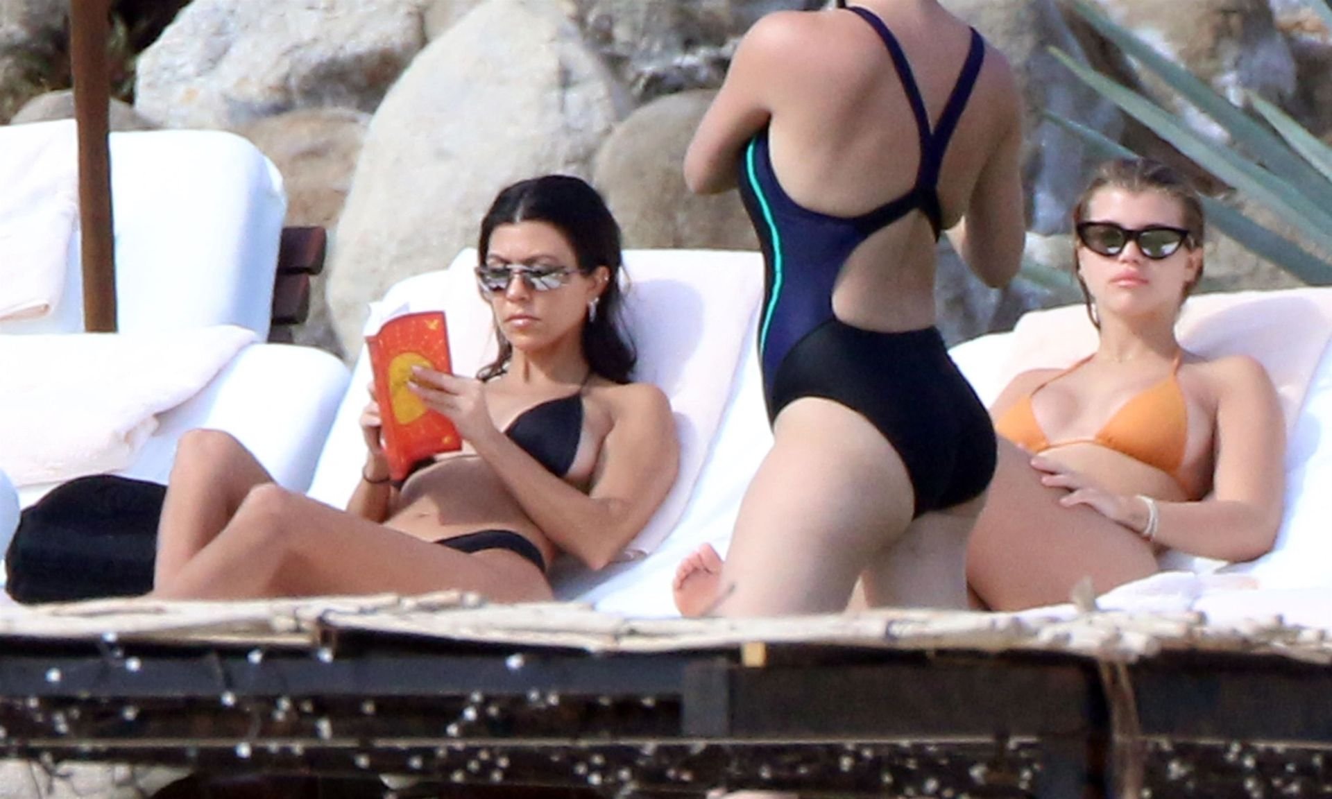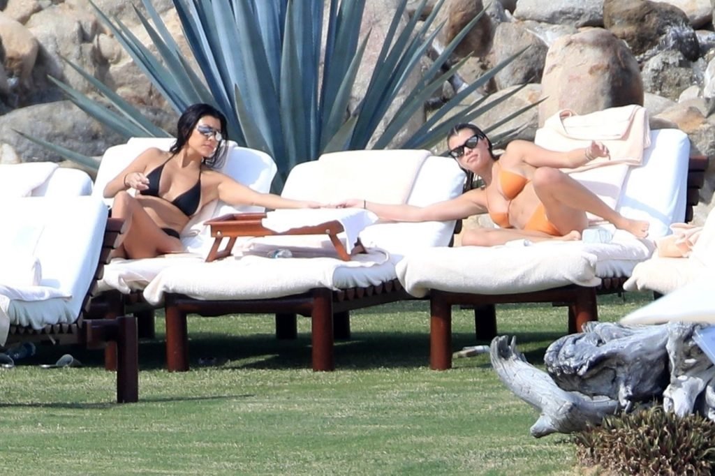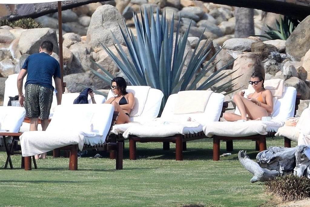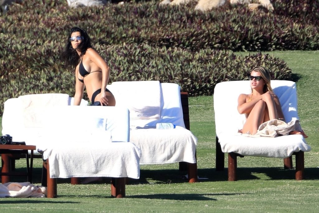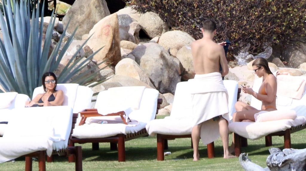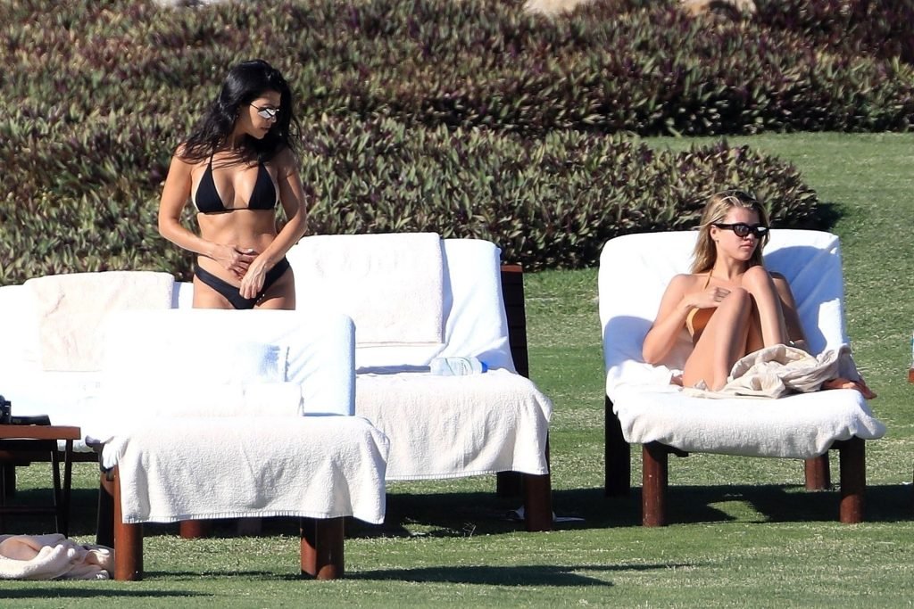 As belas Kourtney Kardashian e Sofia Richie conversam alegremente enquanto aproveitam o sol, junto com o namorado de Sofia, Scott Disick, que também é ex de Kourtney. Sofia deslumbrava em um biquíni tangerina mínimo, enquanto Kourtney mostrava sua figura fabulosa em um biquíni preto.