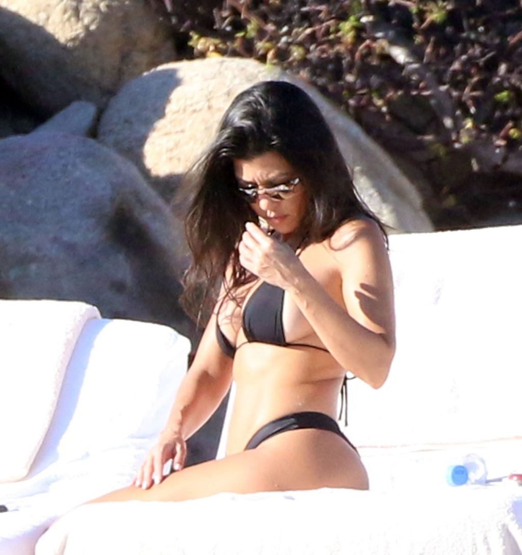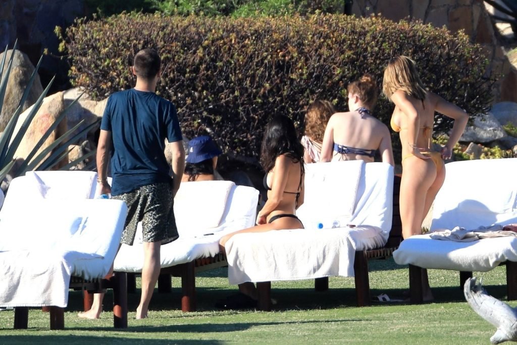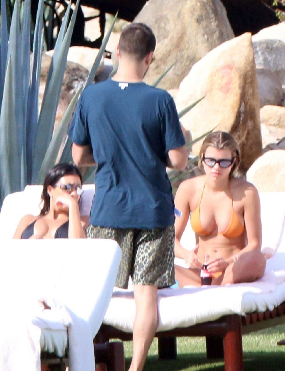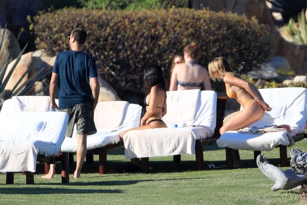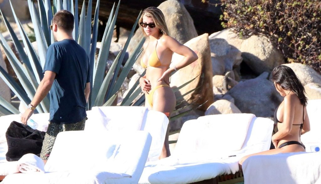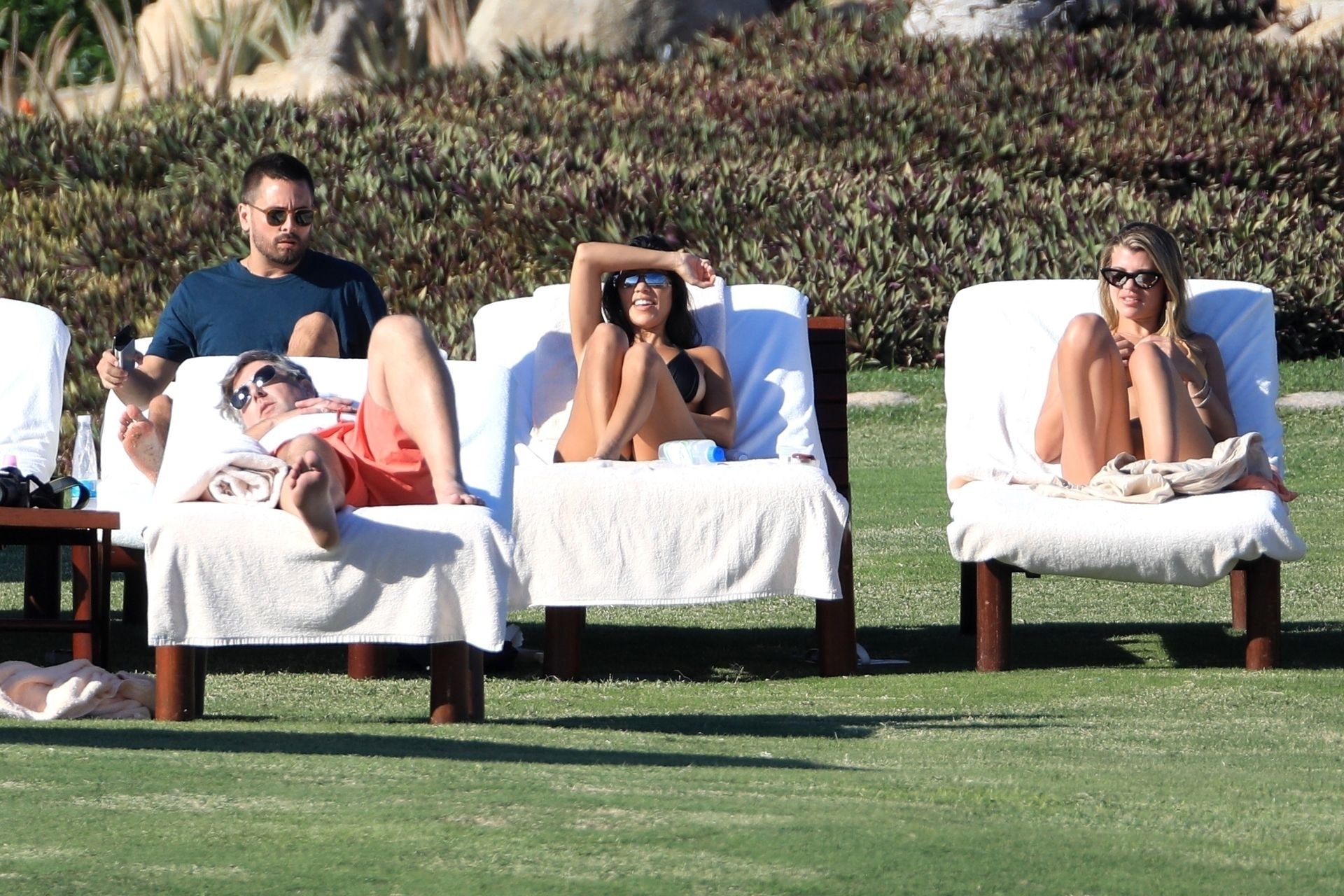 As belas Kourtney Kardashian e Sofia Richie conversam alegremente enquanto aproveitam o sol, junto com o namorado de Sofia, Scott Disick, que também é ex de Kourtney. Sofia deslumbrava em um biquíni tangerina mínimo, enquanto Kourtney mostrava sua figura fabulosa em um biquíni preto.