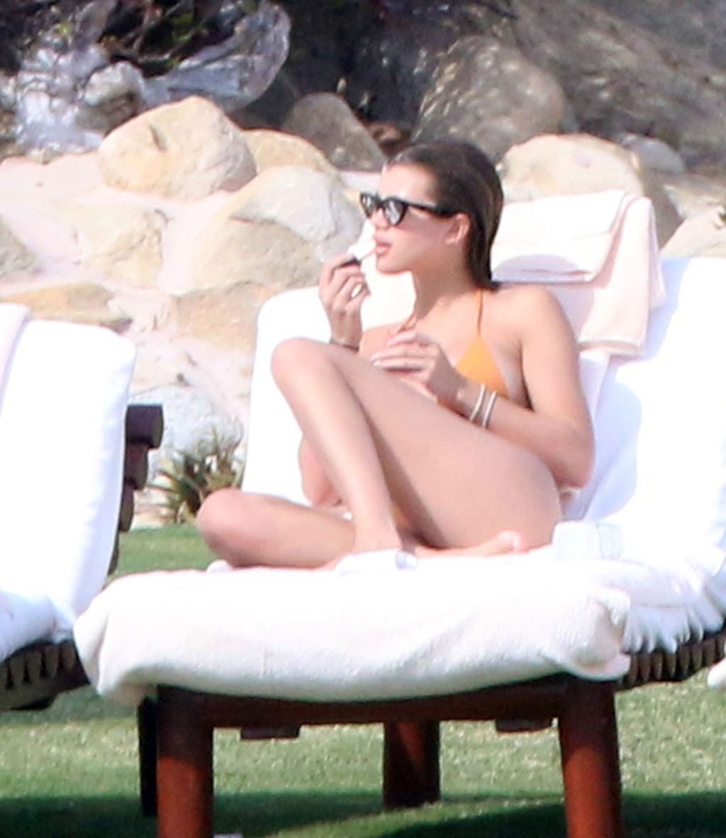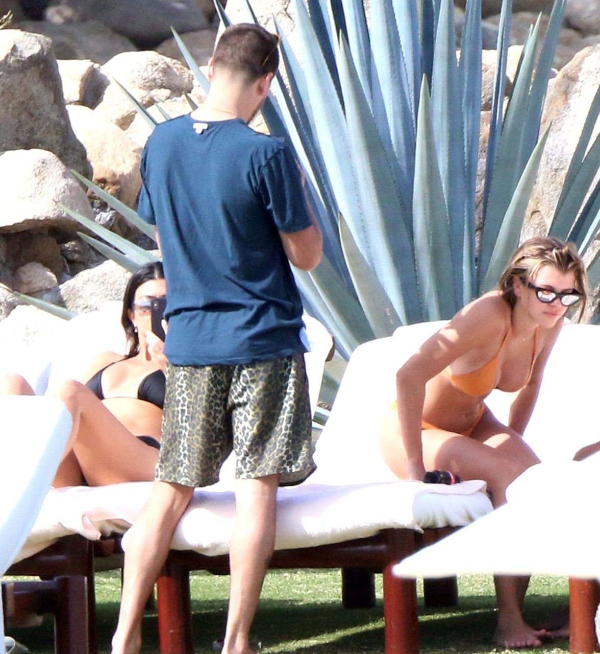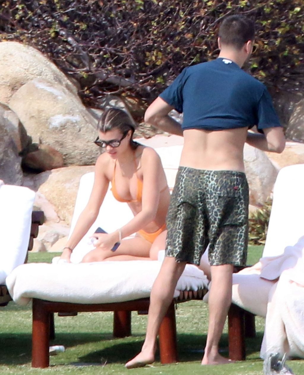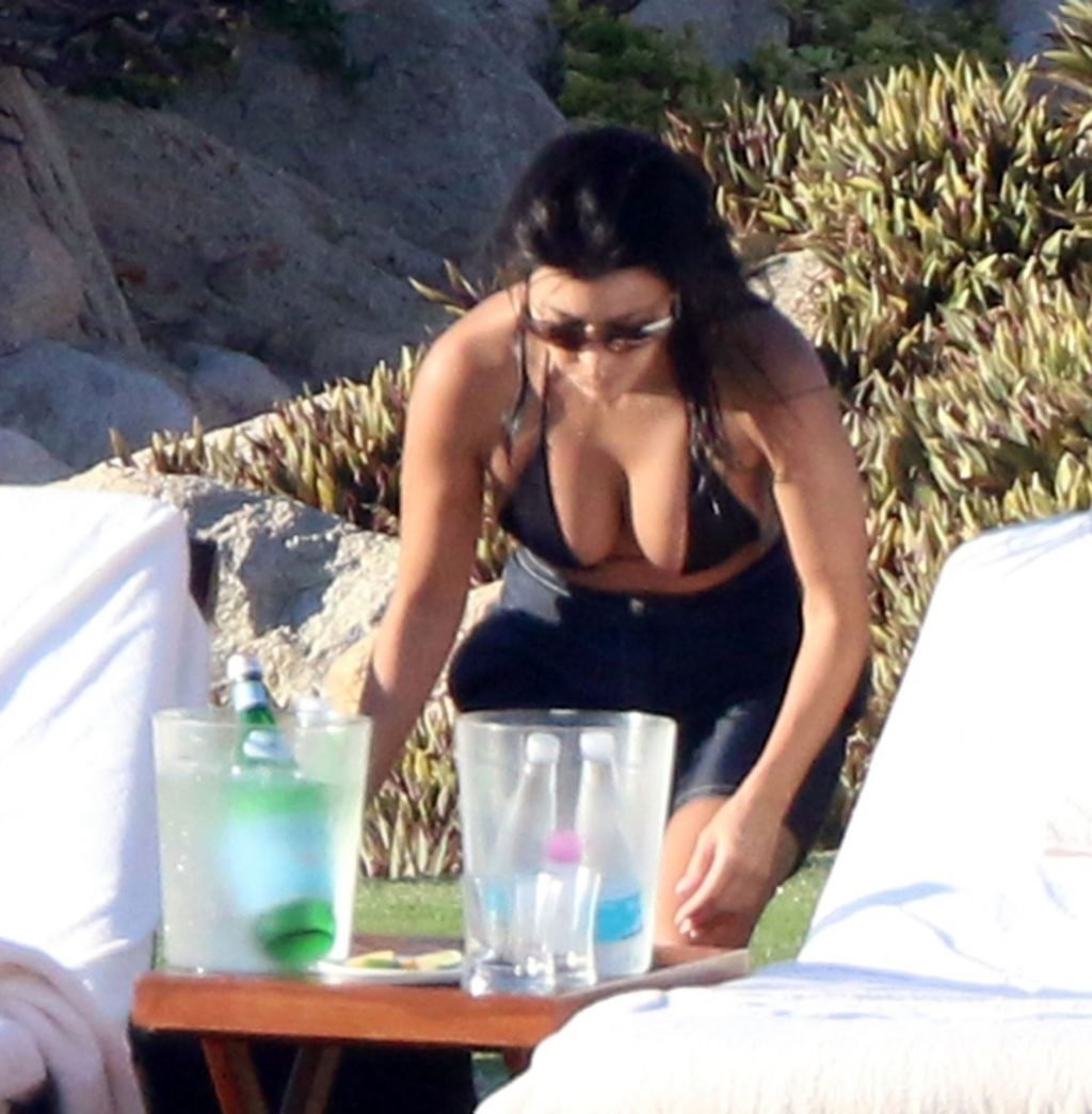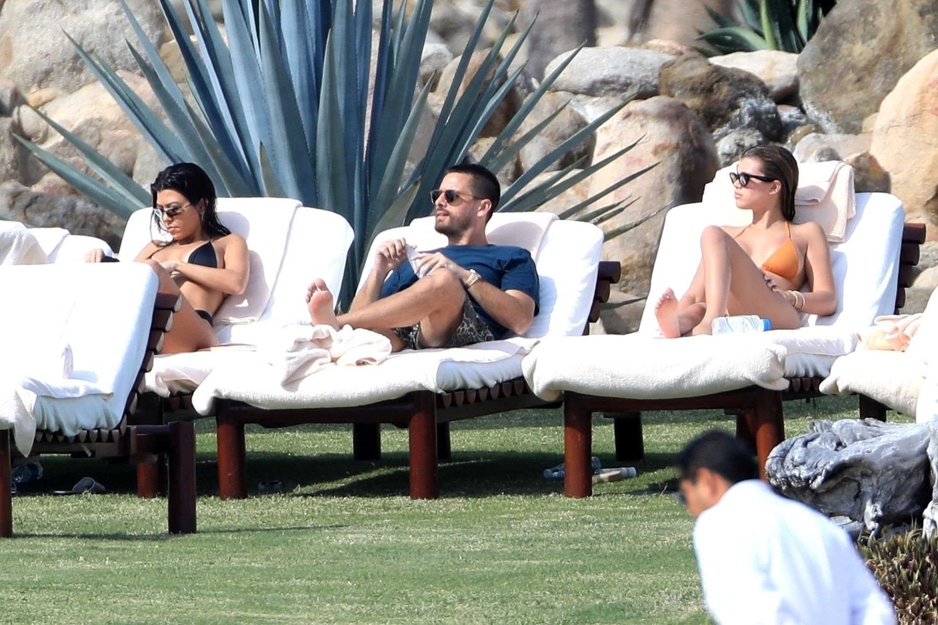 As belas Kourtney Kardashian e Sofia Richie conversam alegremente enquanto aproveitam o sol, junto com o namorado de Sofia, Scott Disick, que também é ex de Kourtney. Sofia deslumbrava em um biquíni tangerina mínimo, enquanto Kourtney mostrava sua figura fabulosa em um biquíni preto.