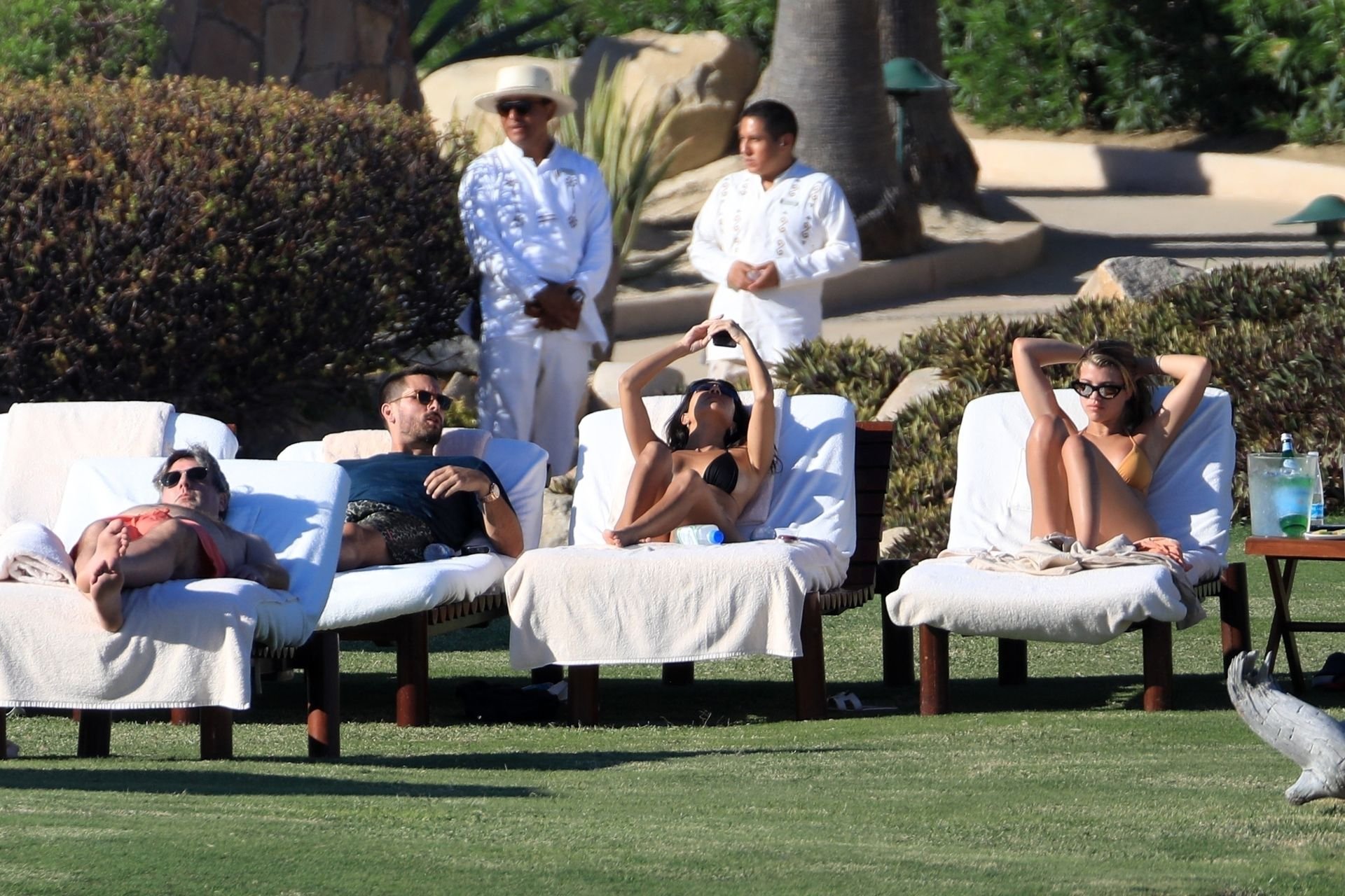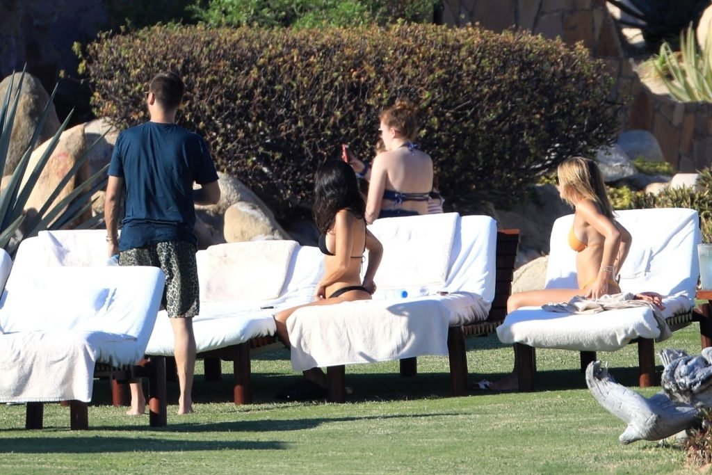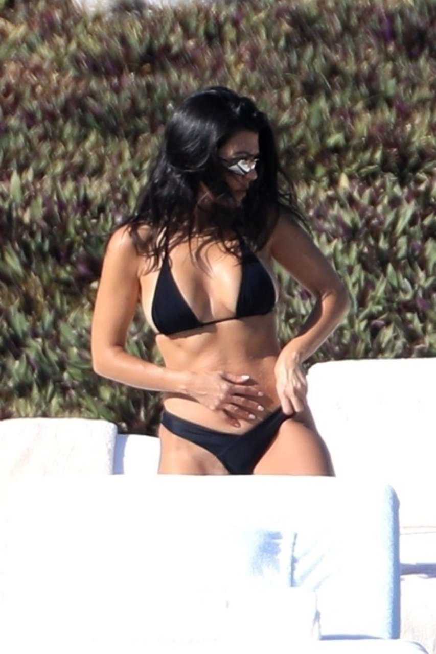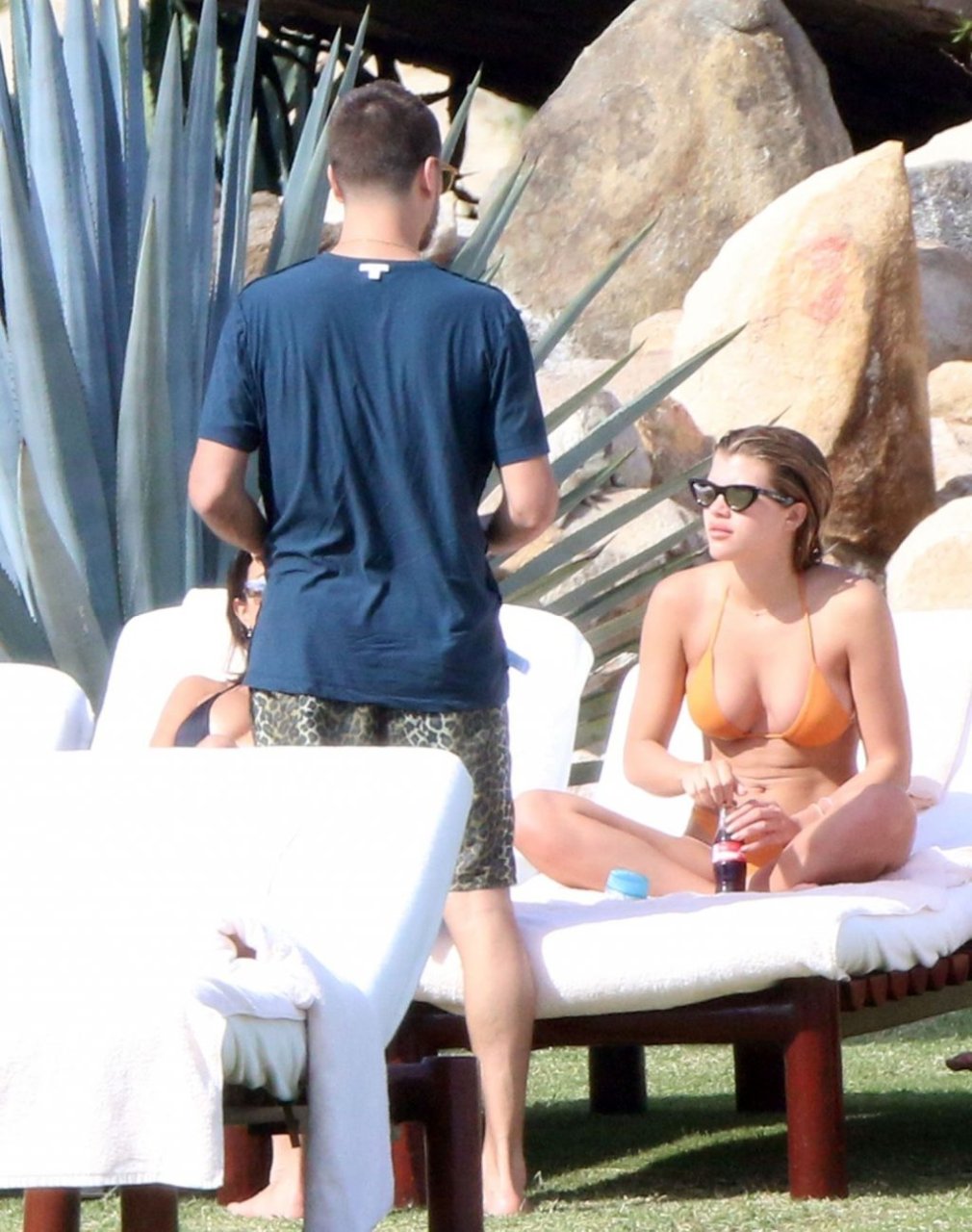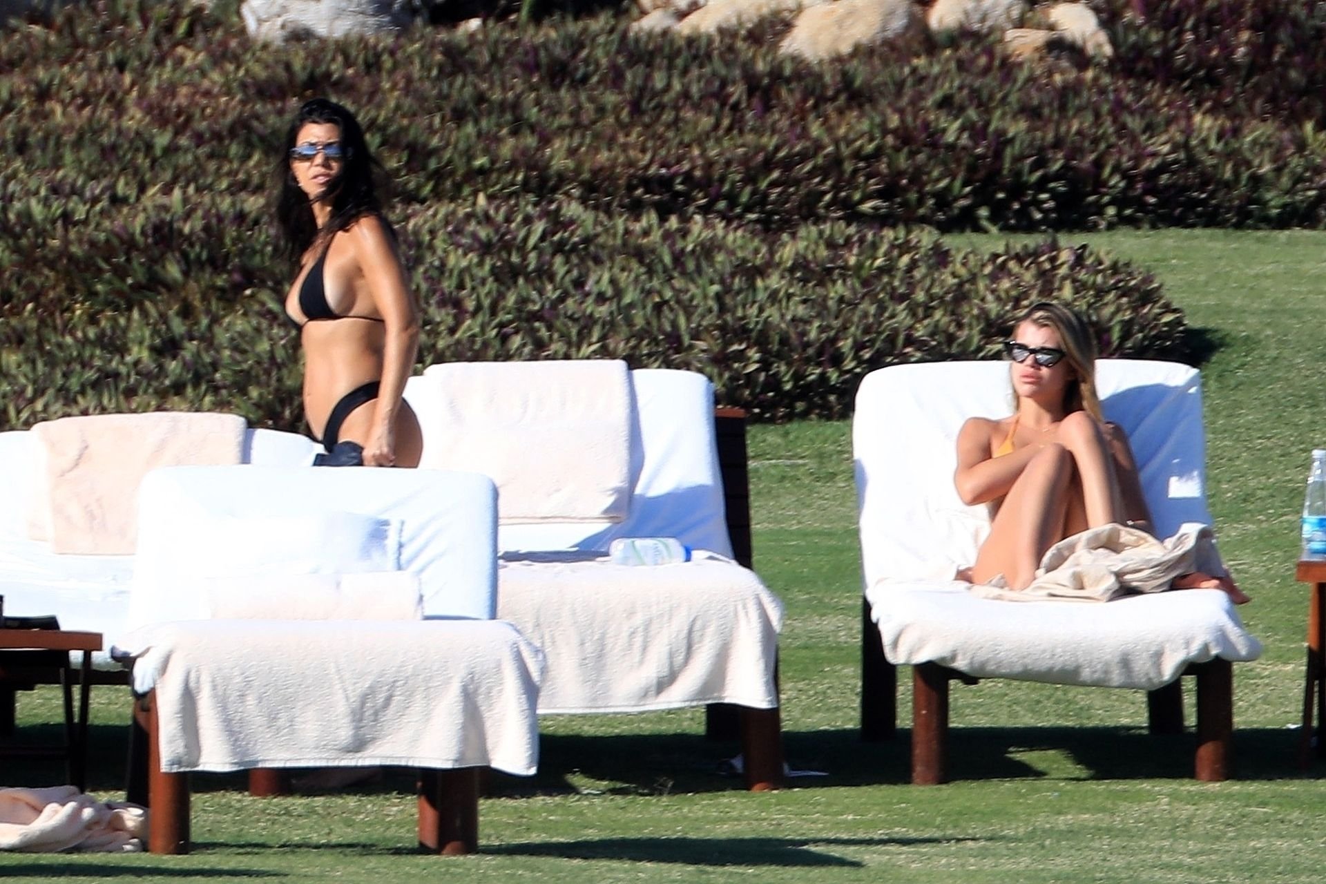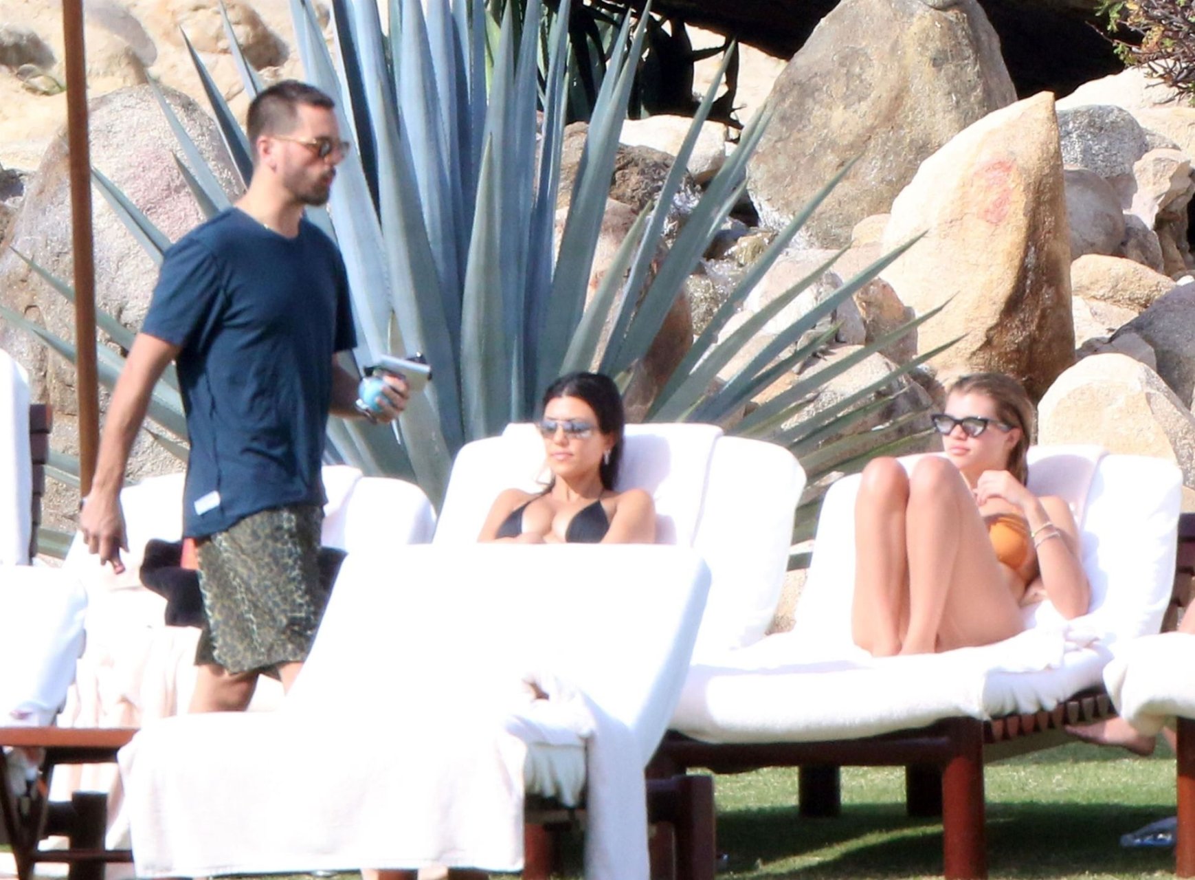 As belas Kourtney Kardashian e Sofia Richie conversam alegremente enquanto aproveitam o sol, junto com o namorado de Sofia, Scott Disick, que também é ex de Kourtney. Sofia deslumbrava em um biquíni tangerina mínimo, enquanto Kourtney mostrava sua figura fabulosa em um biquíni preto.