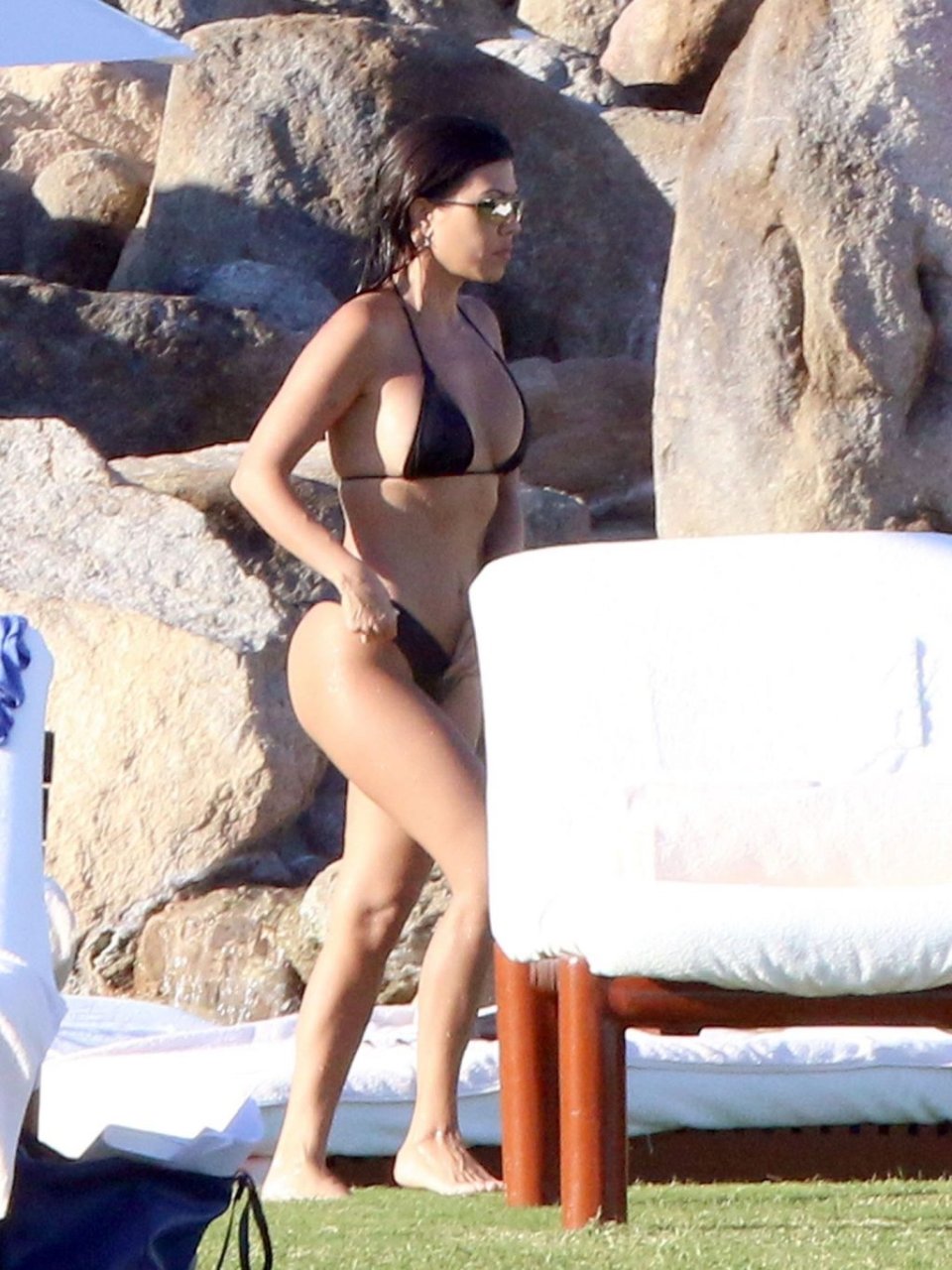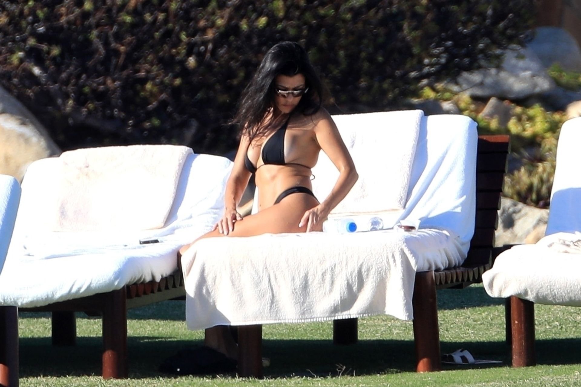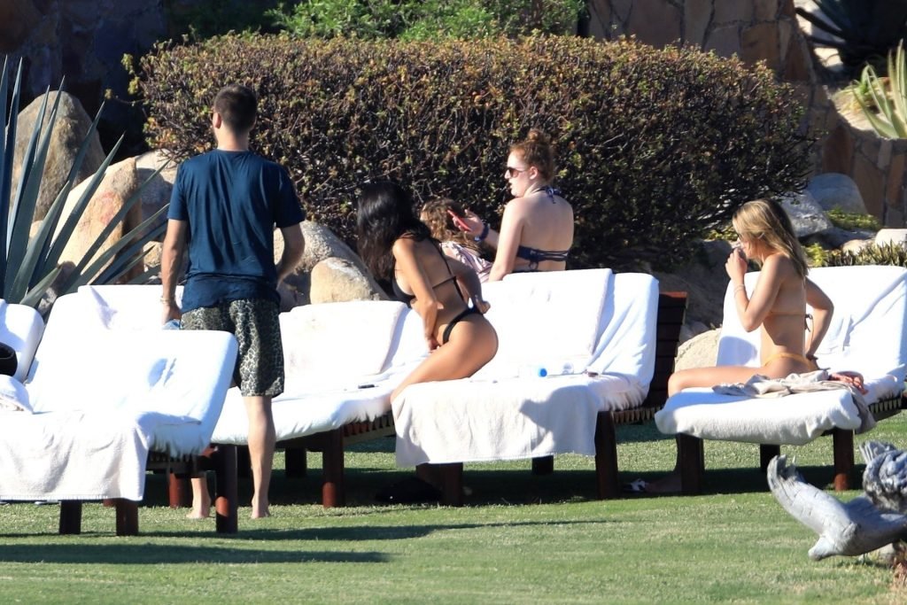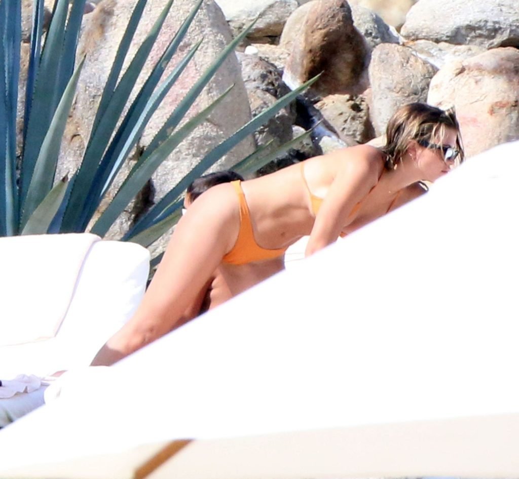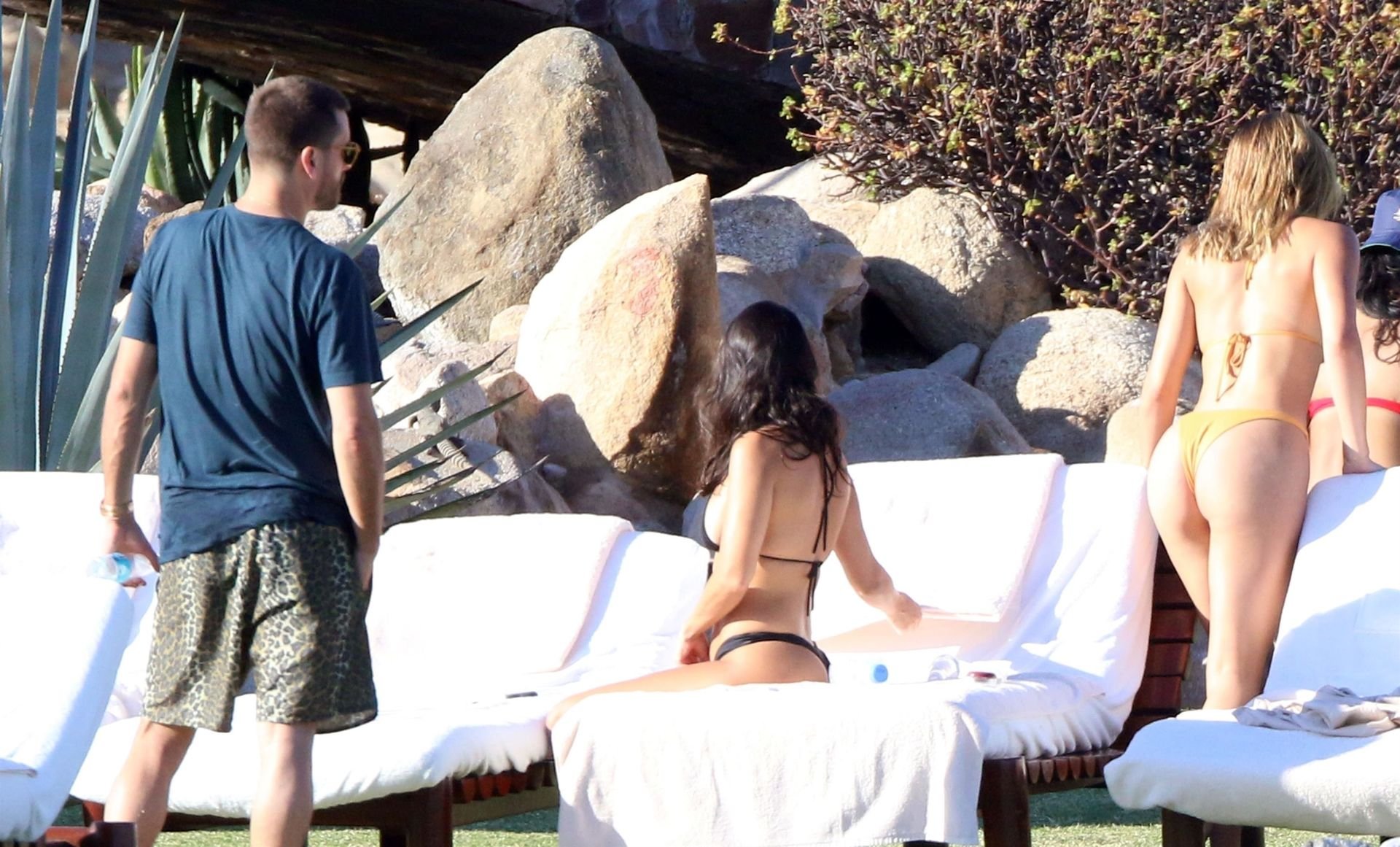 As belas Kourtney Kardashian e Sofia Richie conversam alegremente enquanto aproveitam o sol, junto com o namorado de Sofia, Scott Disick, que também é ex de Kourtney. Sofia deslumbrava em um biquíni tangerina mínimo, enquanto Kourtney mostrava sua figura fabulosa em um biquíni preto.