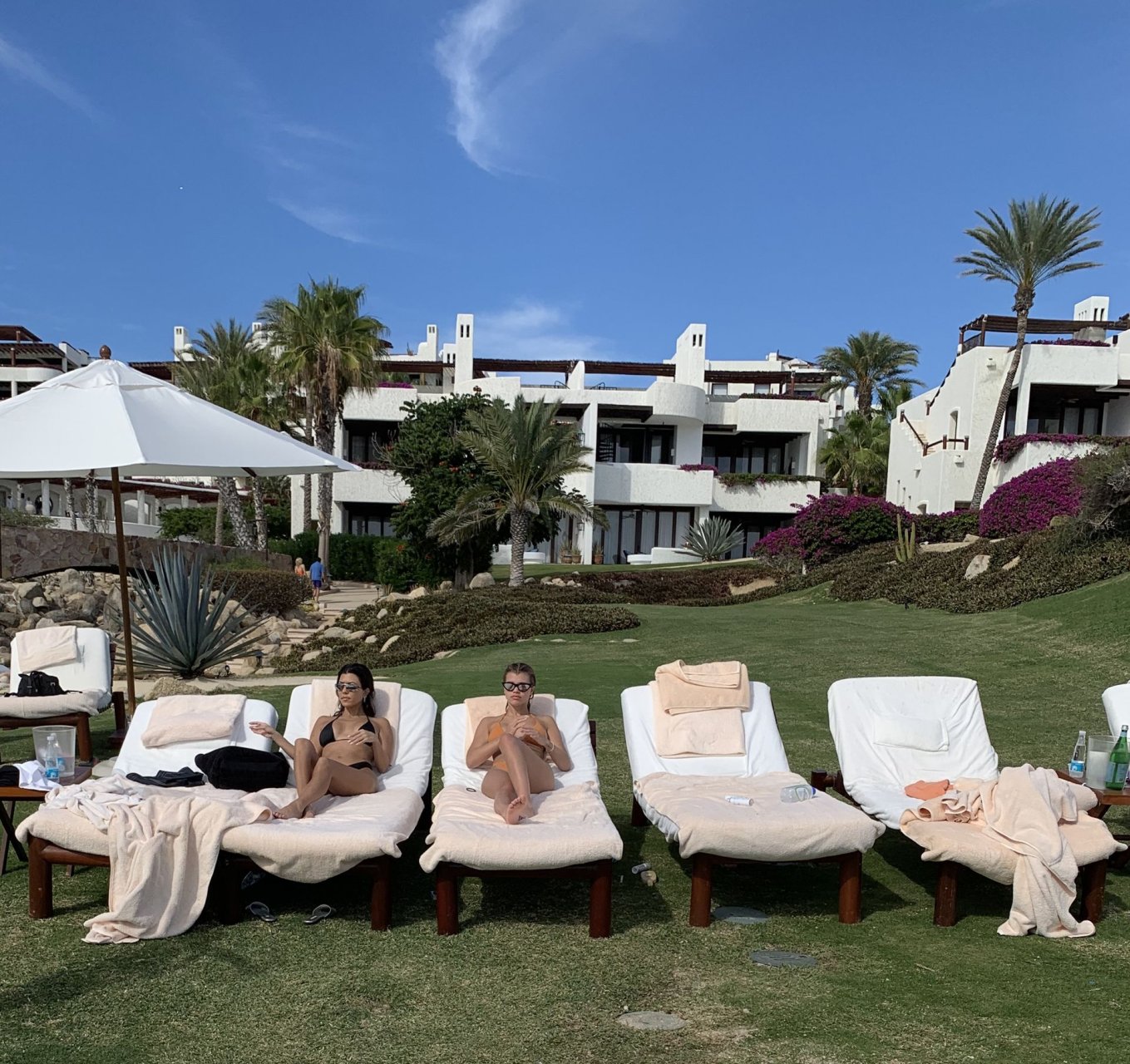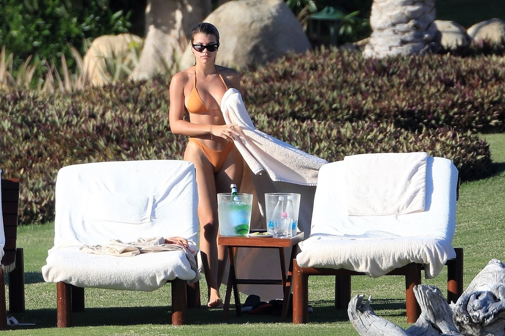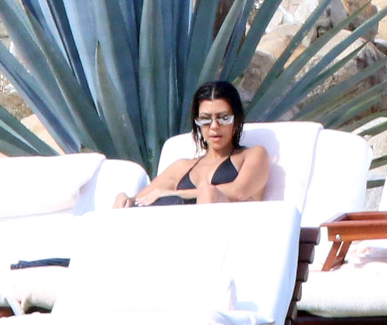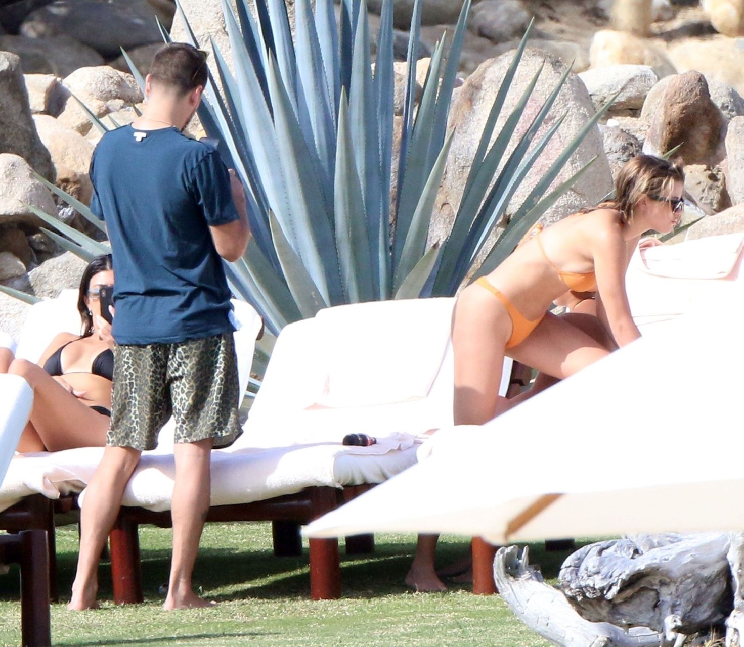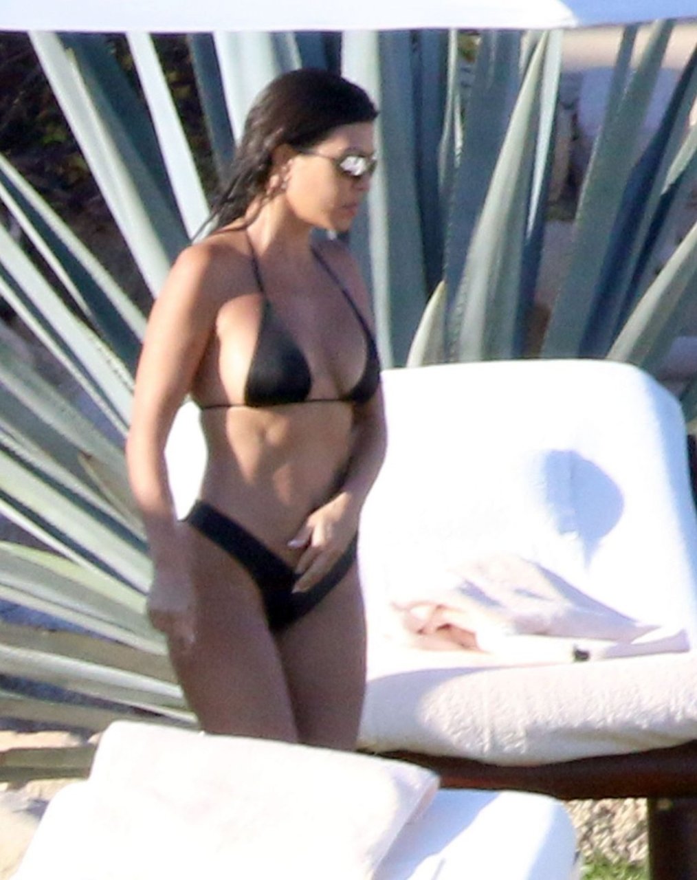 As belas Kourtney Kardashian e Sofia Richie conversam alegremente enquanto aproveitam o sol, junto com o namorado de Sofia, Scott Disick, que também é ex de Kourtney. Sofia deslumbrava em um biquíni tangerina mínimo, enquanto Kourtney mostrava sua figura fabulosa em um biquíni preto.