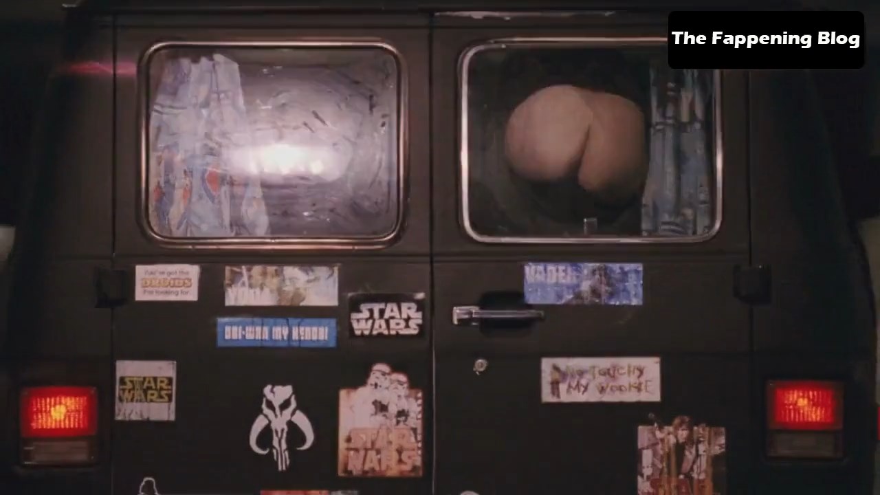 BODY DOUBLE: Pressed ham butt on the van window when Kristen moons, but it’s not the real Veronica Mars arse.