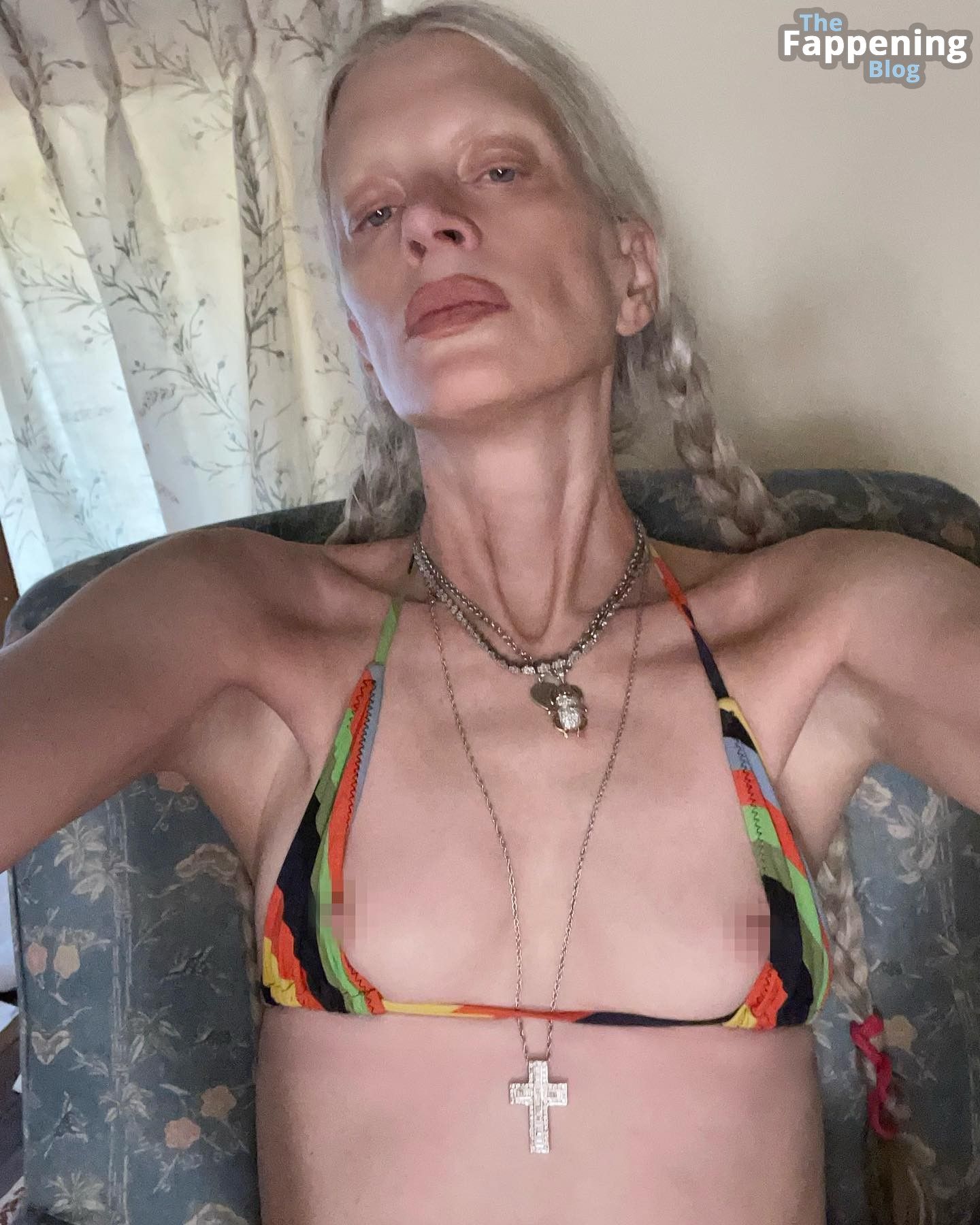 Kristen McMenamy nasceu em 13 de dezembro de 1964. Ela é uma modelo americana conhecida por seu visual não convencional e andrógino. Começou como uma ruiva de cabelos longos, mas mudou no início dos anos 90 – raspou as sobrancelhas, cortou o cabelo curto e o tingiu de preto. Essa atitude ousada alinhou-se com a tendência grunge e impulsionou muito sua carreira. Ela desfilou para grandes estilistas e foi musa de fotógrafos como Steven Meisel e Juergen Teller.