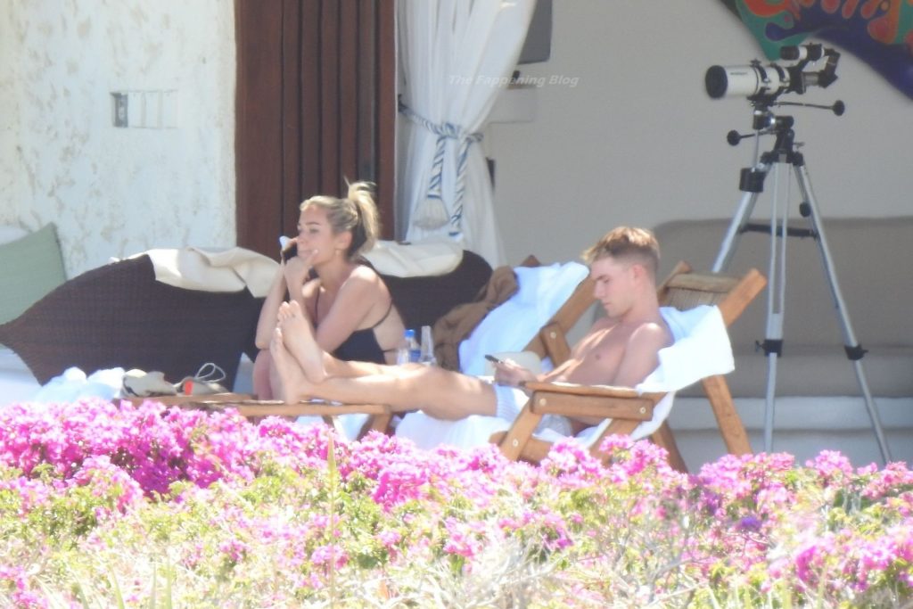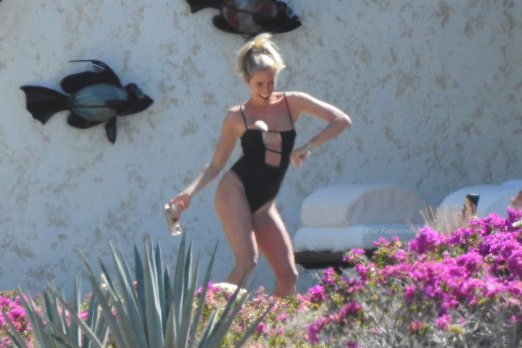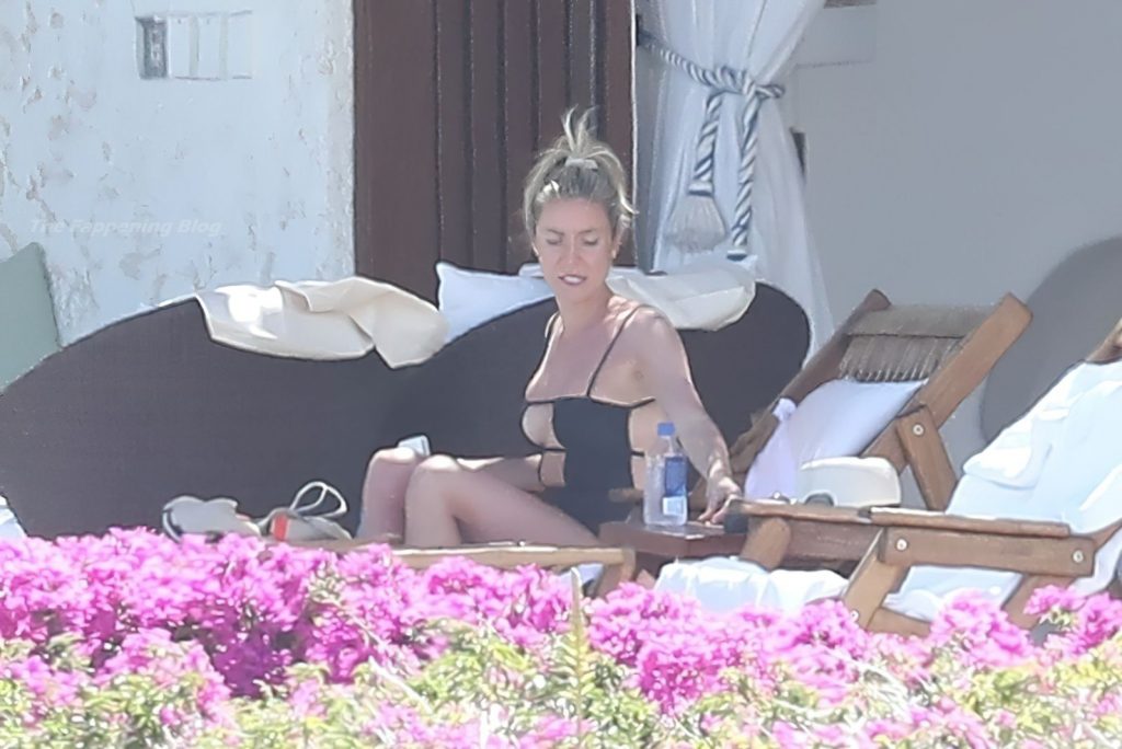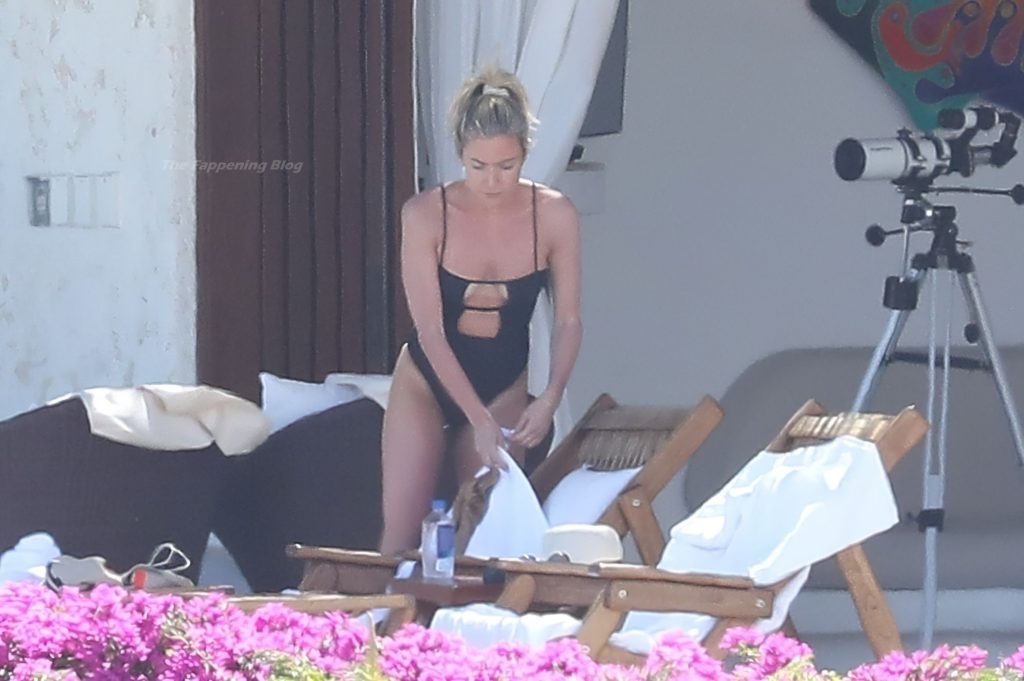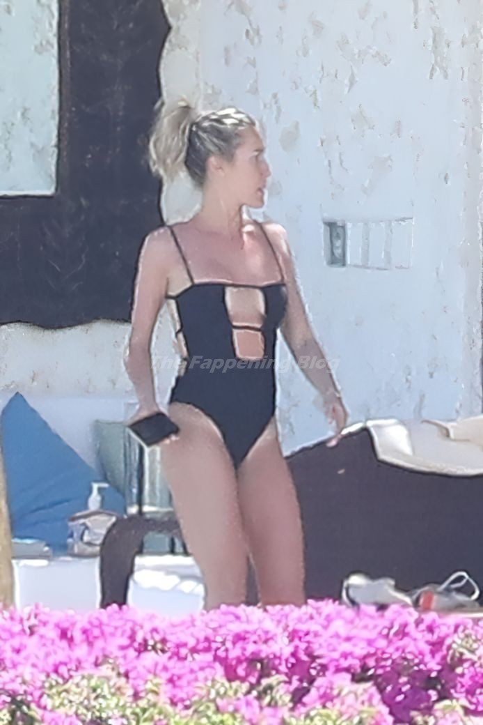 A atriz americana Kristin Cavallari relaxa sob o sol mexicano em Cabo San Lucas usando um maiô preto, 17/03/2021.