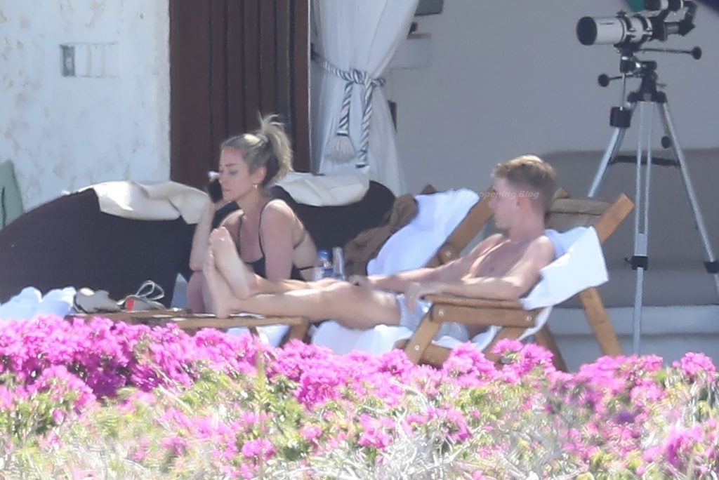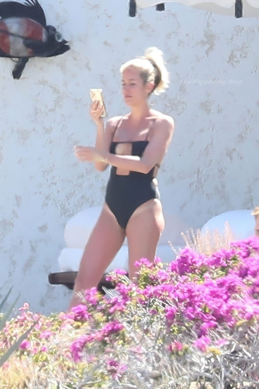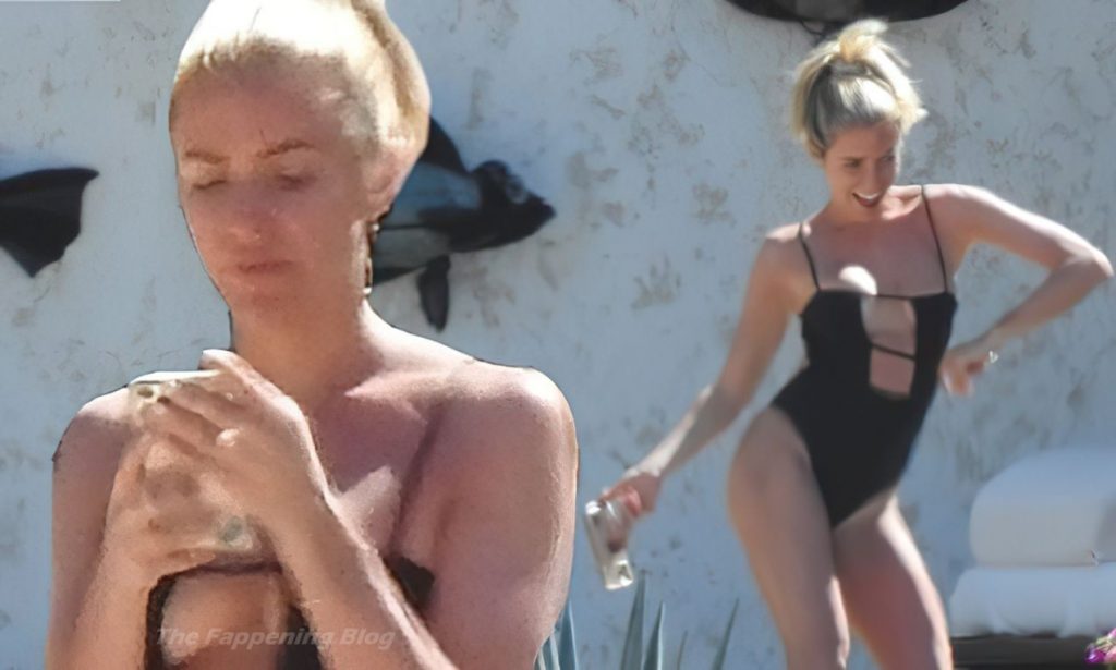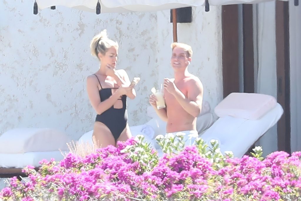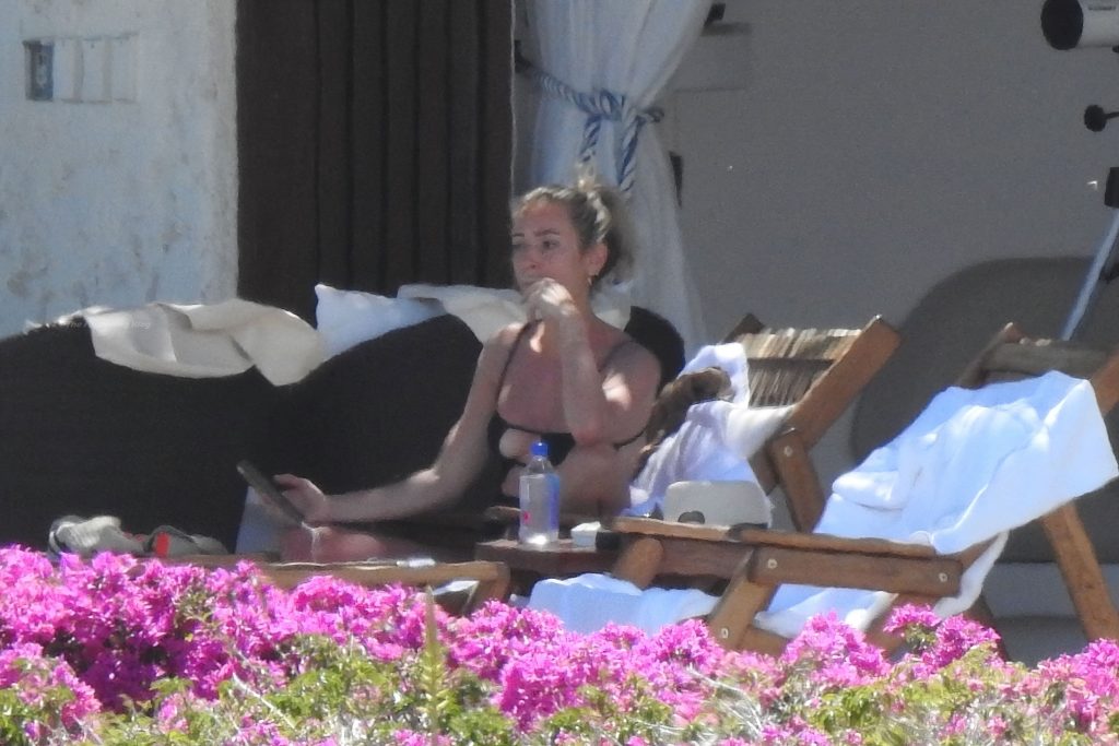 A atriz americana Kristin Cavallari relaxa sob o sol mexicano em Cabo San Lucas usando um maiô preto, 17/03/2021.